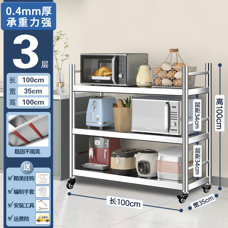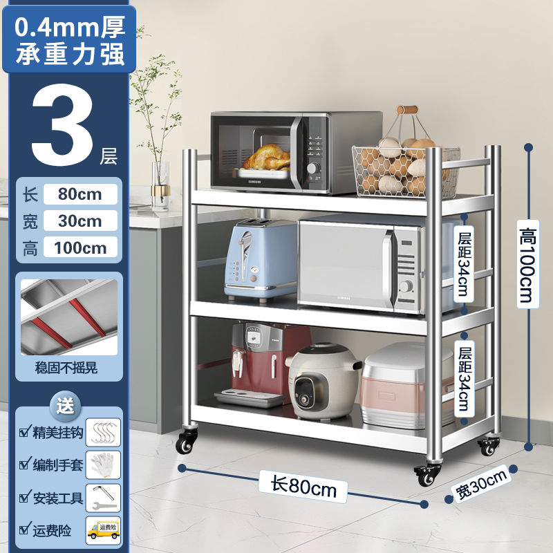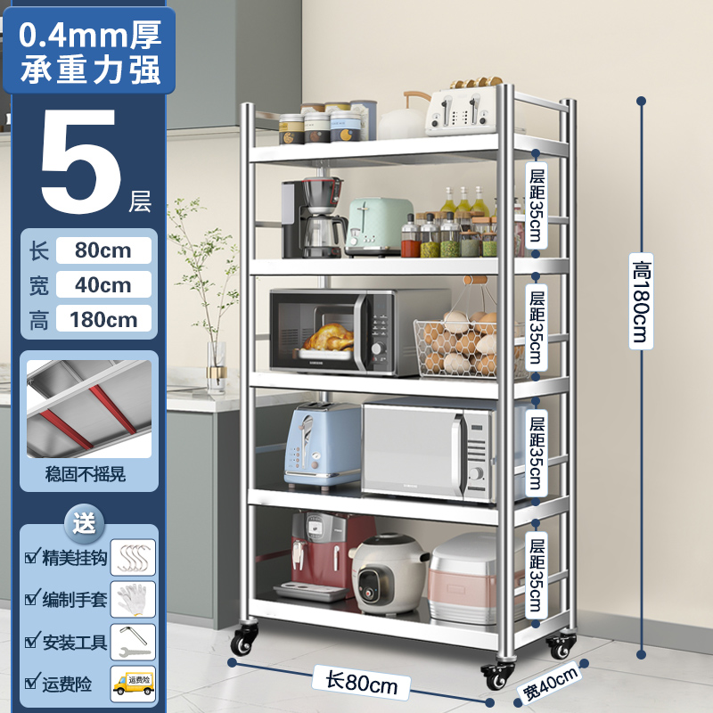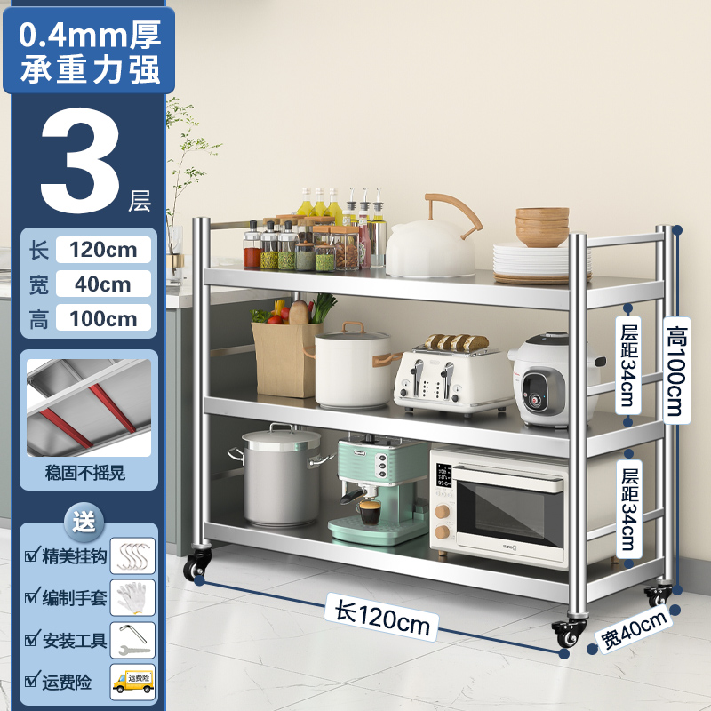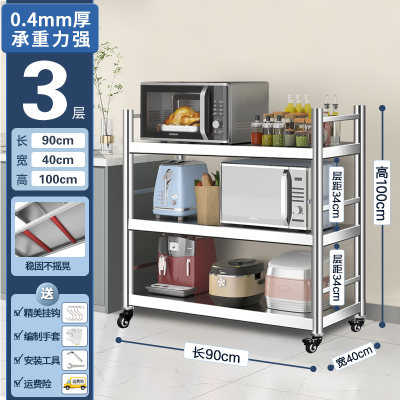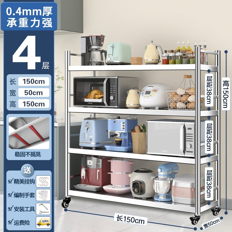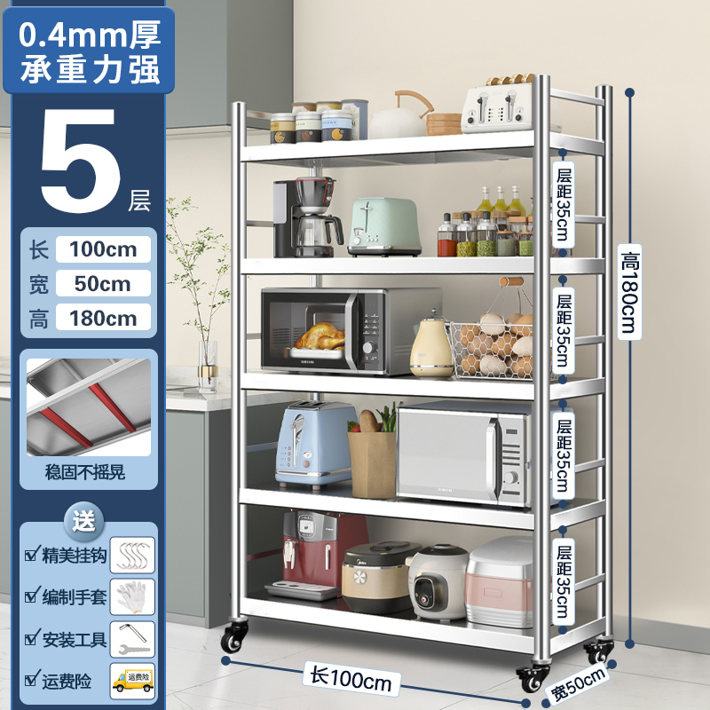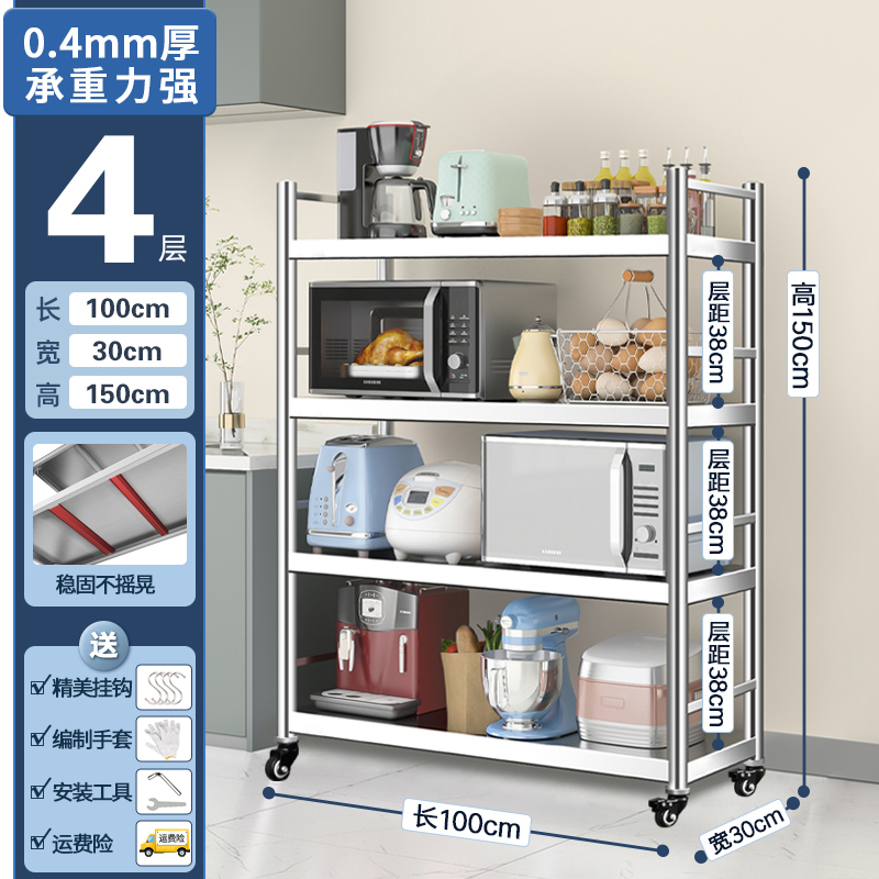 휠 선반이있는 스테인레스 스틸 주방 스토리지 랙 이동식 다층 바닥 다기능 스토리지 랙 스토리지 선반스토어 가기