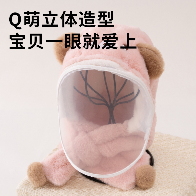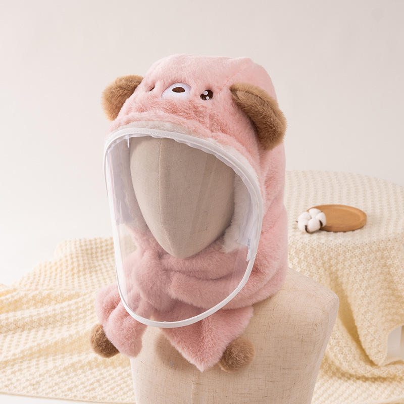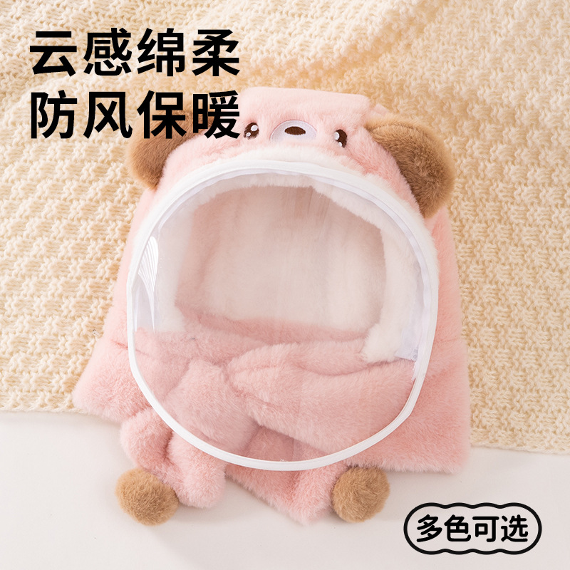 어린이 모자 겨울 야외 승마 마스크 귀 보호자와 풀오버 캡 아기 모자 스카프 통합 모자 귀여운
