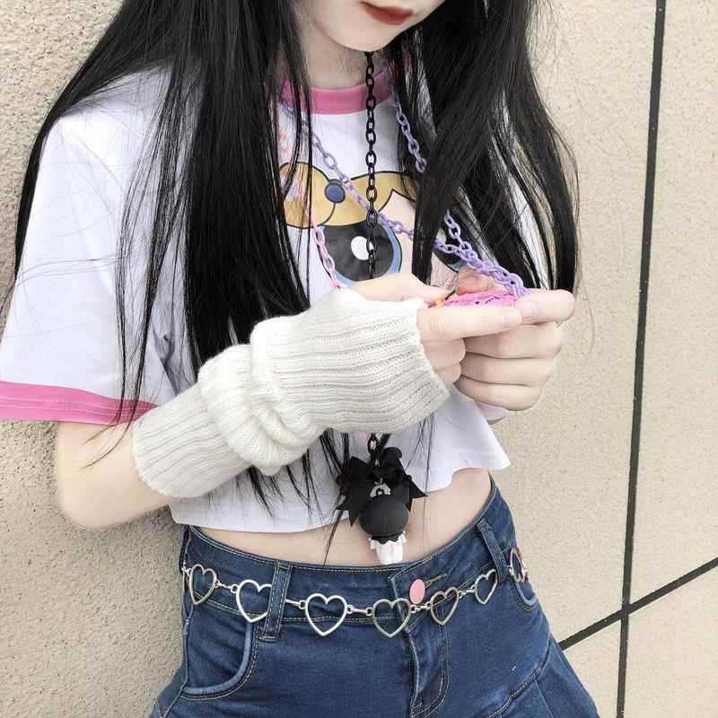 Leaky Finger 장갑 여성 일본 Harajuku Ins 닌자 전시 손가락 다크 튀는 힙합 지구 팔 Jk 니트 슬리브