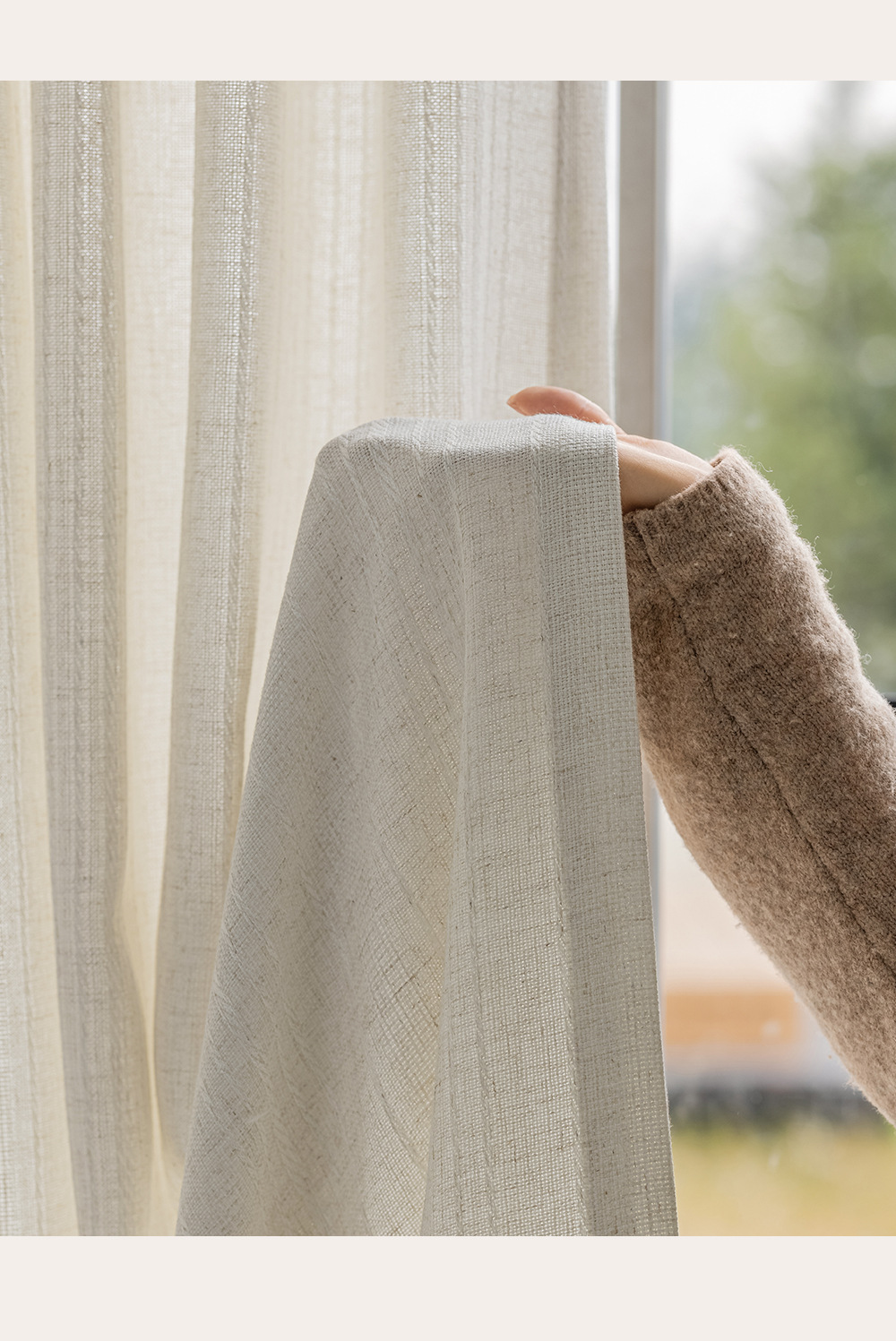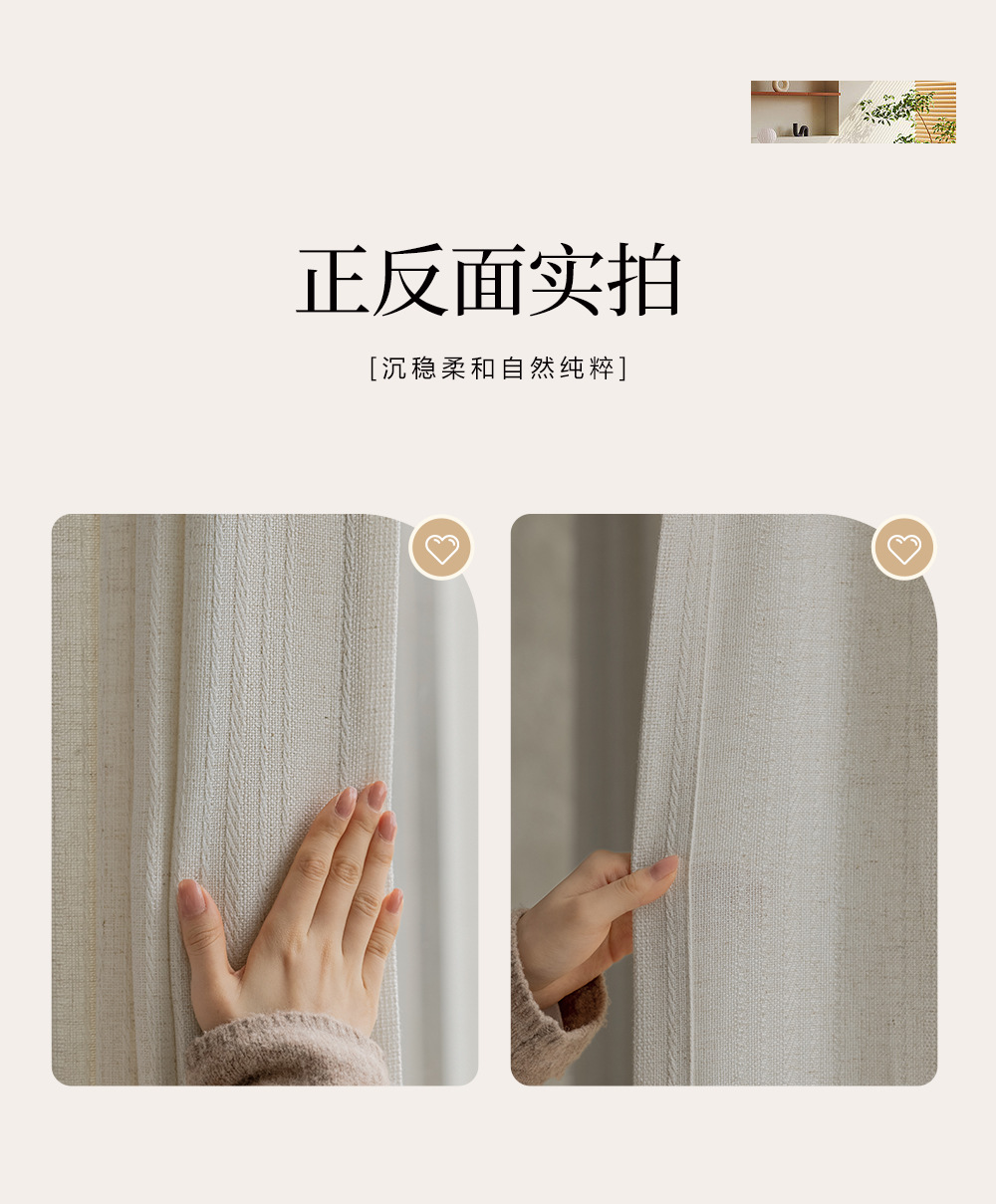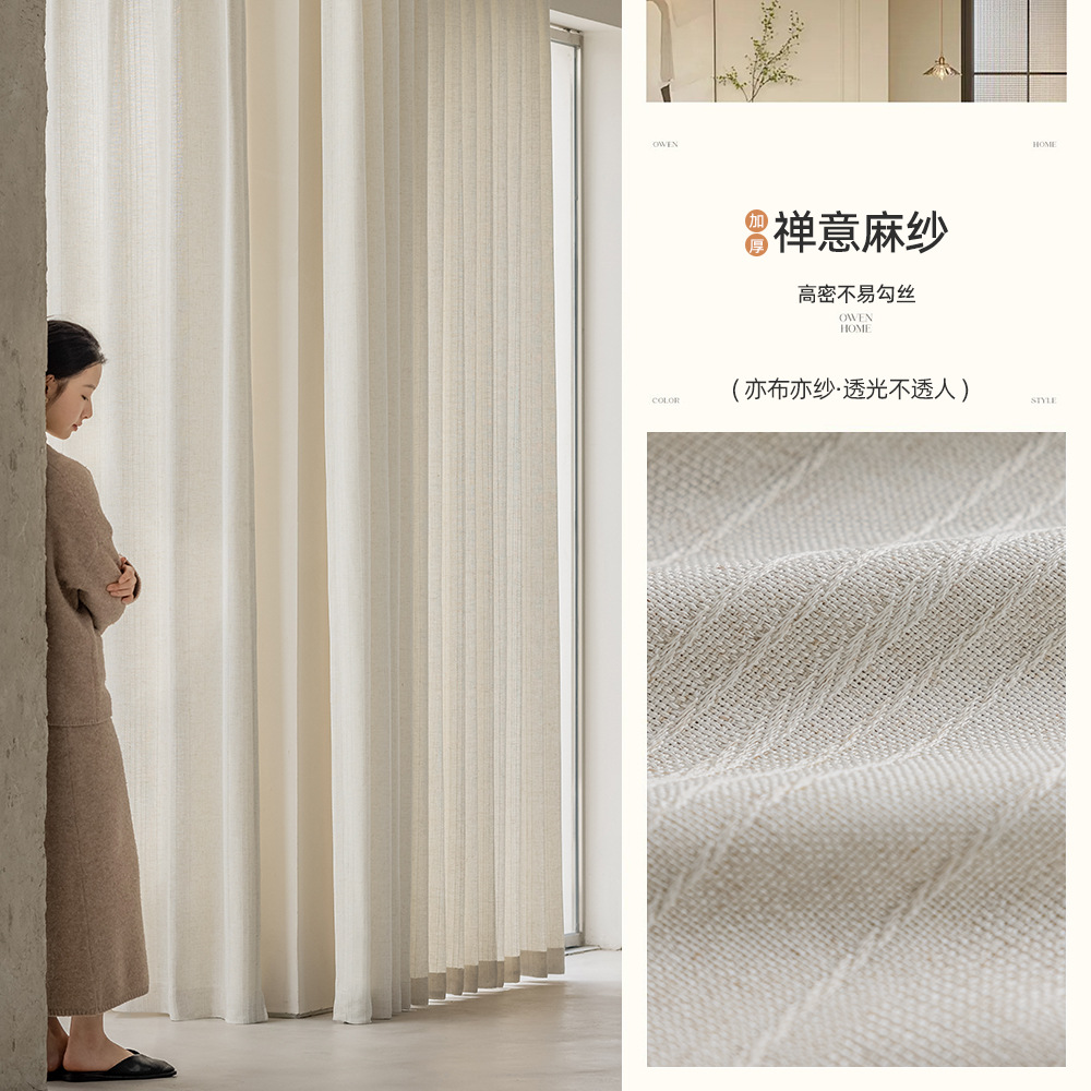간단한 자연 통나무 바람 수직 직조 린넨 커튼 3 차원 질감 거실 발코니 침실 연구 창 화면