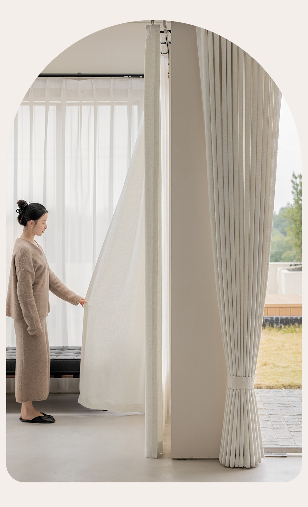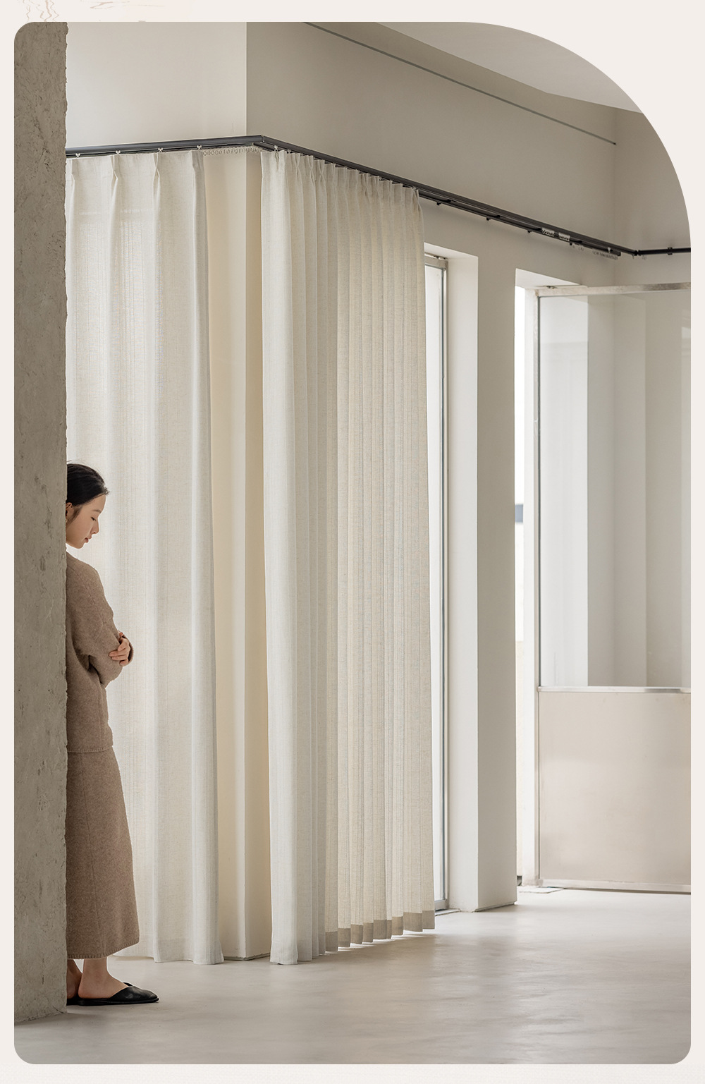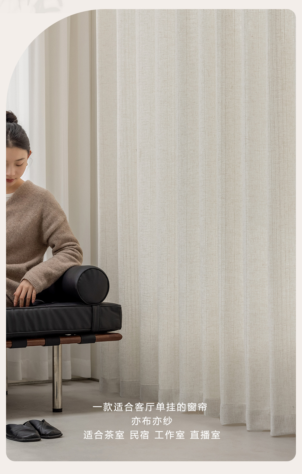 간단한 자연 통나무 바람 수직 직조 린넨 커튼 3 차원 질감 거실 발코니 침실 연구 창 화면