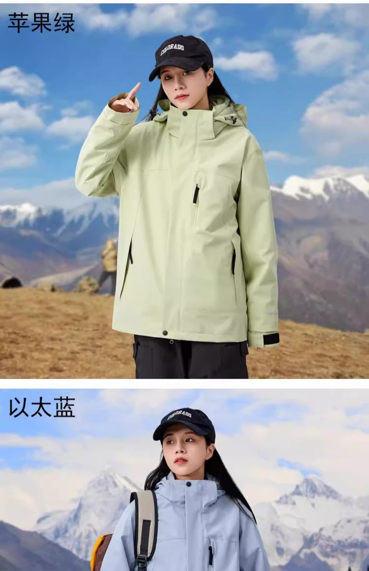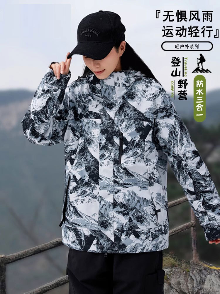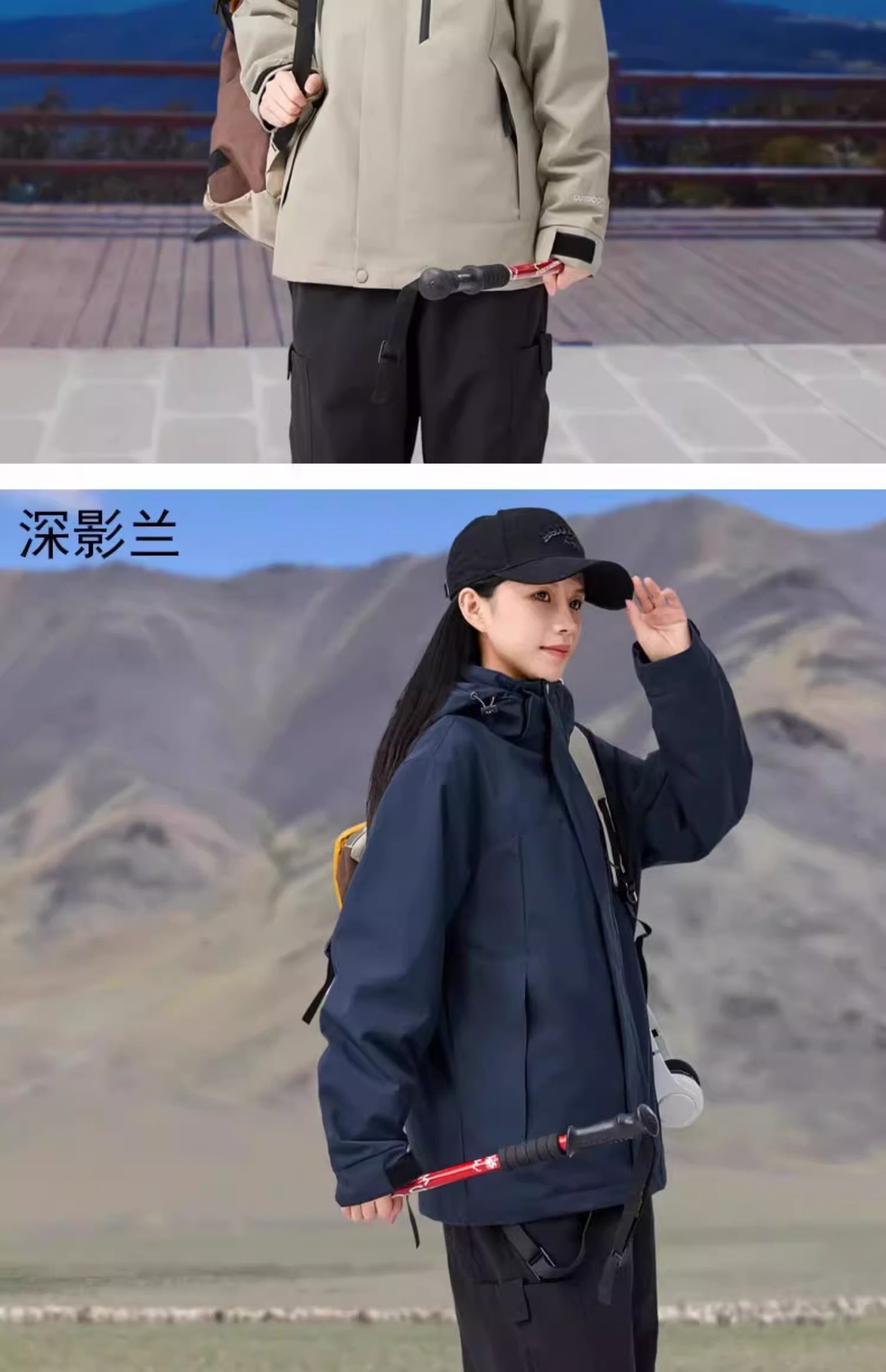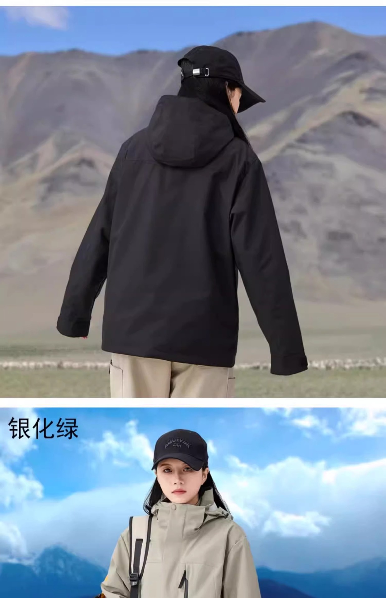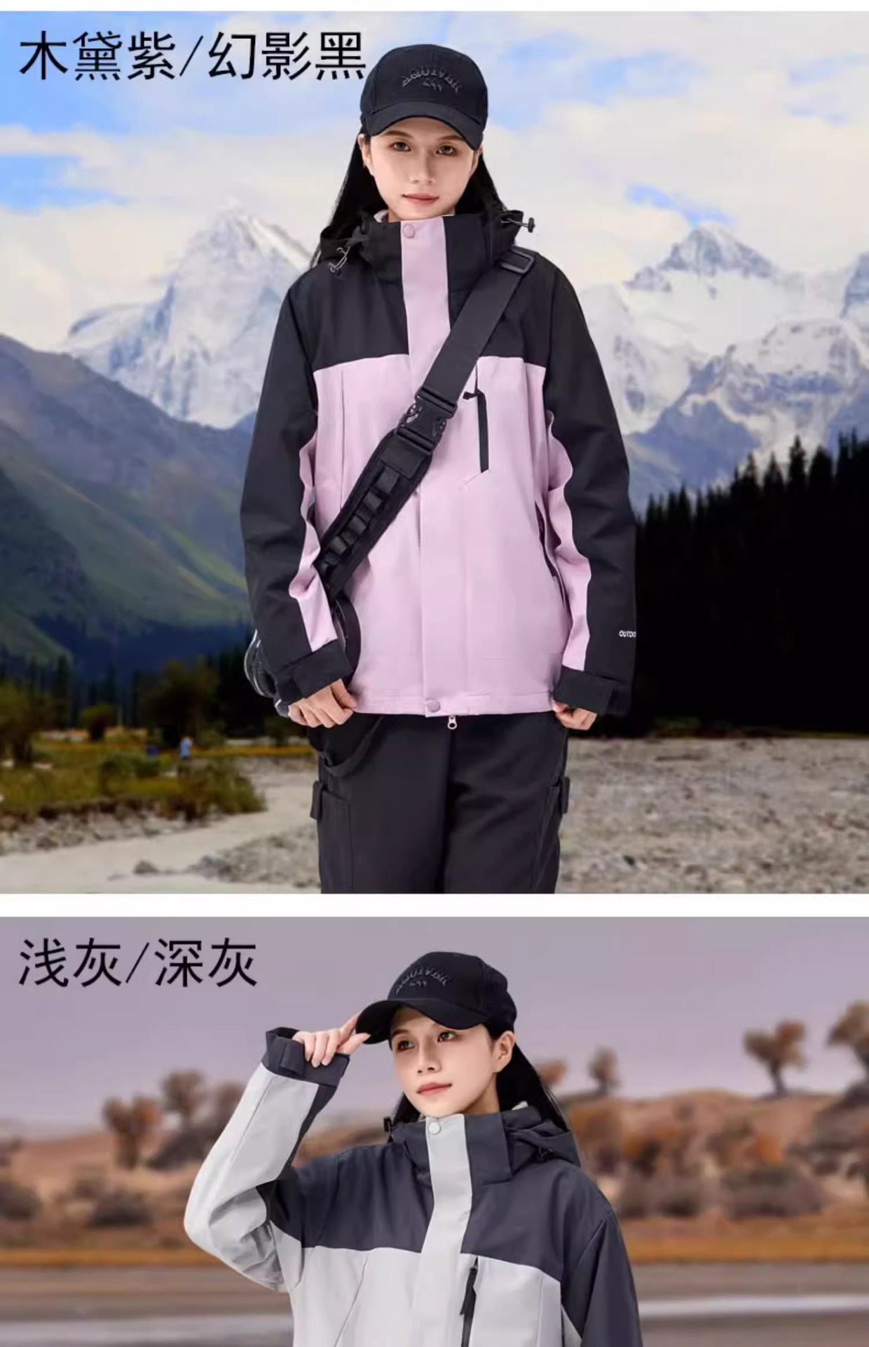 야외 폭행 의류 여성의 2024 가을 및 겨울 새로운 3 대 1 탈착식 투피스 방풍 방수 등산 세트 남성용스토어 가기