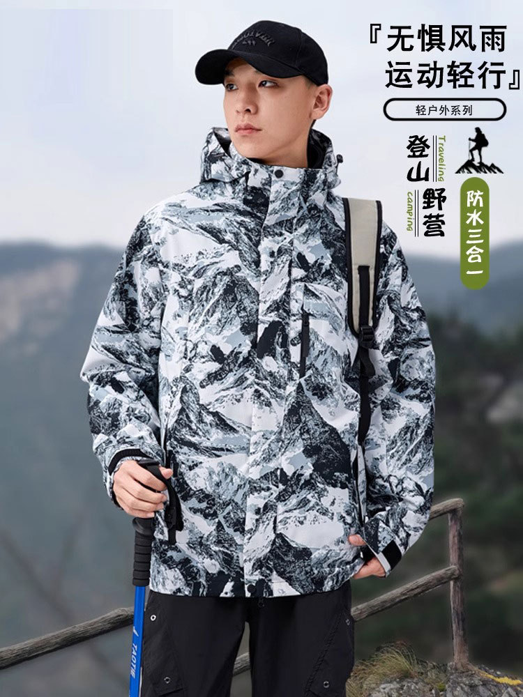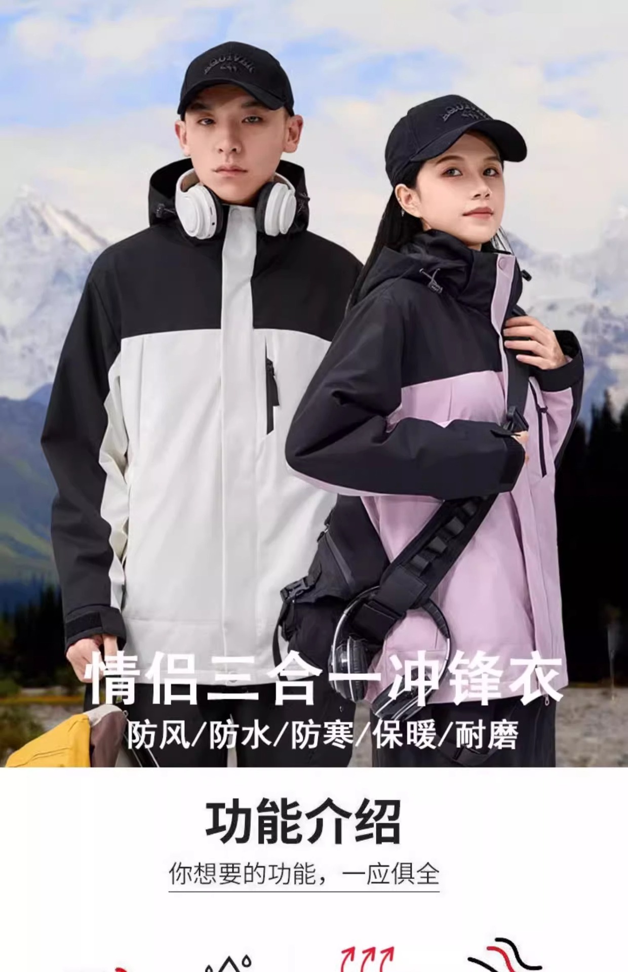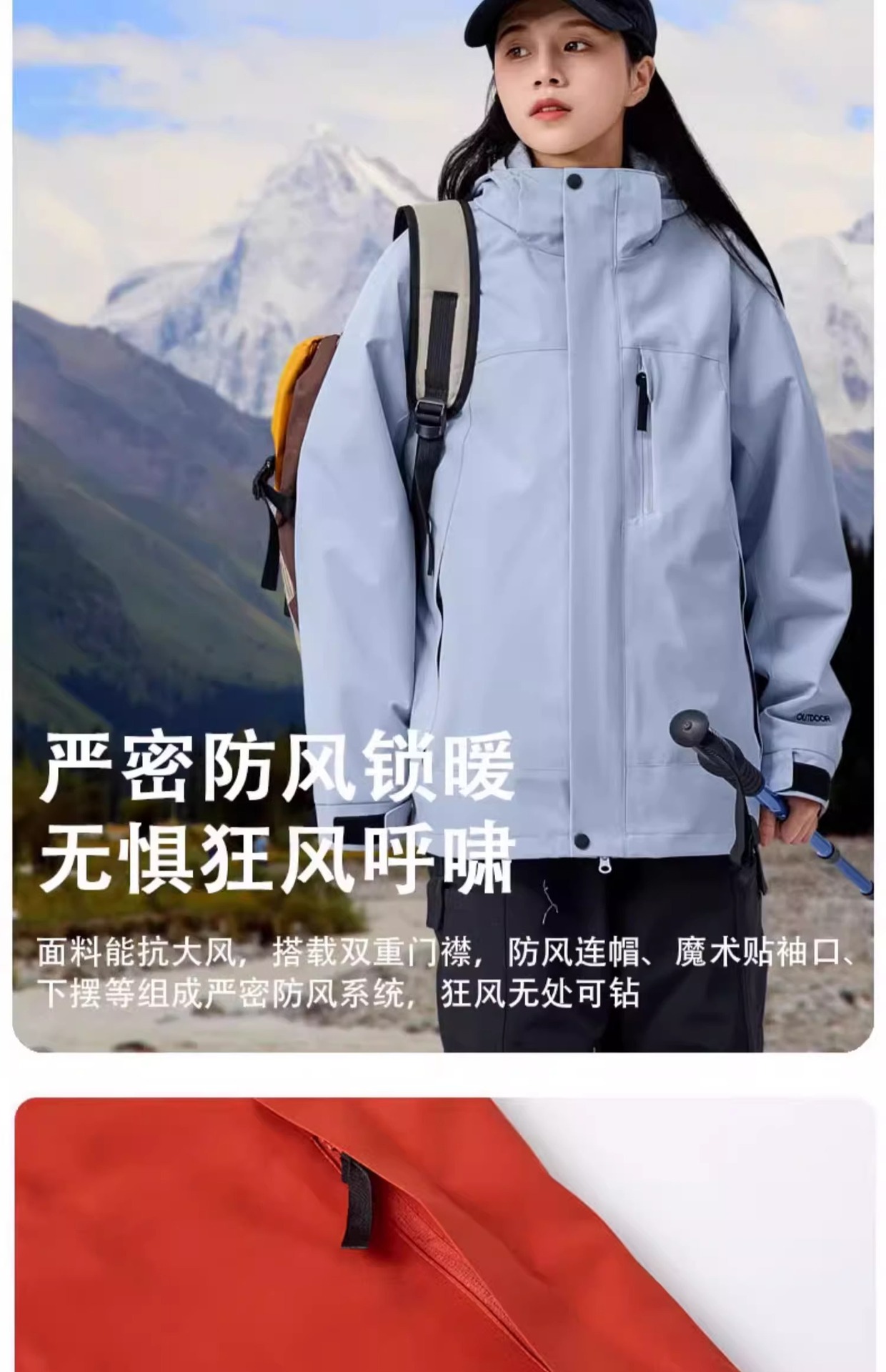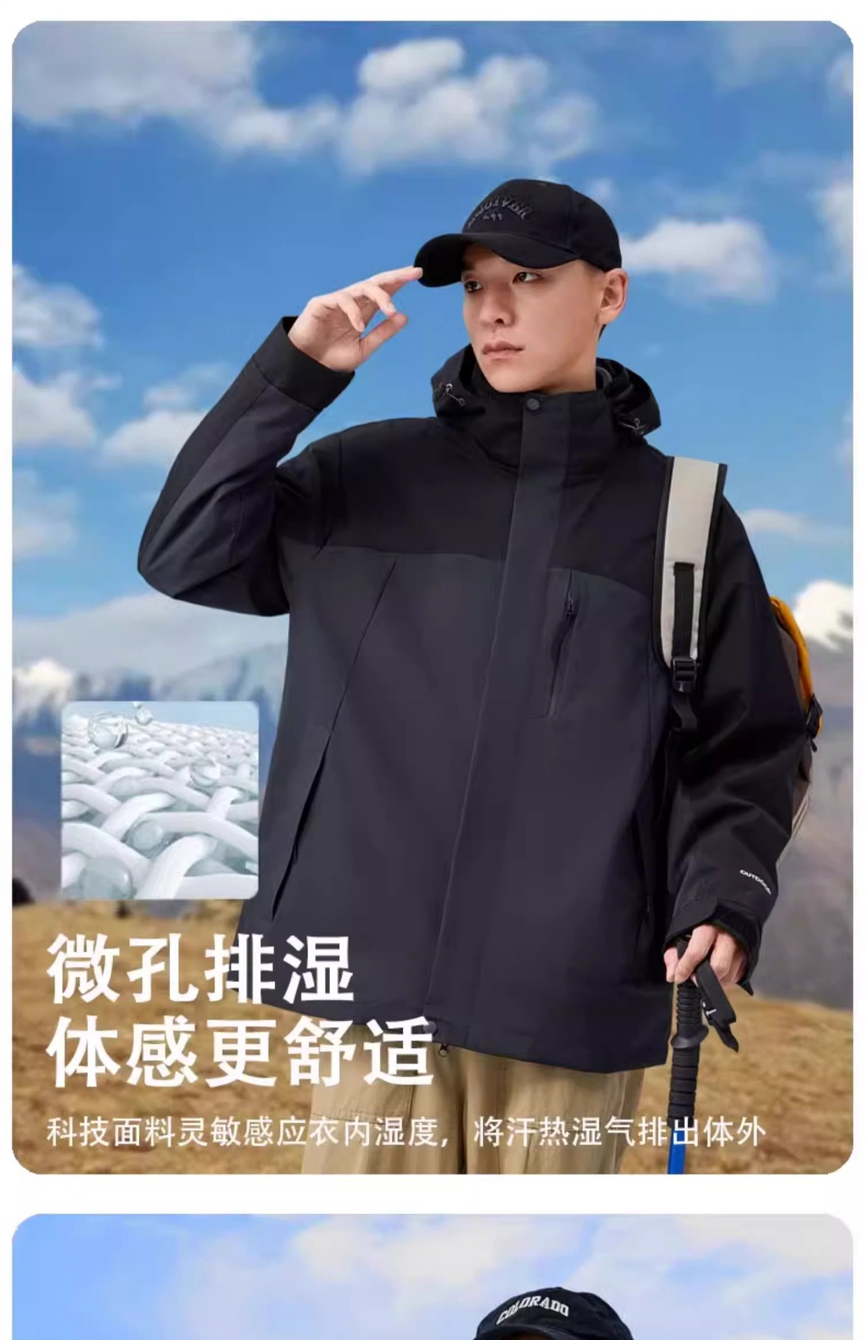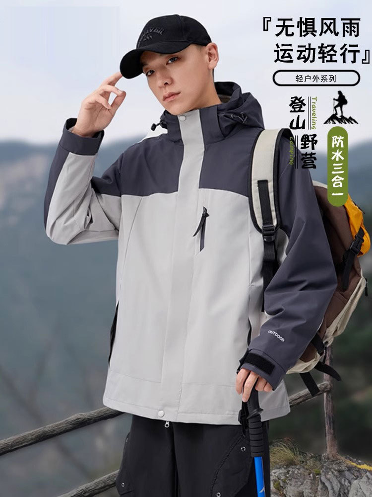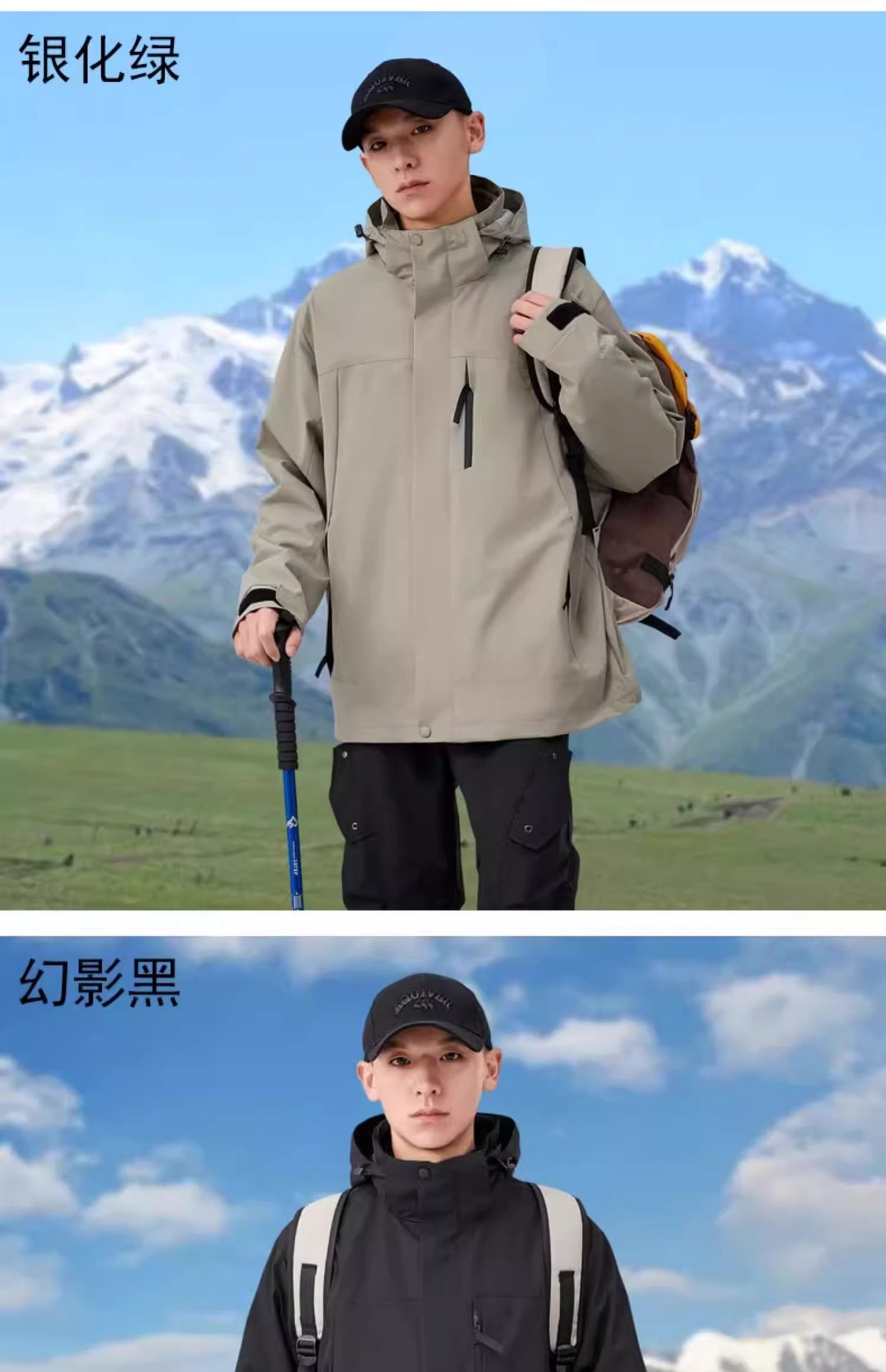 야외 폭행 의류 여성의 2024 가을 및 겨울 새로운 3 대 1 탈착식 투피스 방풍 방수 등산 세트 남성용스토어 가기