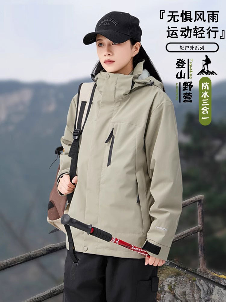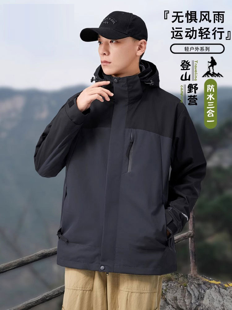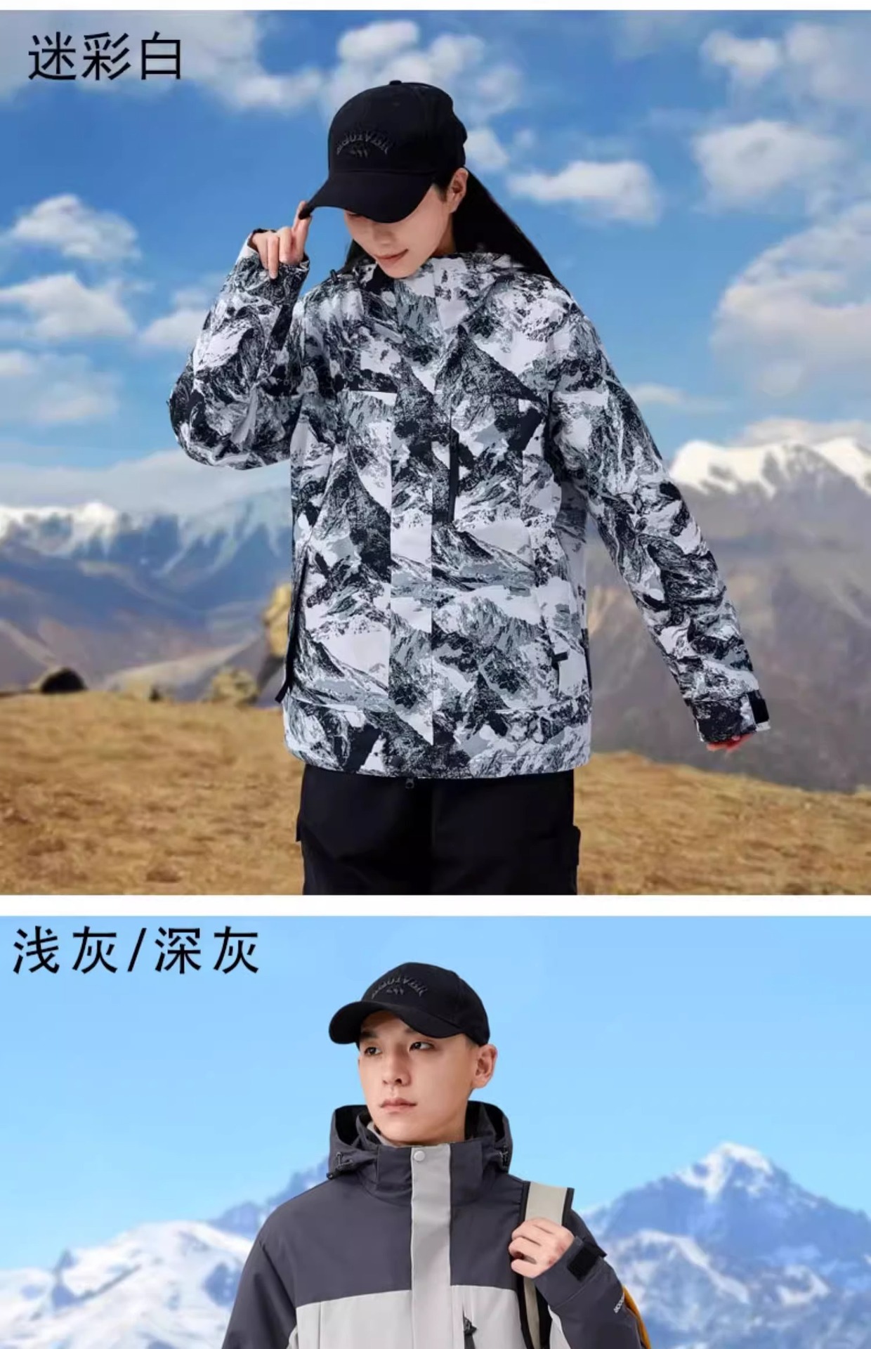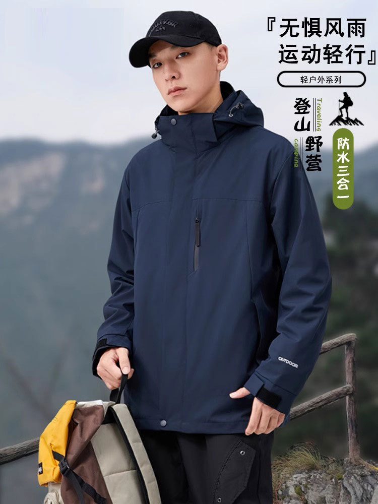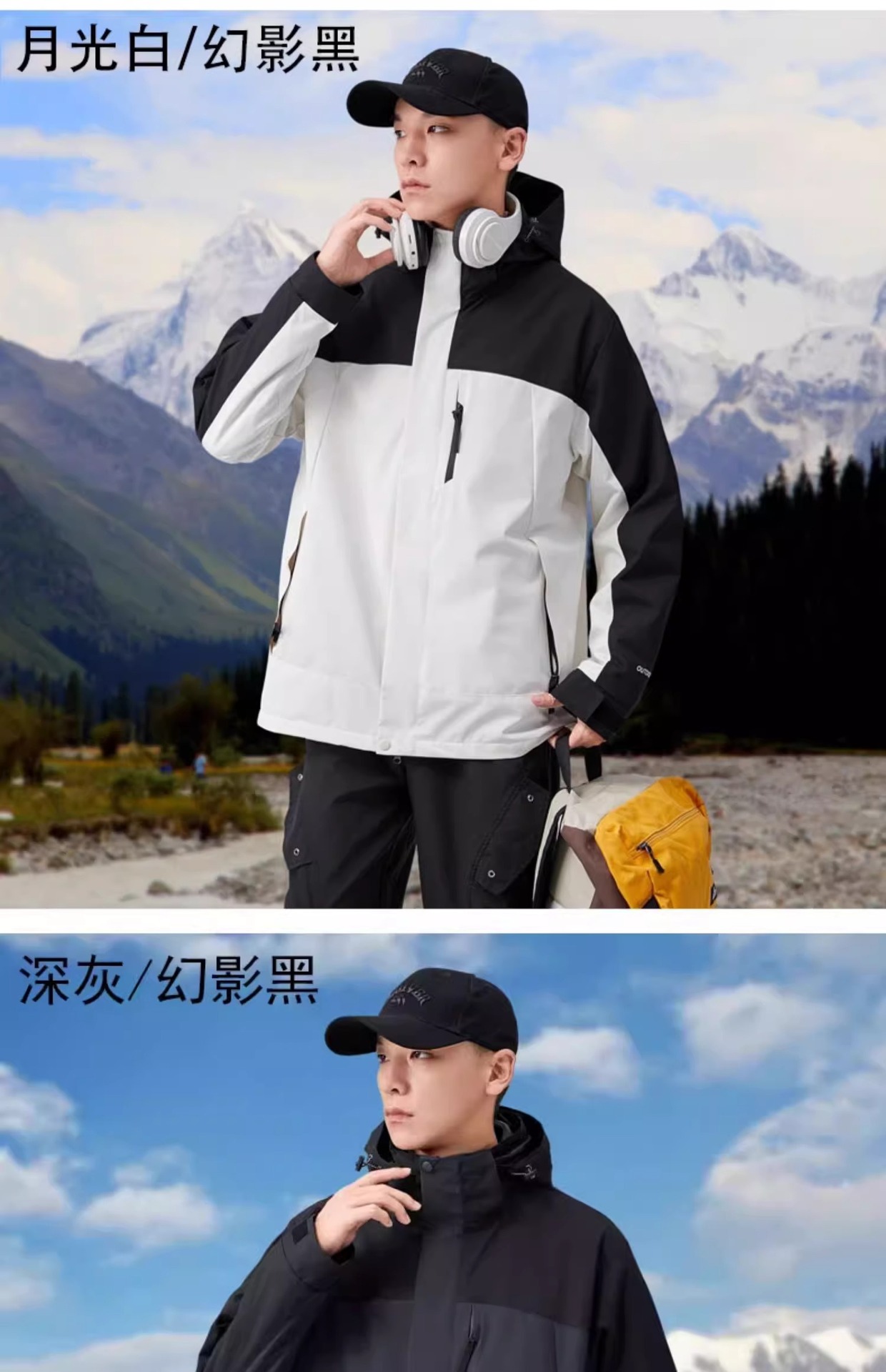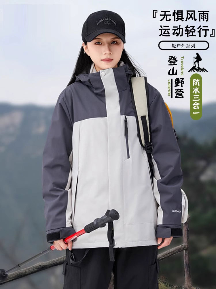 야외 폭행 의류 여성의 2024 가을 및 겨울 새로운 3 대 1 탈착식 투피스 방풍 방수 등산 세트 남성용스토어 가기