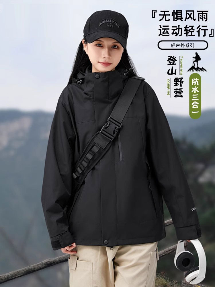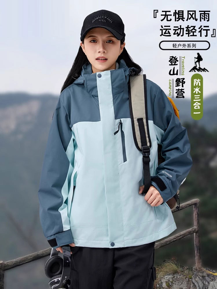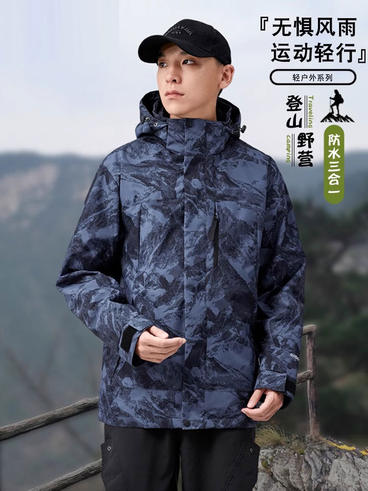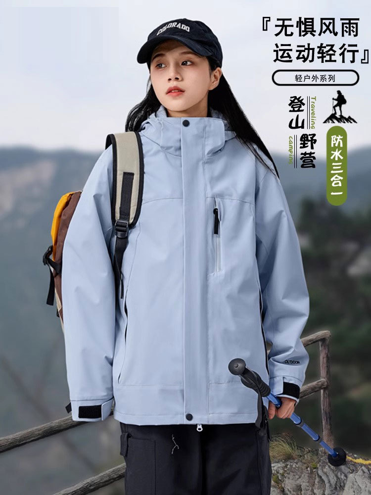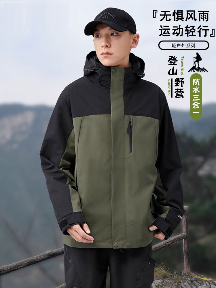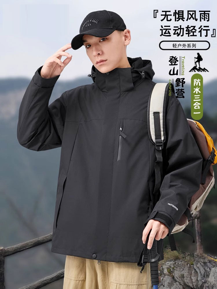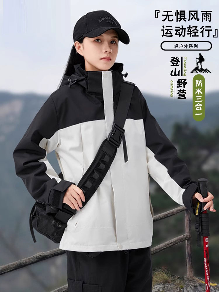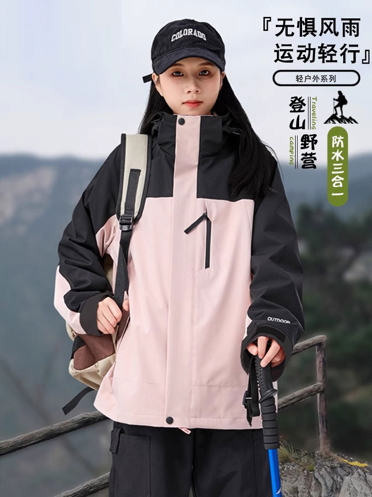 야외 폭행 의류 여성의 2024 가을 및 겨울 새로운 3 대 1 탈착식 투피스 방풍 방수 등산 세트 남성용스토어 가기