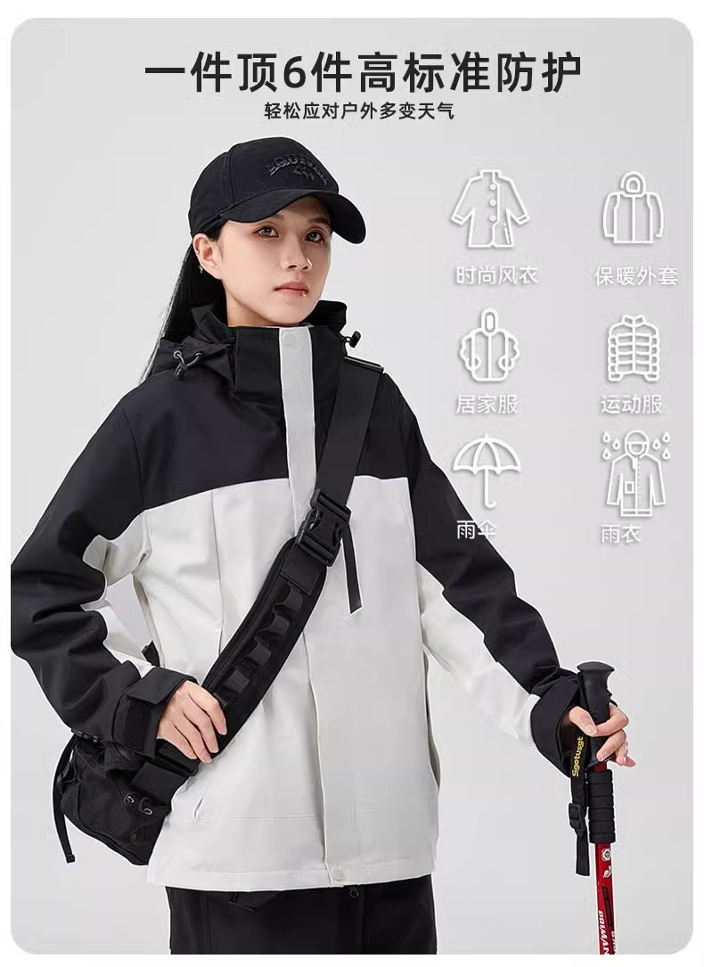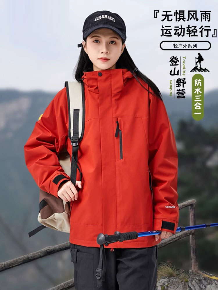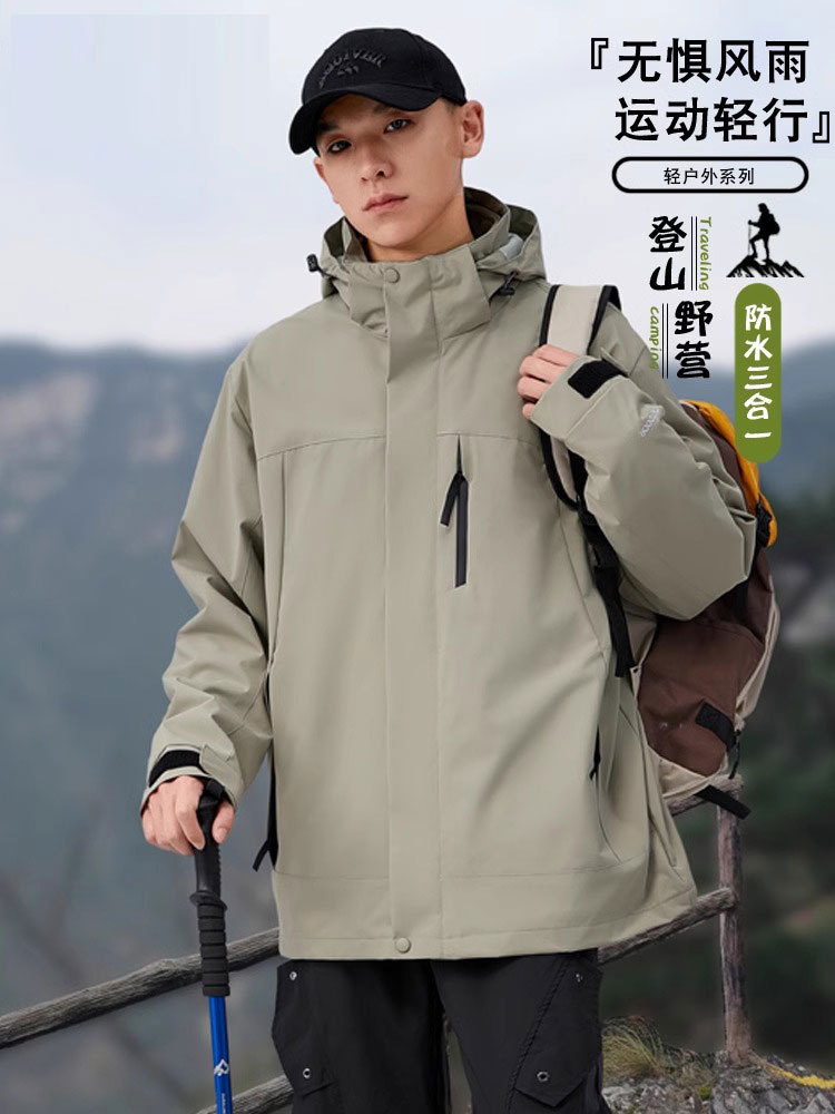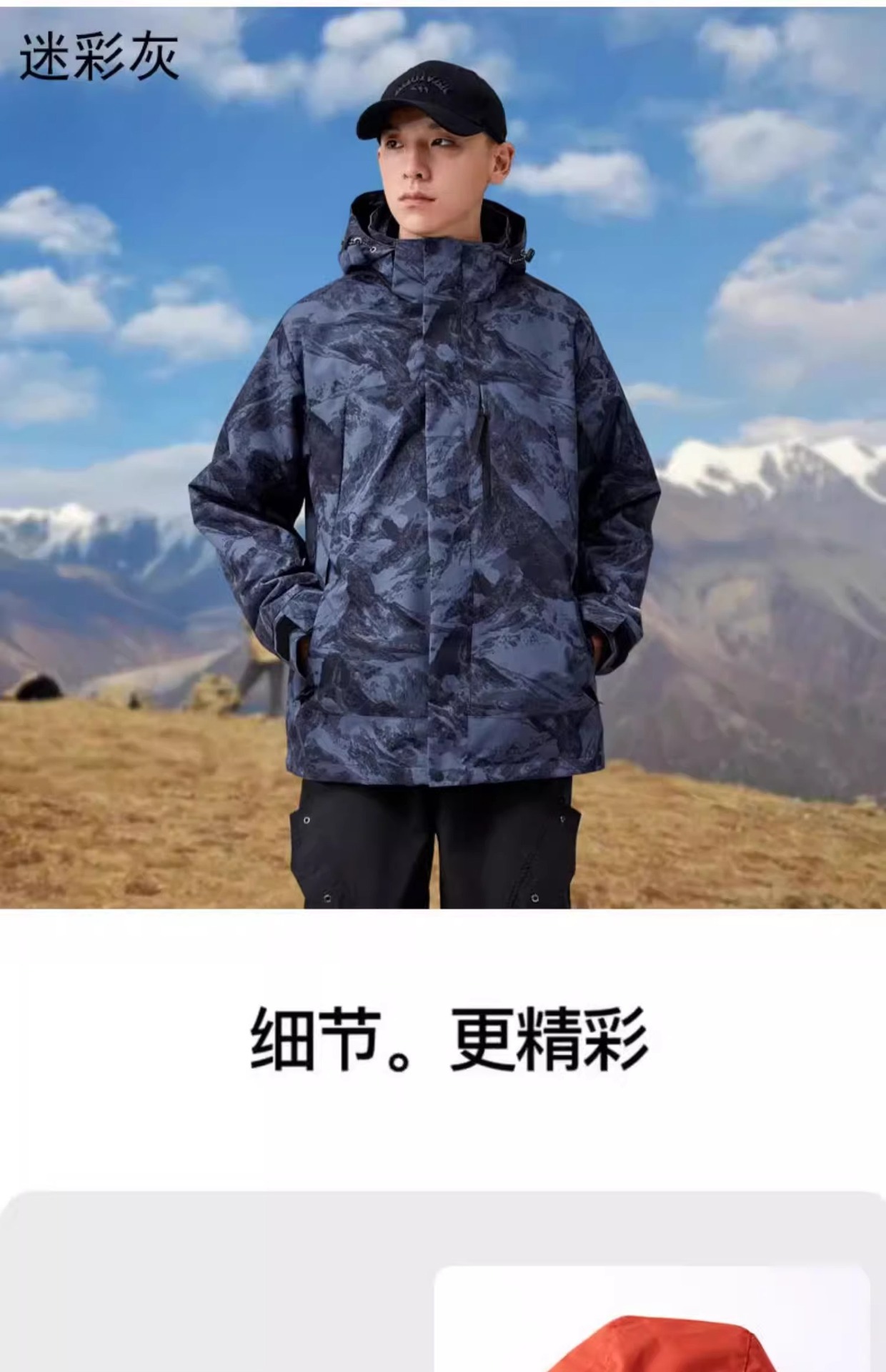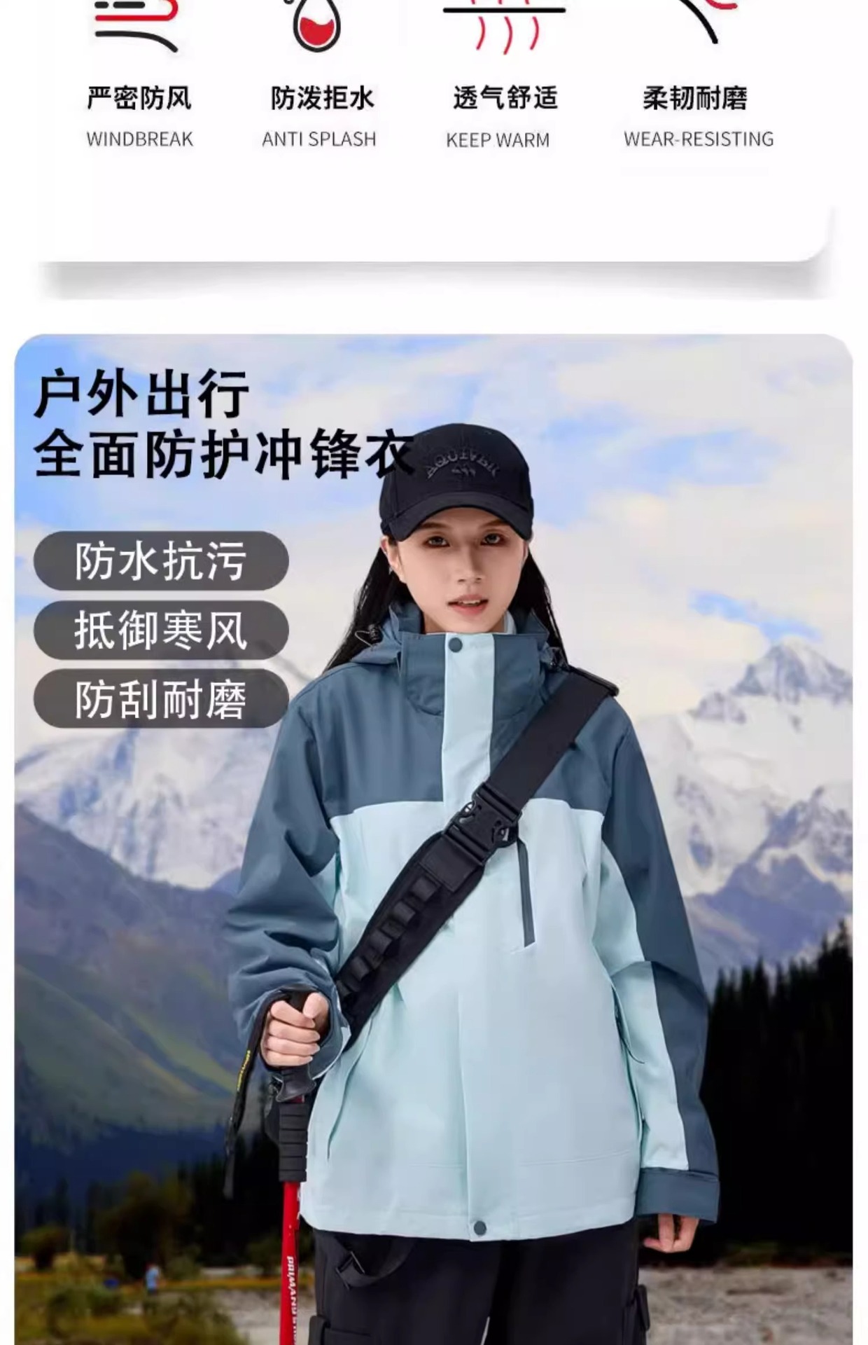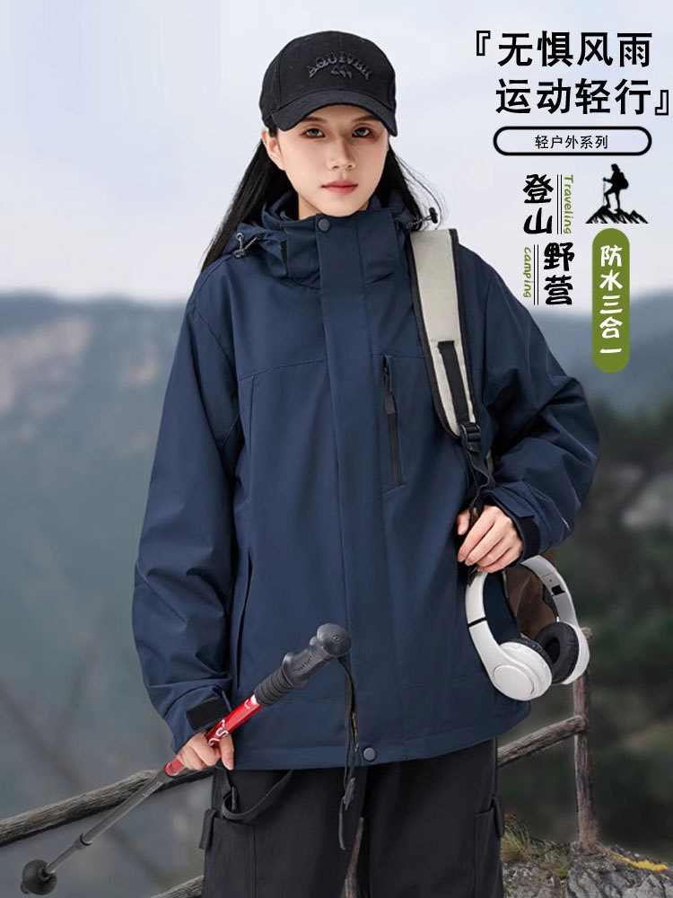 야외 폭행 의류 여성의 2024 가을 및 겨울 새로운 3 대 1 탈착식 투피스 방풍 방수 등산 세트 남성용스토어 가기