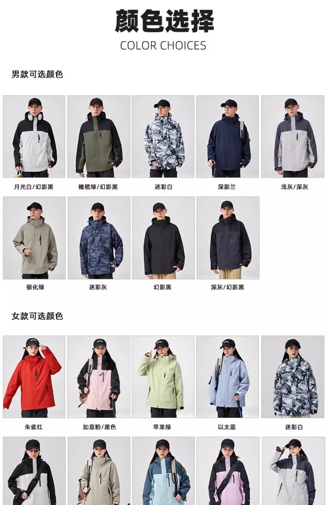 야외 폭행 의류 여성의 2024 가을 및 겨울 새로운 3 대 1 탈착식 투피스 방풍 방수 등산 세트 남성용