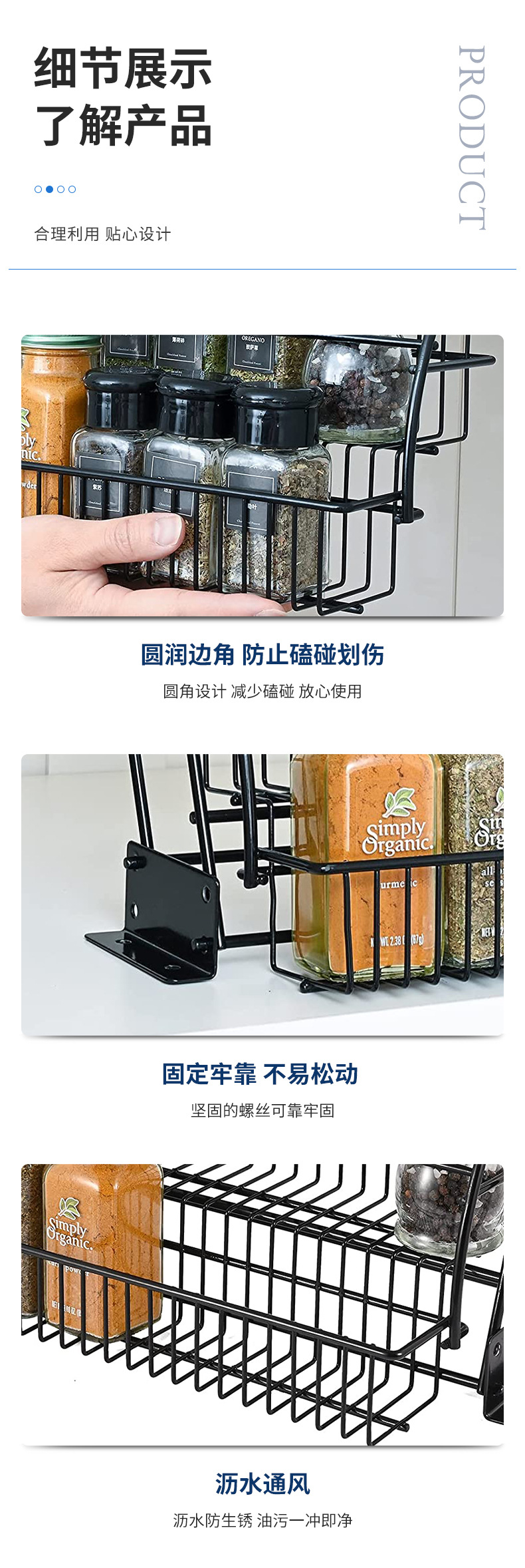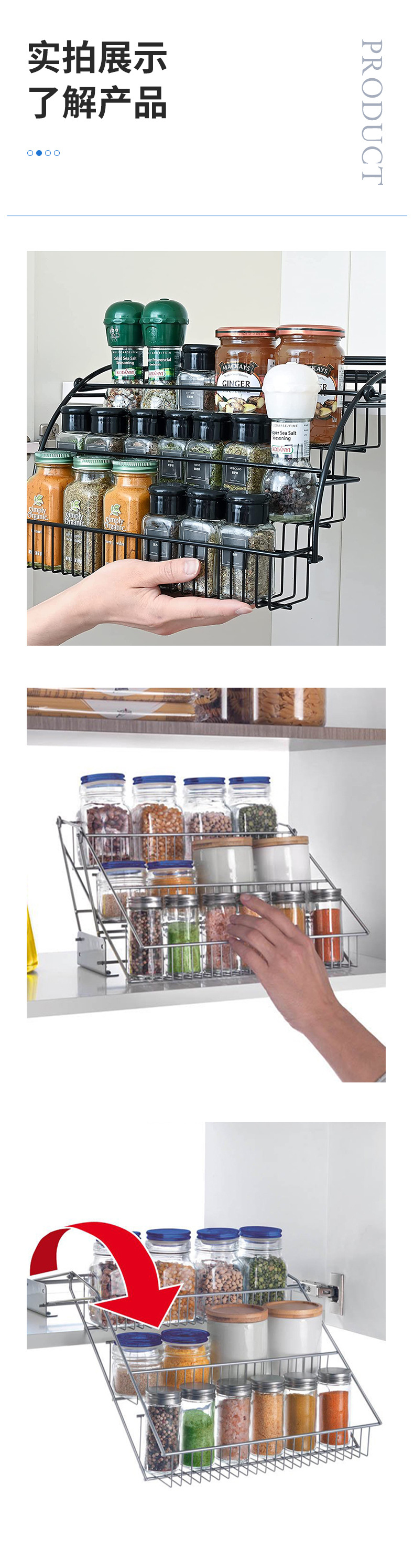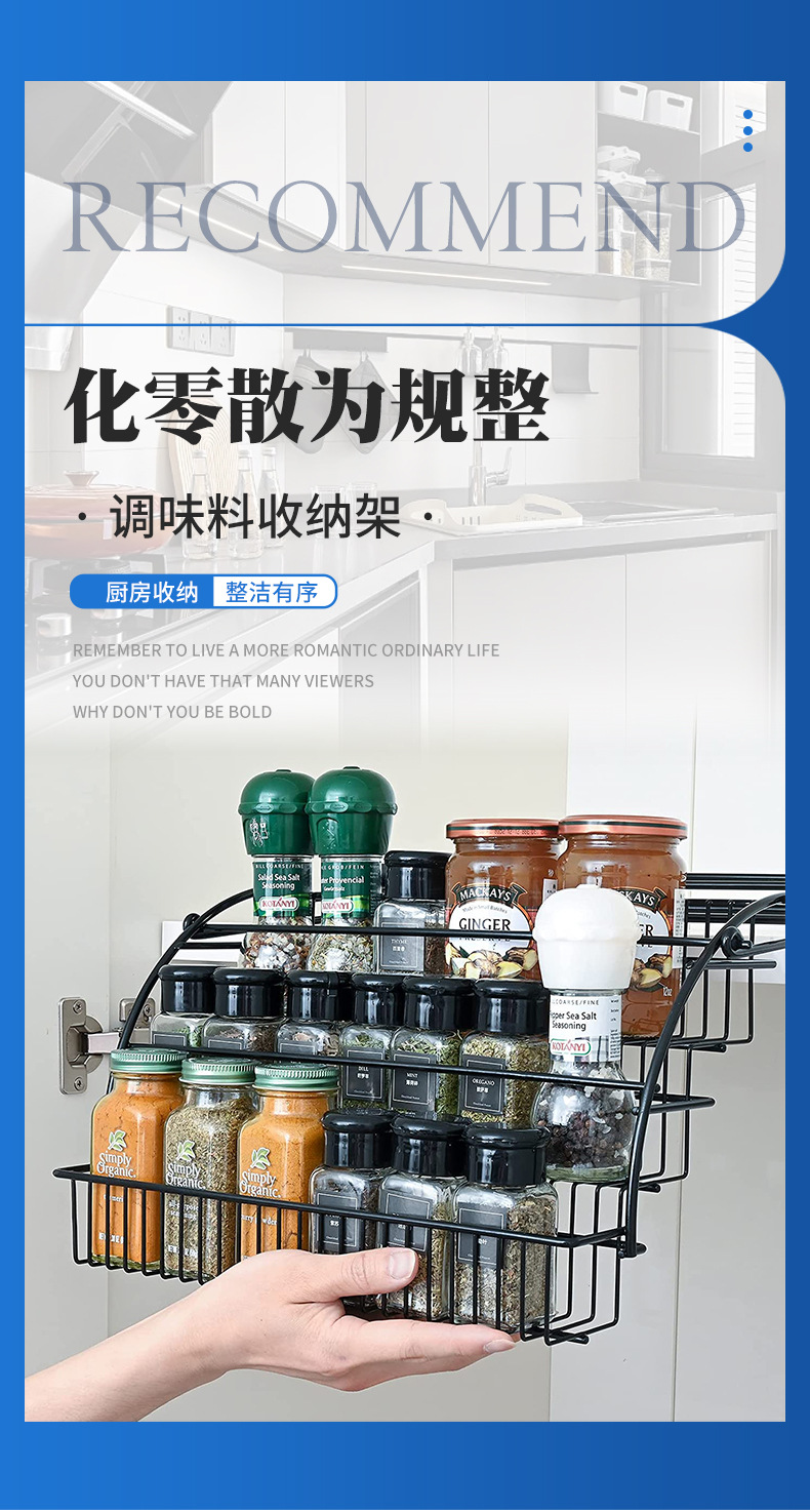 국경 간 주방 풀 아웃 스토리지 랙 스파이스 랙 캐비닛 스토리지 랙 철 데스크탑 3 층 스파이스 랙 도매