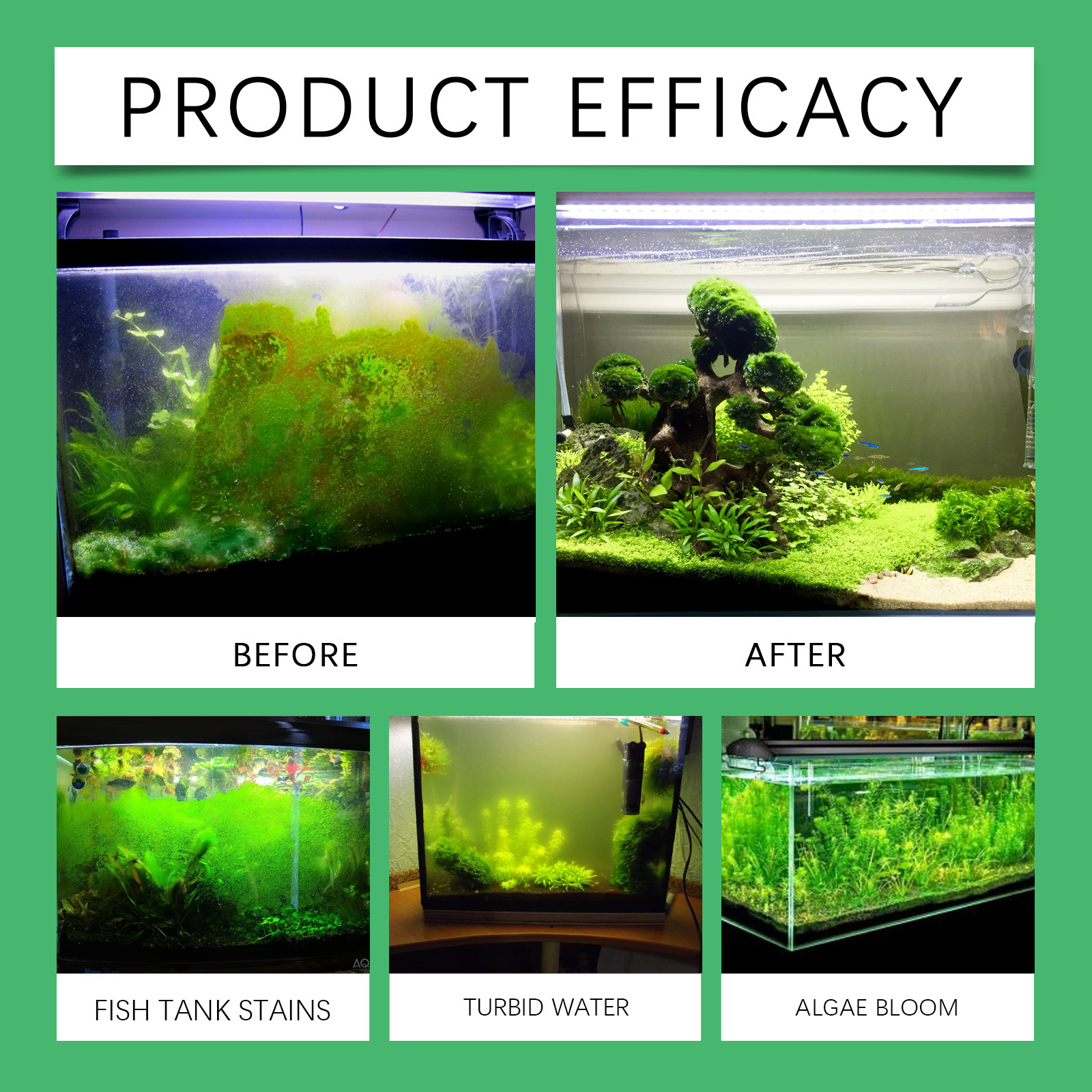예봉 조류 제거 설명 에이전트 청소 어항 녹색 다크 브라운 실크 조류 검은 털 이끼 조류 수질 정화 물고기
