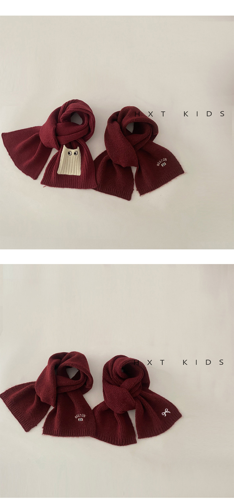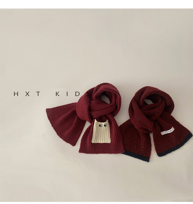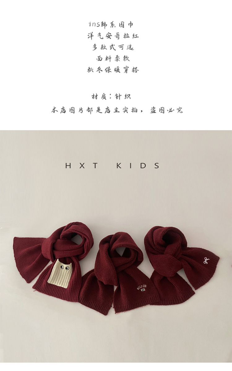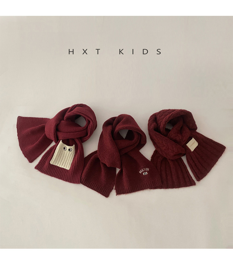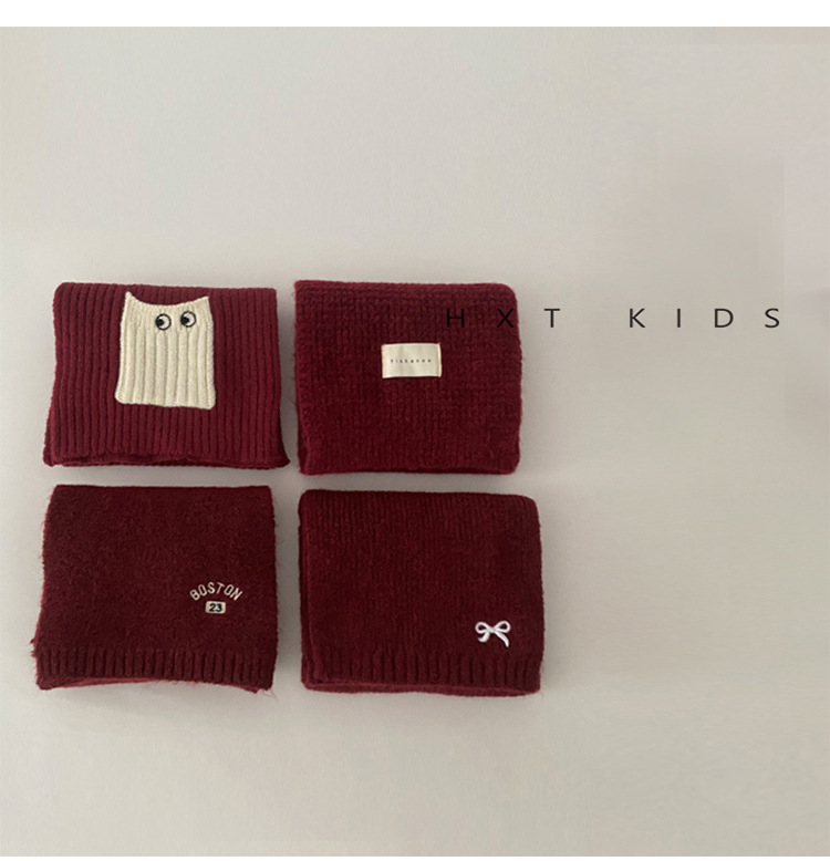 2024 앙골라 레드 어린이 스카프 작은 문자 자수 따뜻한 기능 한국 소년과 소녀 베이비 스카프 유행스토어 가기