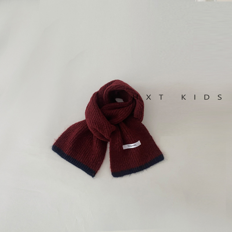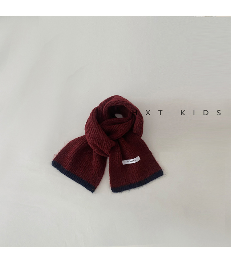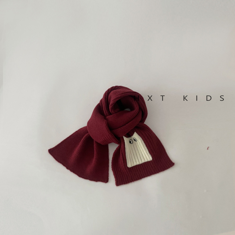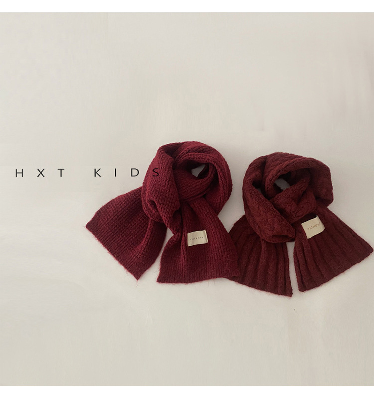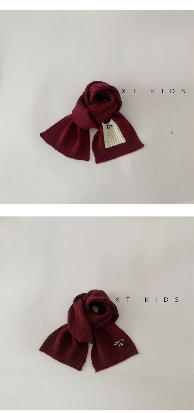 2024 앙골라 레드 어린이 스카프 작은 문자 자수 따뜻한 기능 한국 소년과 소녀 베이비 스카프 유행스토어 가기