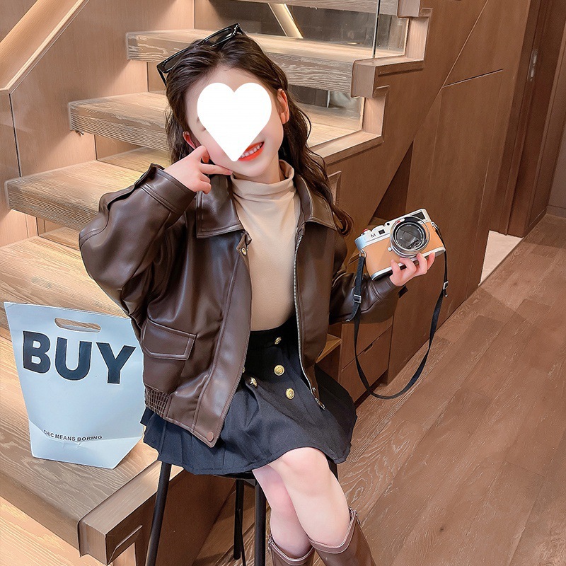 소녀 인터넷 인기있는 봄과 가을 멋진 가죽 코트 어린이 서양식 봄 2024 새로운 도착 유행 봄 자켓 탑스토어 가기