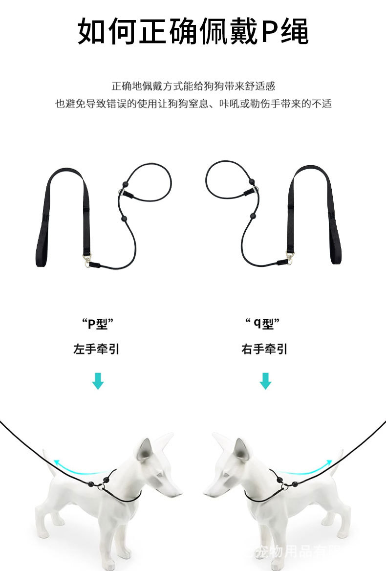 인기있는 P 로프 개 견인 로프 질식 방지 로프 이중 핸들 애완 동물 훈련사 개 훈련을위한 통합 개 P 로프스토어 가기