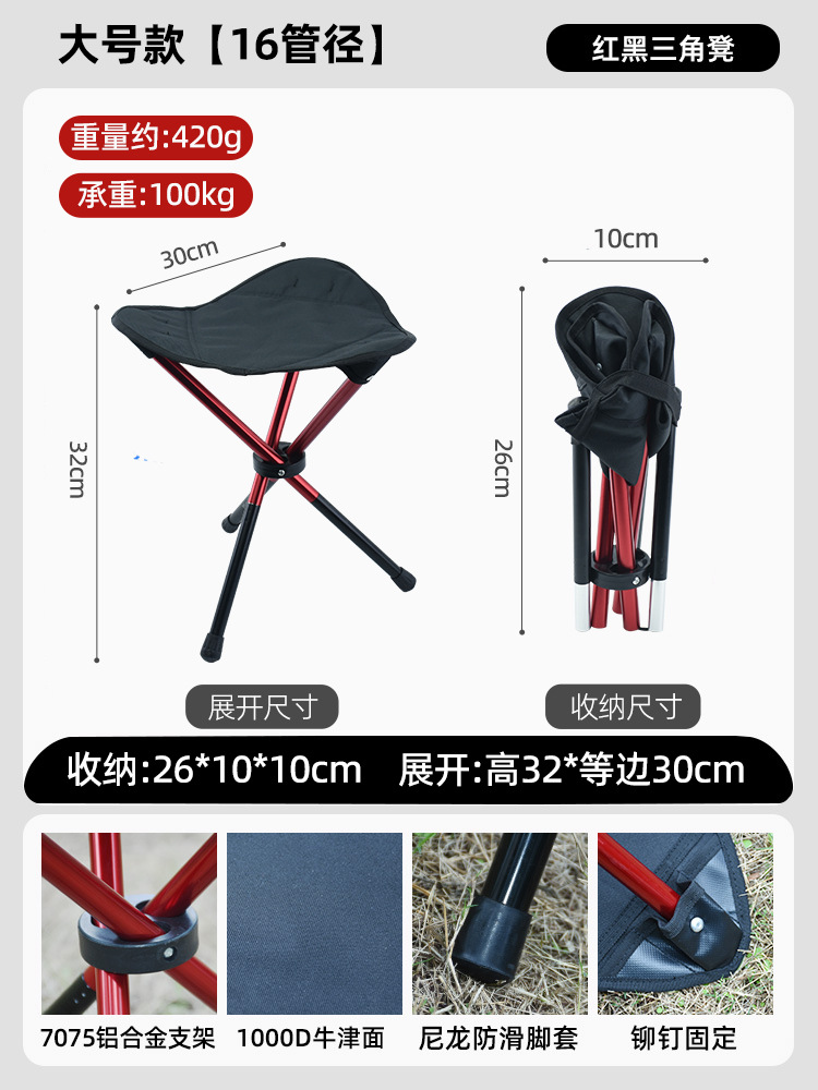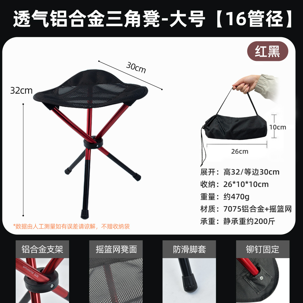 • 통기성 모델/7075 알루미늄 합금 삼각 스툴 [빨간색과 검정색 모델]-앉은 높이 32CM