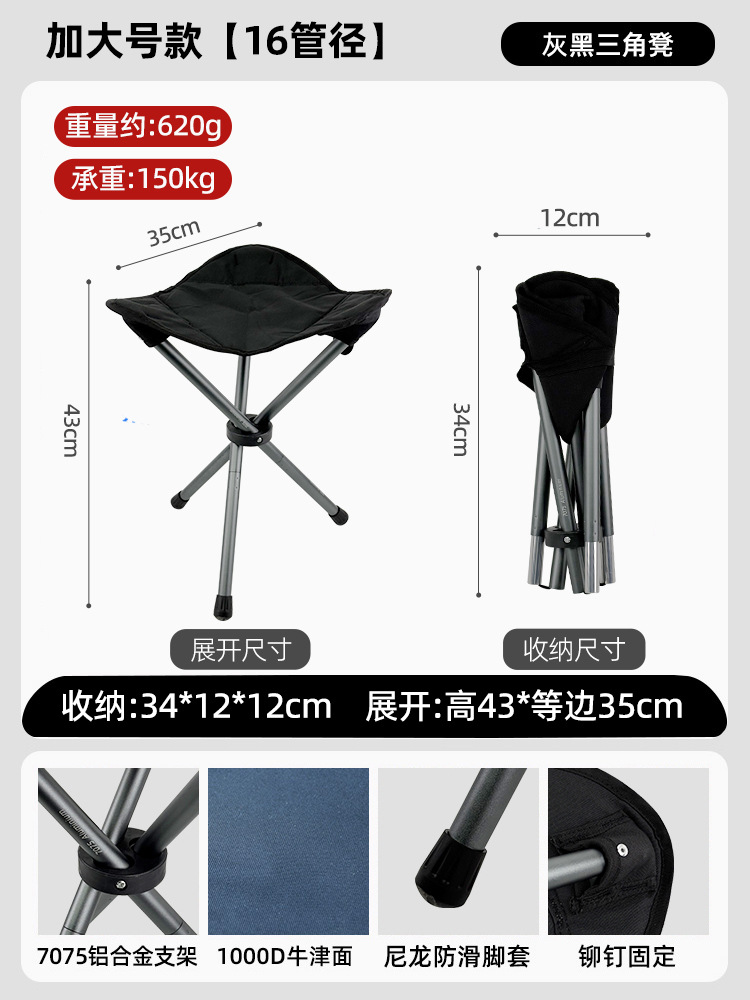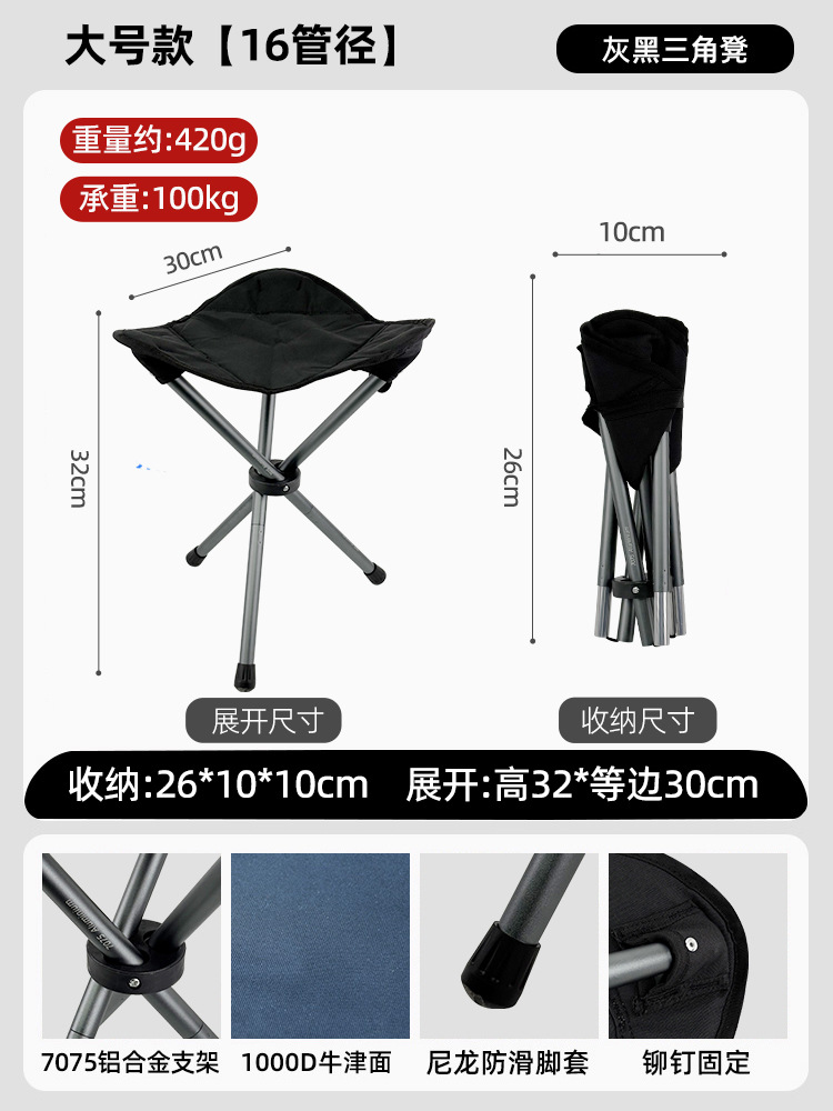 • 통기성 모델/7075 알루미늄 합금 삼각 스툴 [블랙 및 그레이 모델]-좌석 높이 32CM
