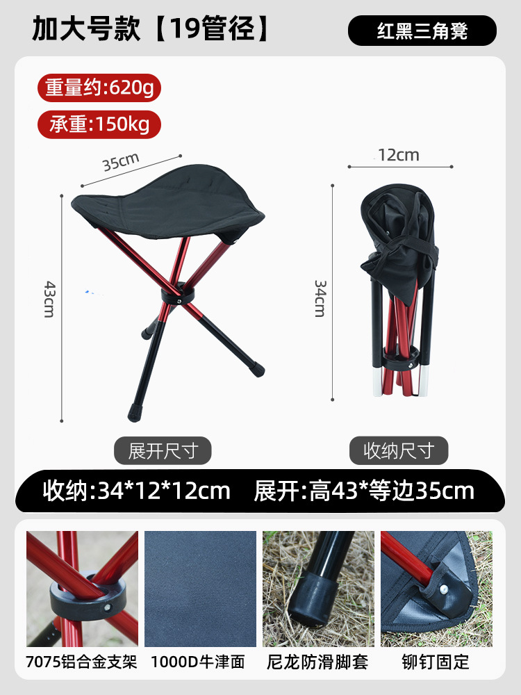 • 통기성 모델/7075 알루미늄 합금 삼각 스툴 [레드 및 블랙 모델]-좌석 높이 43CM