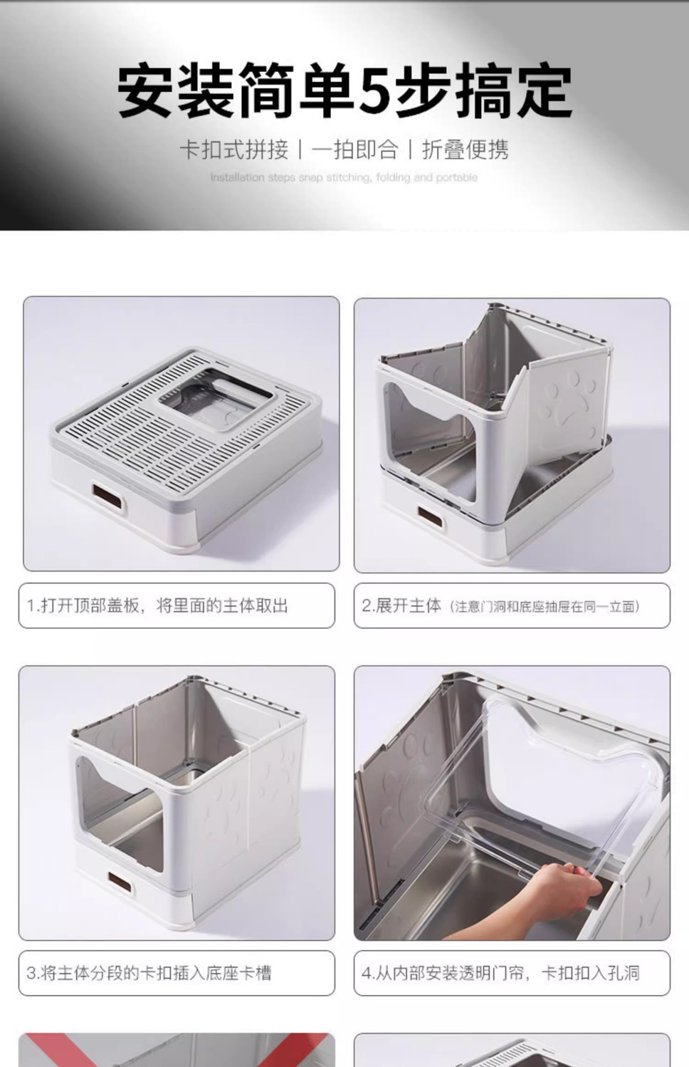 너트 스테인레스 스틸 서랍 고양이 쓰레기 상자 상단 필터 모래 모래 번개스토어 가기