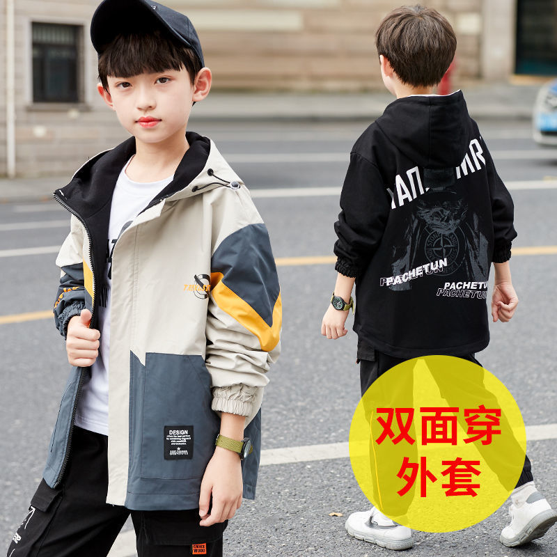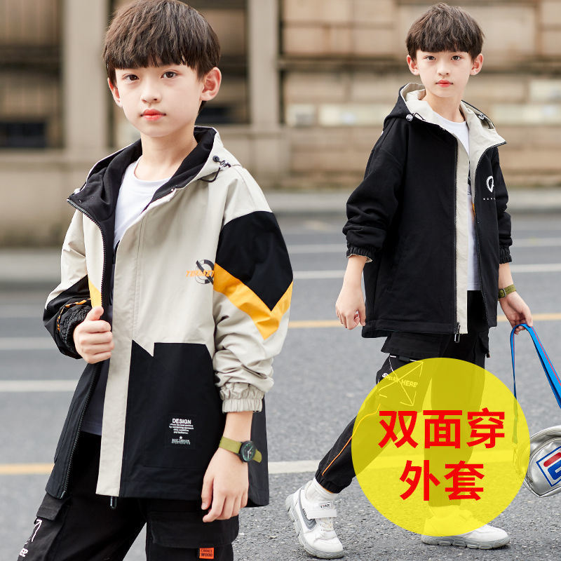 남학생 '봄코트 2024 새 소년 가을 캐주얼 한국 양면 바람막이 중형 트렌디 재킷