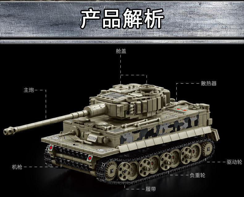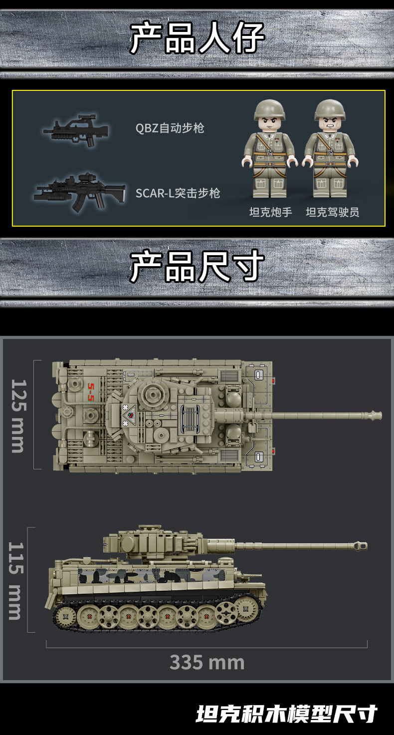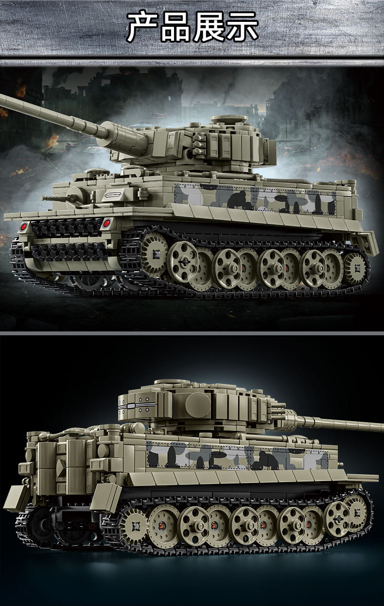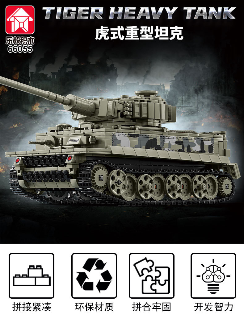 Le Yi Tiger T34 헤비 메인 배틀 탱크 군사 시리즈 조립 작은 입자 빌딩 블록 어린이 남성 국경 장난감스토어 가기