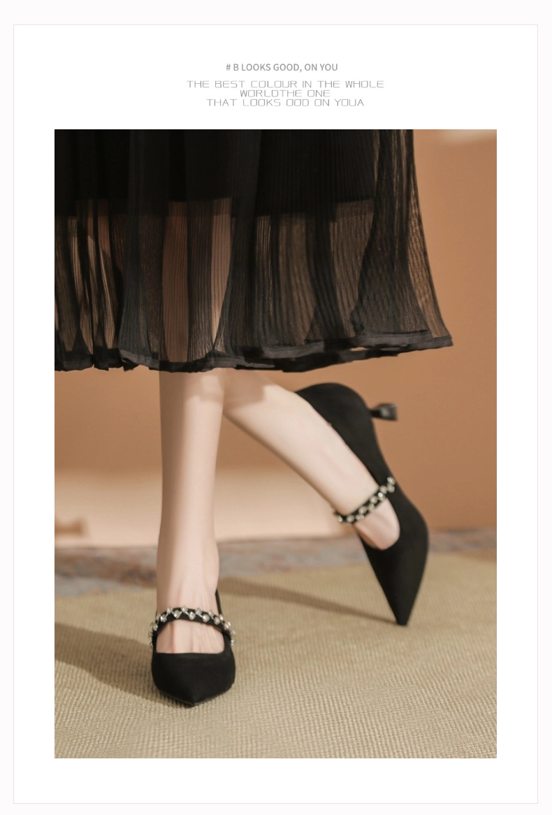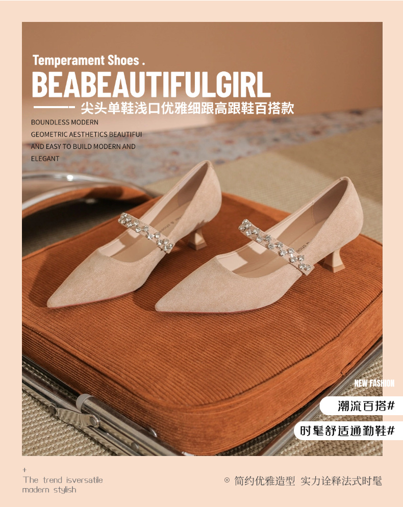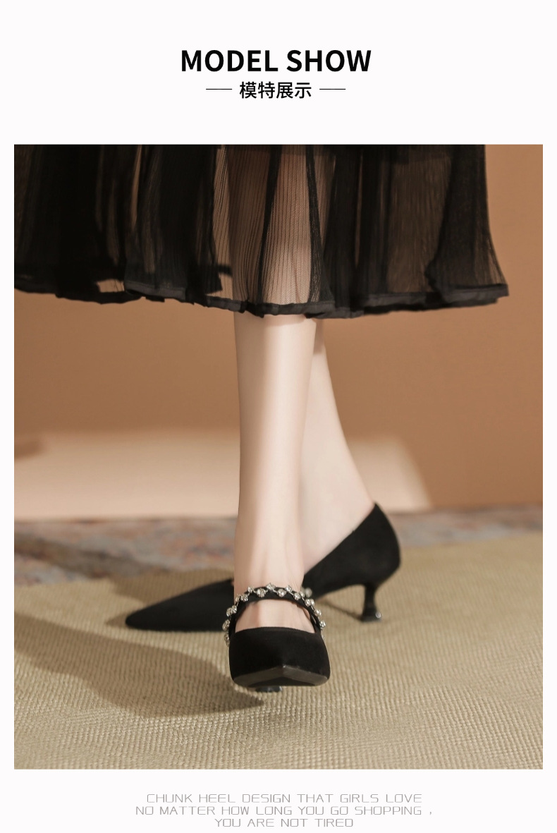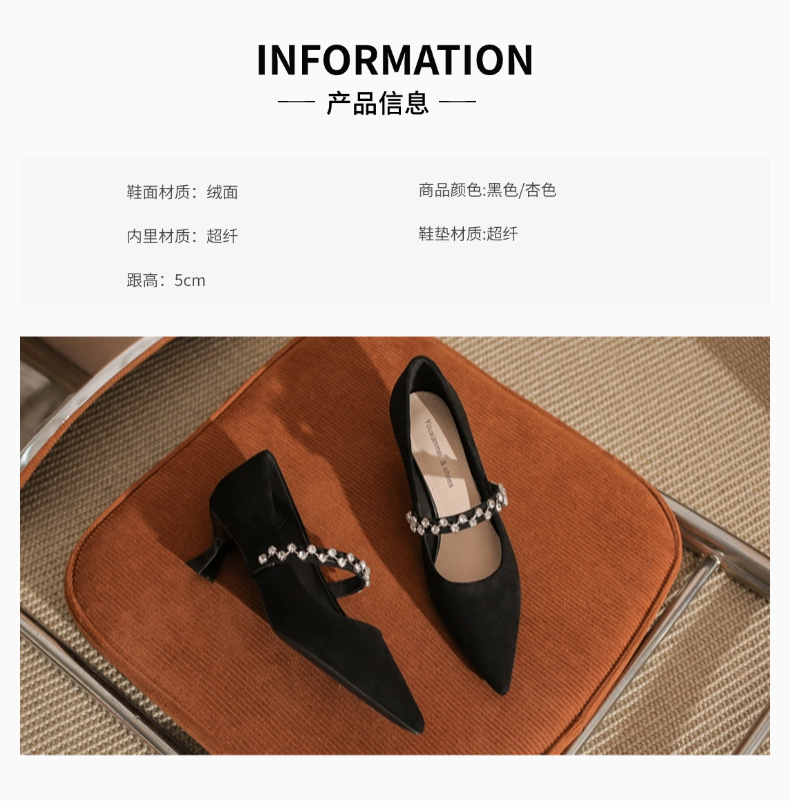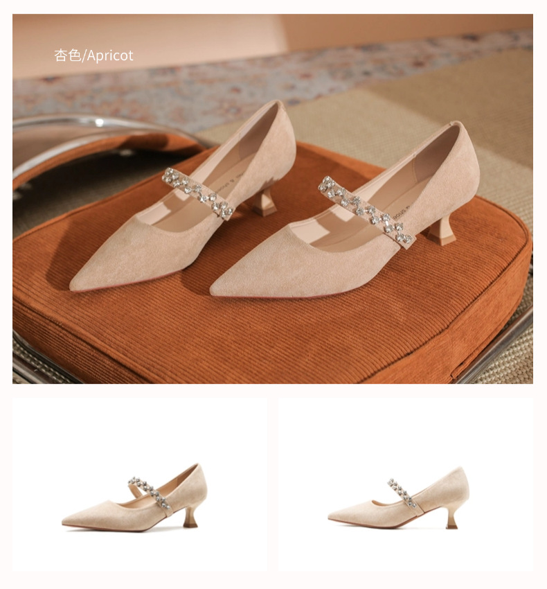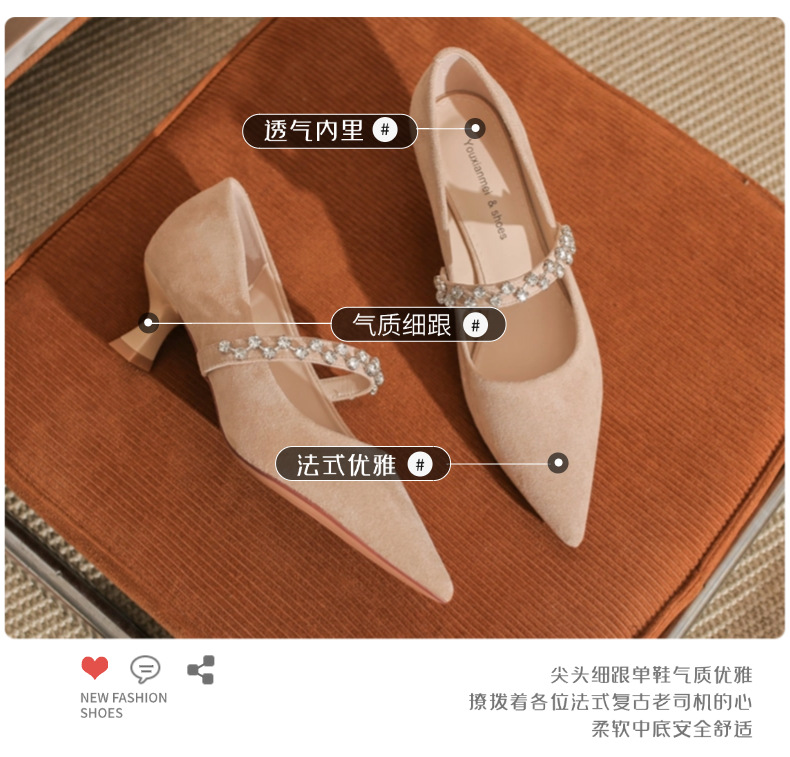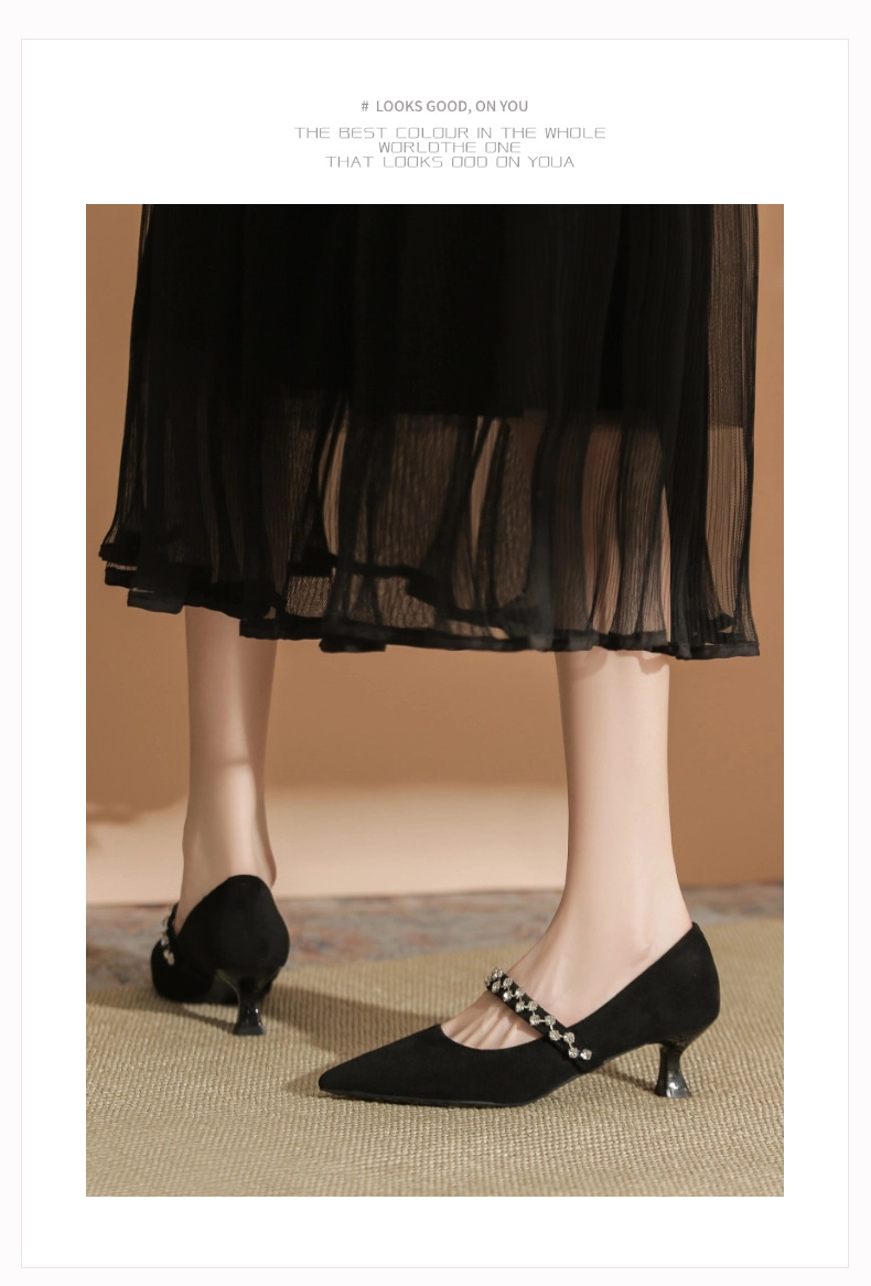 5000-1 스웨이드 싱글-얕은 하이힐, 라인스톤 포인티드 힐 여성 신발 편안한 싱글 레이어 신발스토어 가기