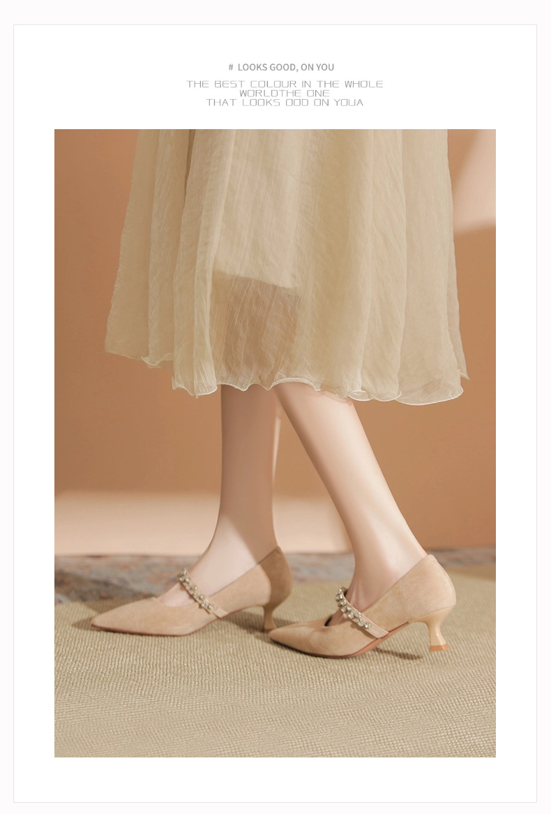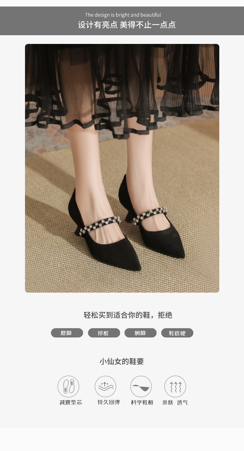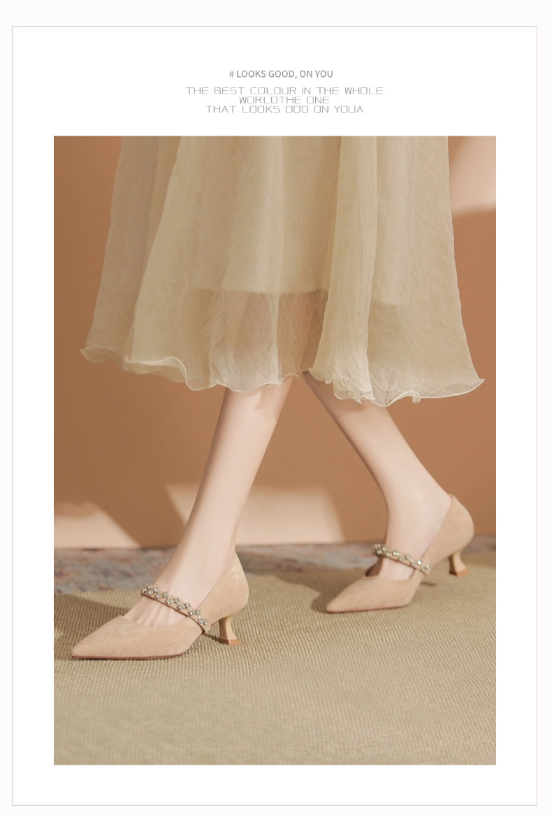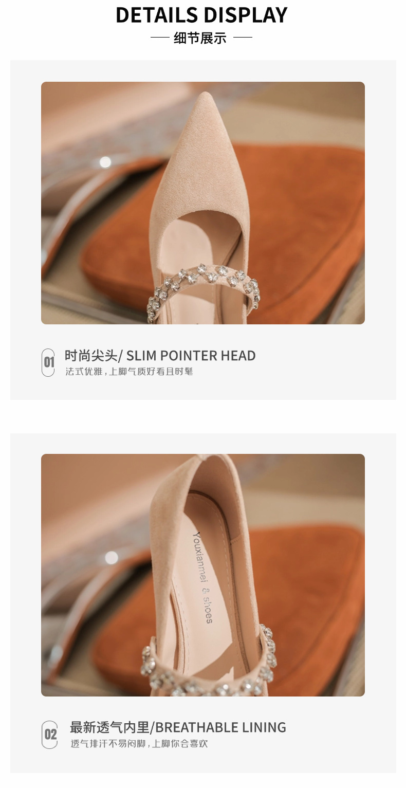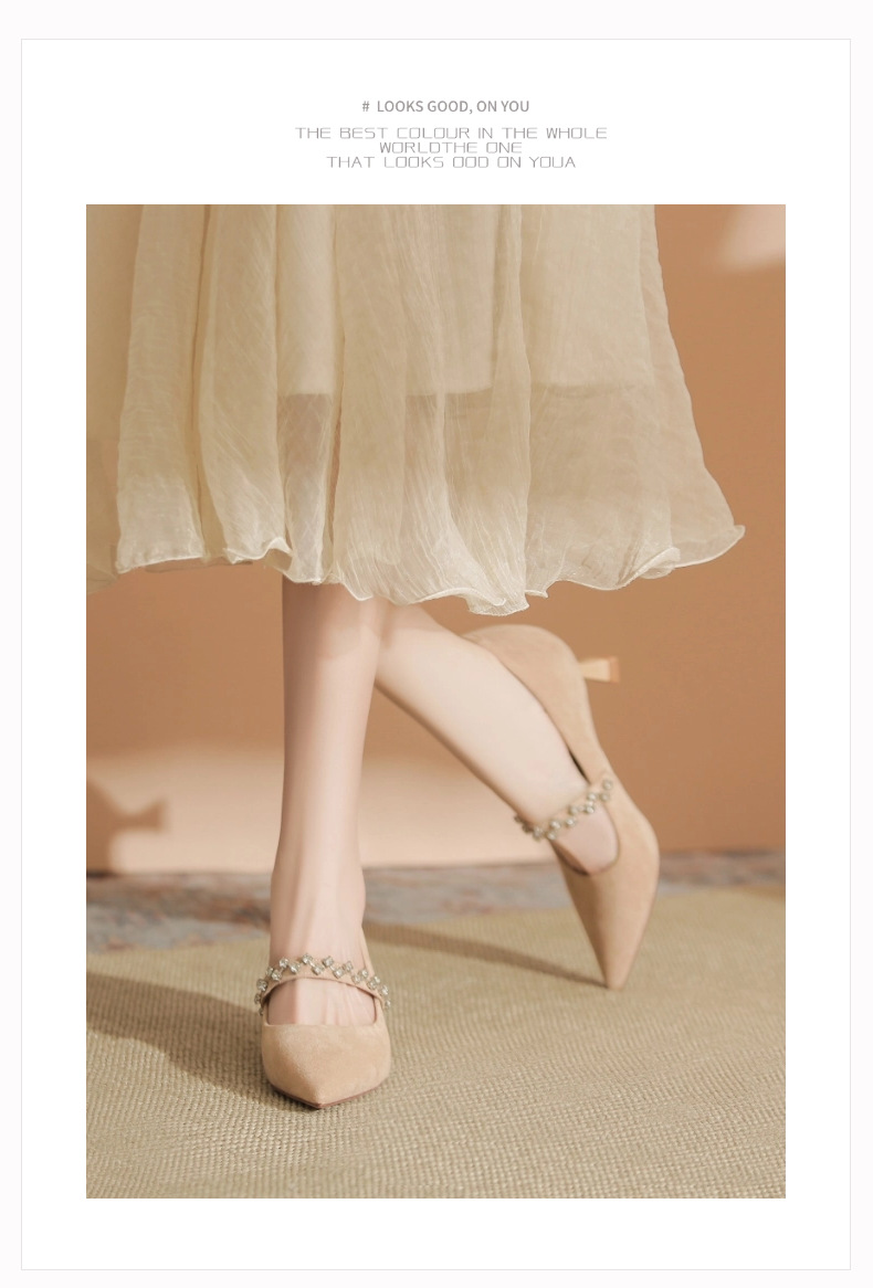 5000-1 스웨이드 싱글-얕은 하이힐, 라인스톤 포인티드 힐 여성 신발 편안한 싱글 레이어 신발스토어 가기