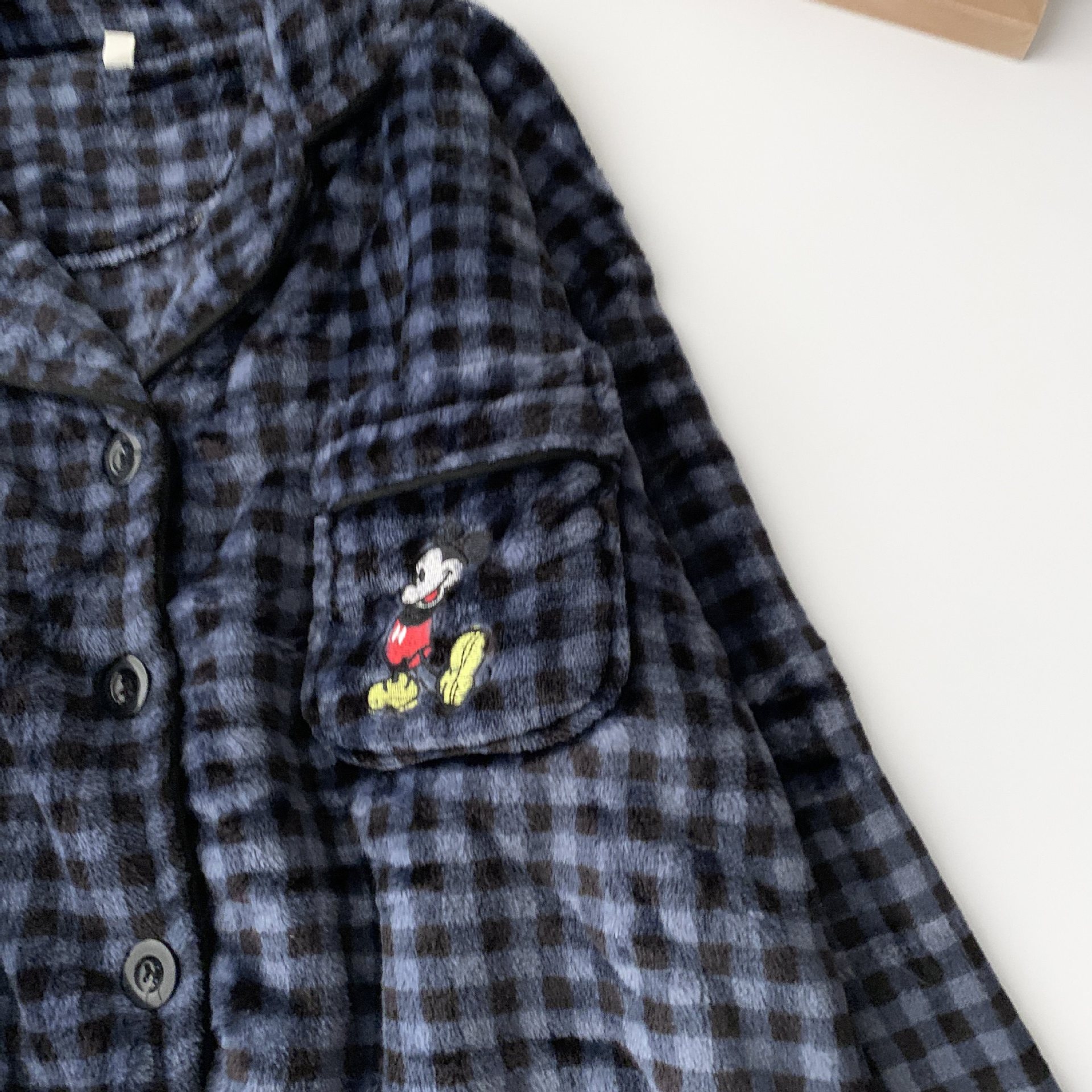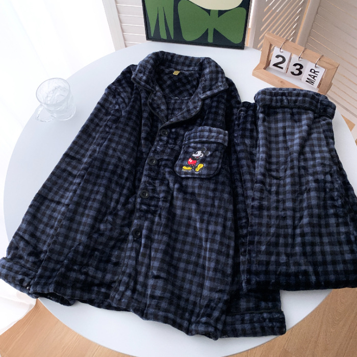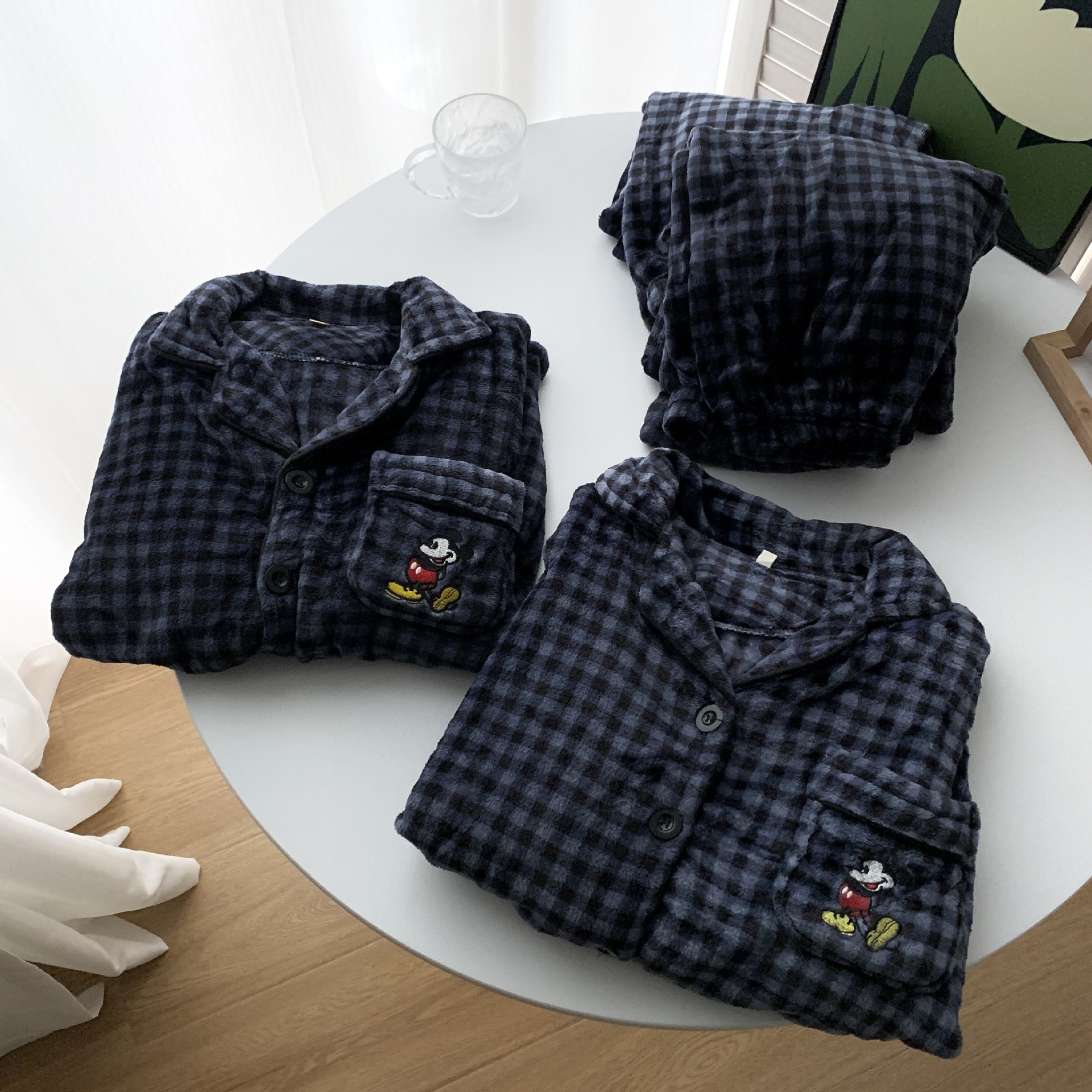 리얼 샷 # 격자 무늬 미키 플란넬 파자마 여성 겨울 커플 인터넷 인기 귀여운 일본 봄과 가을 홈 의류스토어 가기