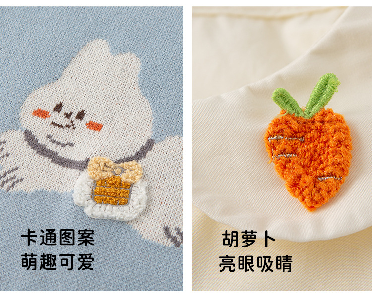Yubao 아동복 소녀 세트 봄 새 여성 보물 니트 조끼 어린이 셔츠 격자 무늬 주름 치마 3 종 세트스토어 가기