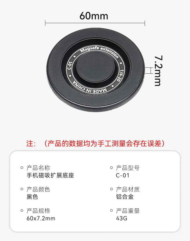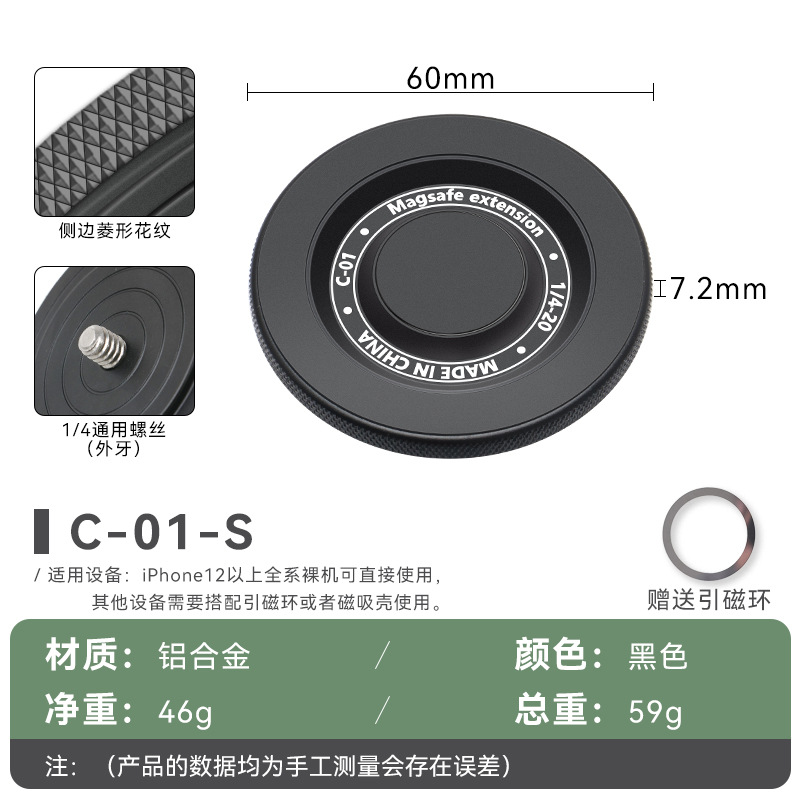 삼각대 휴대 전화 PTZ 1/4 범용 인터페이스 자동차 마그네틱 액세서리 브래킷에 적합한 Magsafe 자기베이스