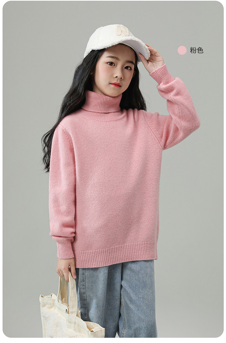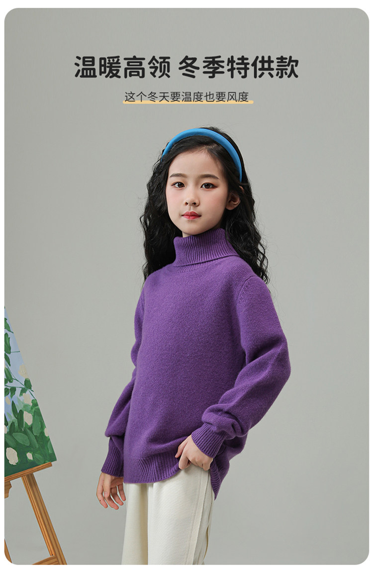 [100% 울] 어린이 스웨터 두꺼운 소년 터틀넥 스웨터 풀오버 여자 겨울용 니트 보텀 셔츠