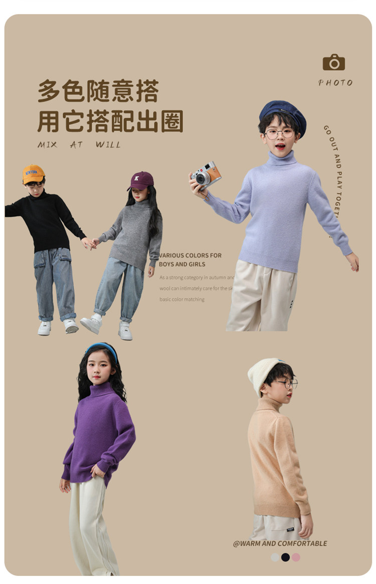 [100% 울] 어린이 스웨터 두꺼운 소년 터틀넥 스웨터 풀오버 여자 겨울용 니트 보텀 셔츠스토어 가기