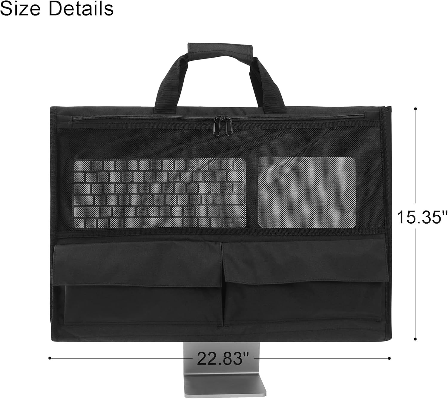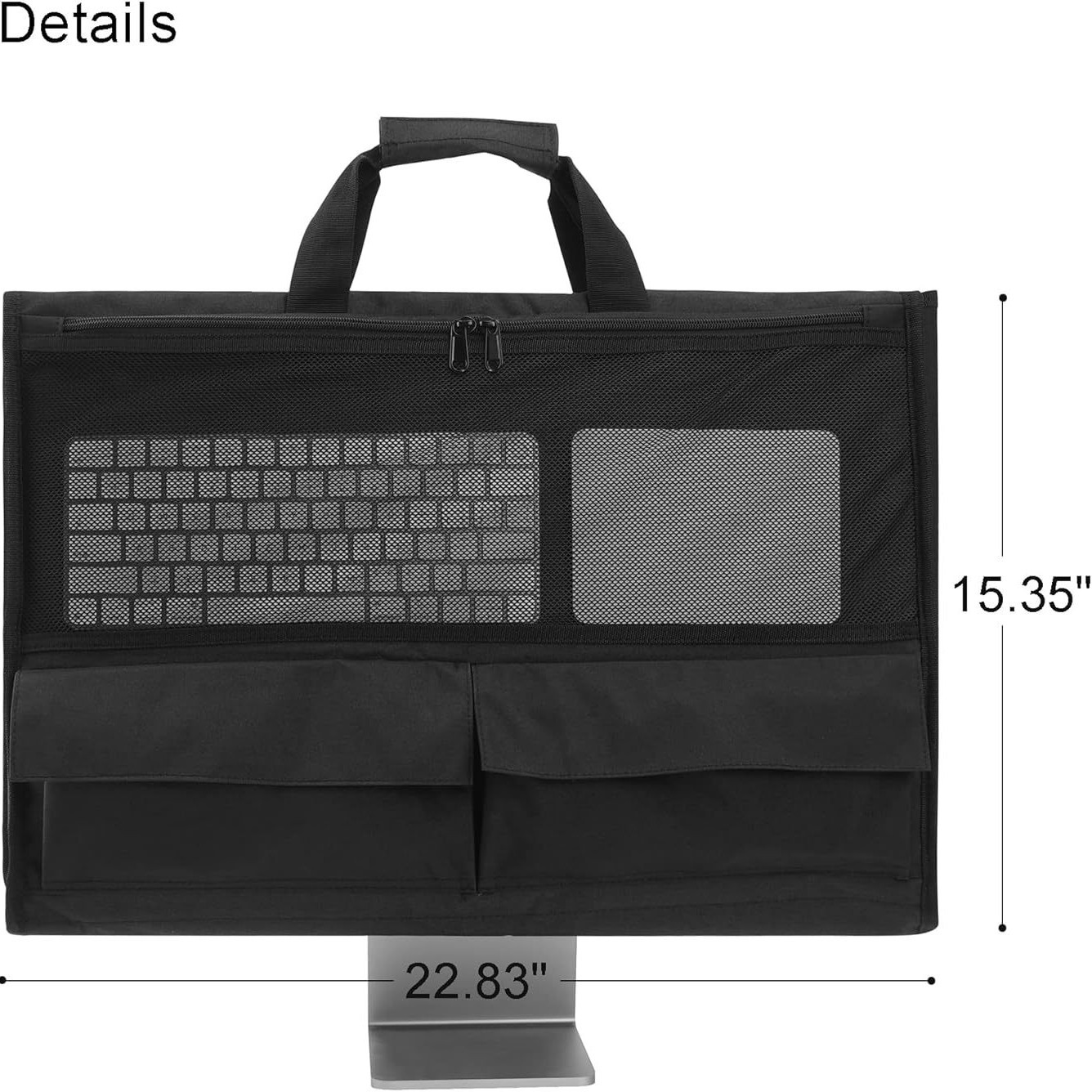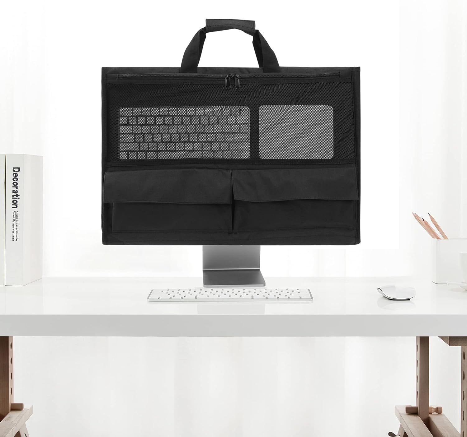 这款一体台式电脑包,采用优质防水尼龙材质制作,坚固耐用,内衬是柔软天鹅绒,完美防止撞击,让电脑远离灰尘、污垢和划痕。这款电脑包尺寸设计合理,适合24英寸的一体台式电脑。有多个口袋,可以存储电脑外设、键盘、鼠标、USB电源适配器、充电线等。电脑包的背面有多个插扣,使其更贴近电脑,更牢固。有一个坚固提手带,超级方便携带。是现场工作、摄影师、imac用户、设计师的完美礼物。