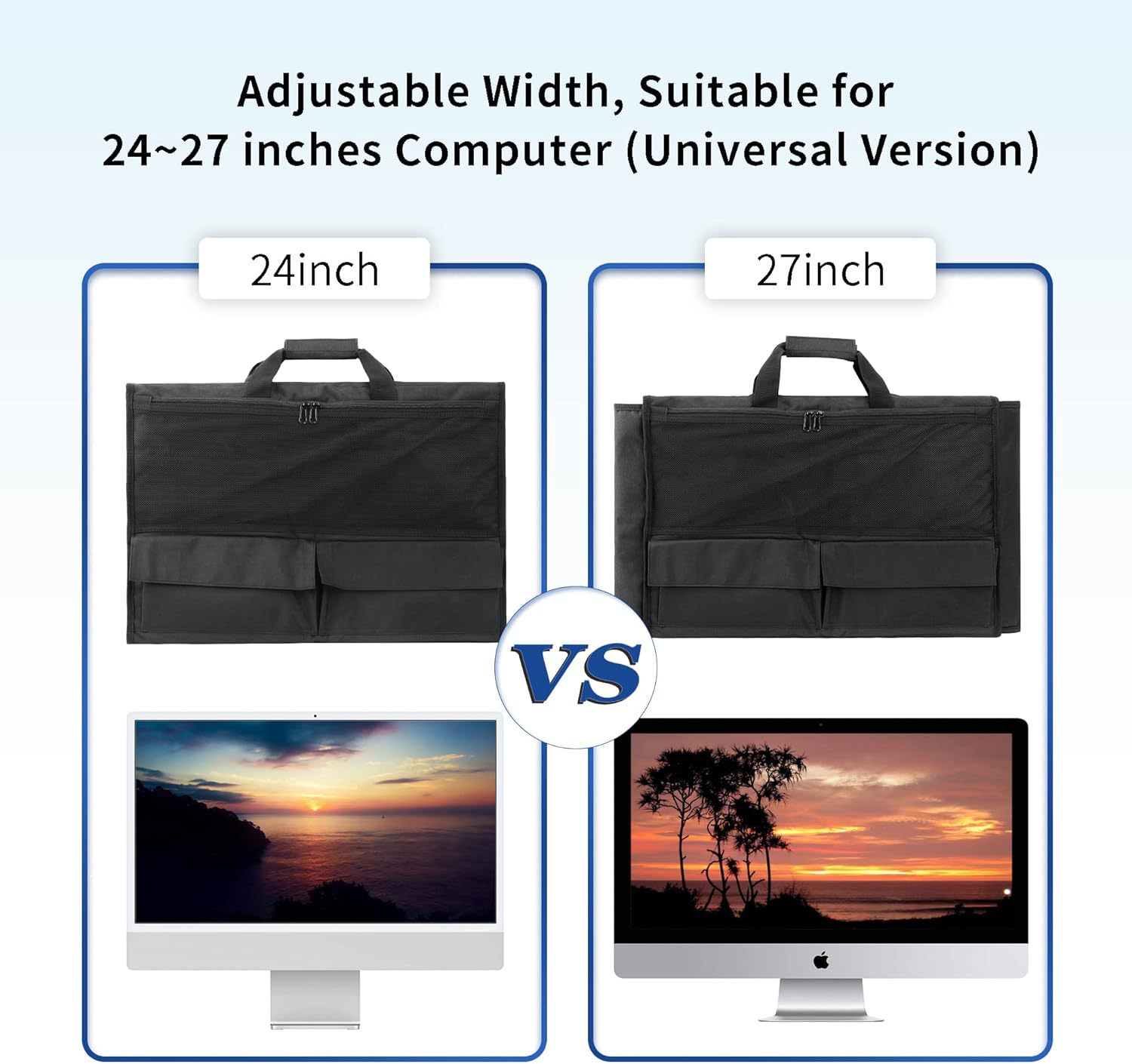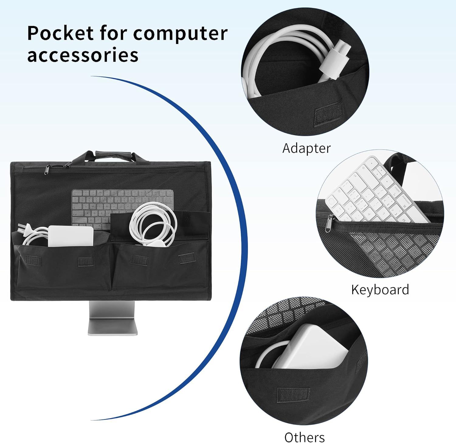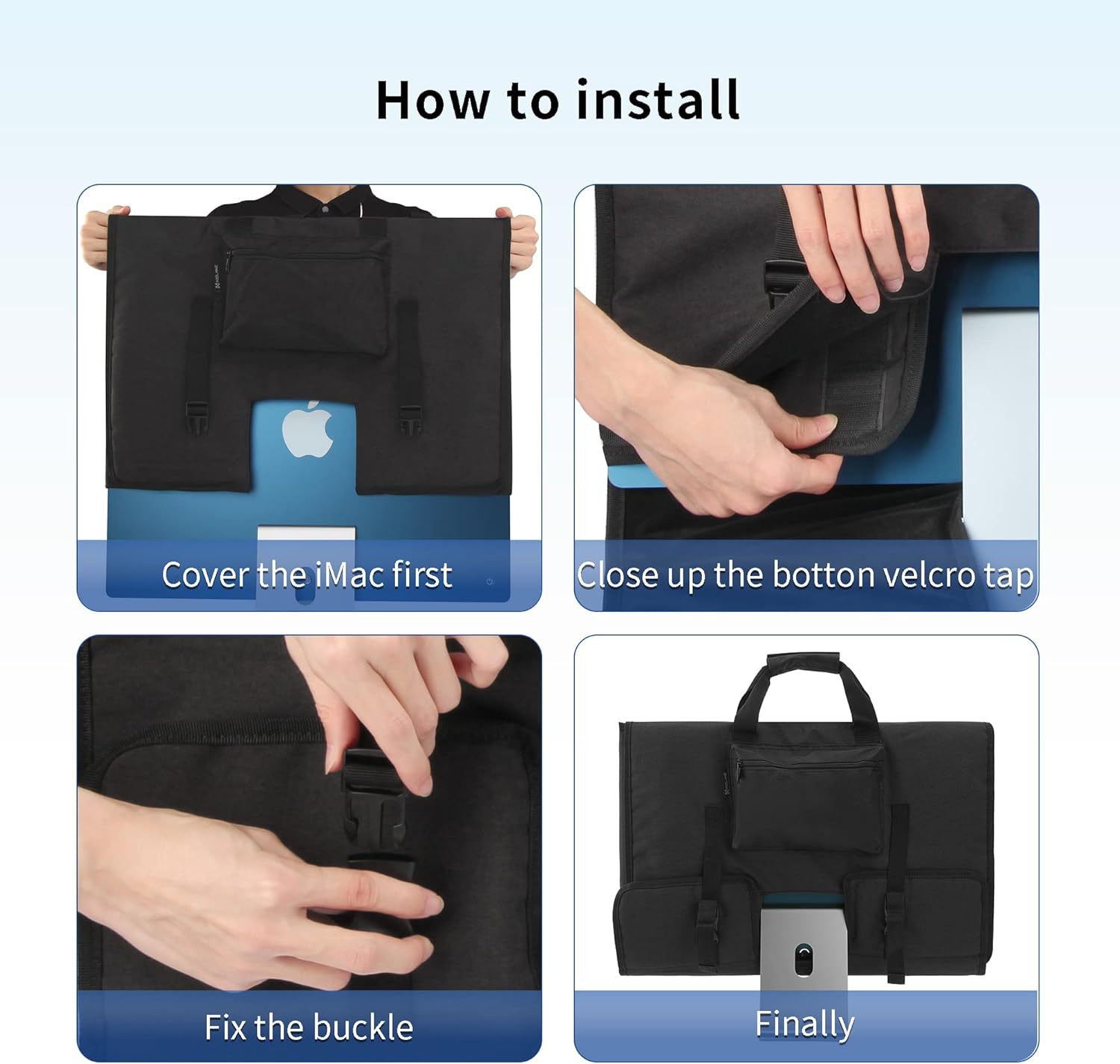 这款一体台式电脑包,采用优质防水尼龙材质制作,坚固耐用,内衬是柔软天鹅绒,完美防止撞击,让电脑远离灰尘、污垢和划痕。这款电脑包尺寸设计合理,适合24英寸的一体台式电脑。有多个口袋,可以存储电脑外设、键盘、鼠标、USB电源适配器、充电线等。电脑包的背面有多个插扣,使其更贴近电脑,更牢固。有一个坚固提手带,超级方便携带。是现场工作、摄影师、imac用户、设计师的完美礼物。