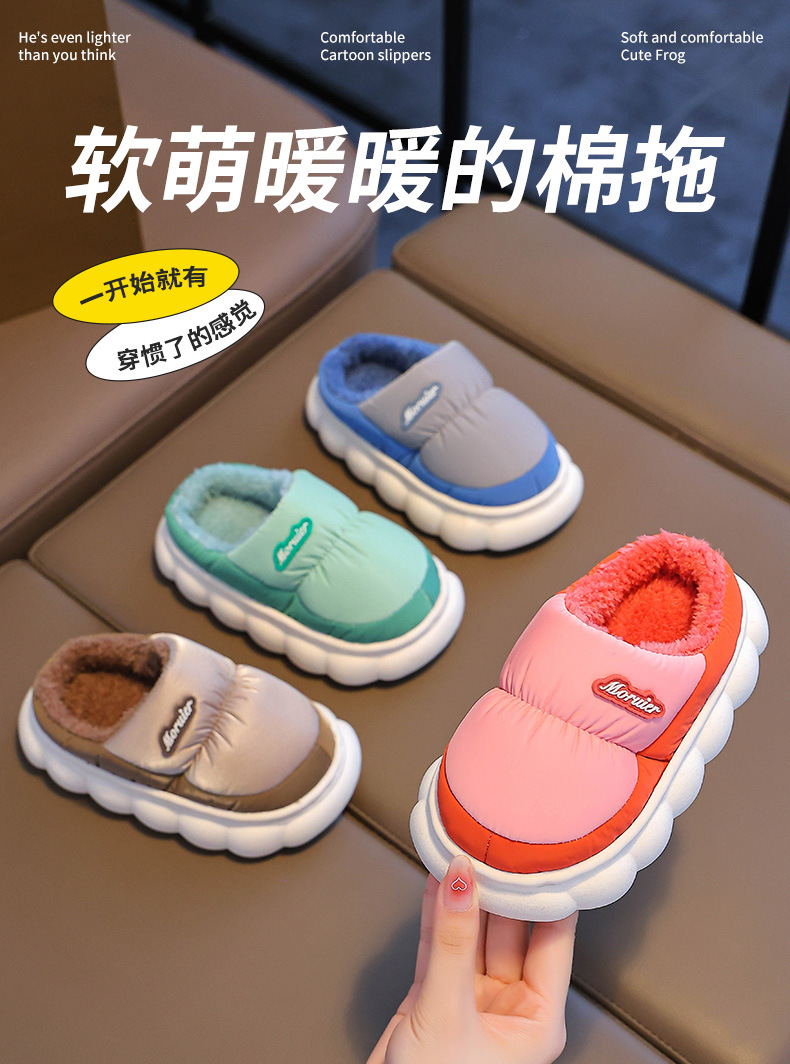 어린이 슬리퍼 소년과 소녀 겨울 실내 방수 천 홈 마오마오 가방 어린이 부모-어린이 아기 면화 슬리퍼