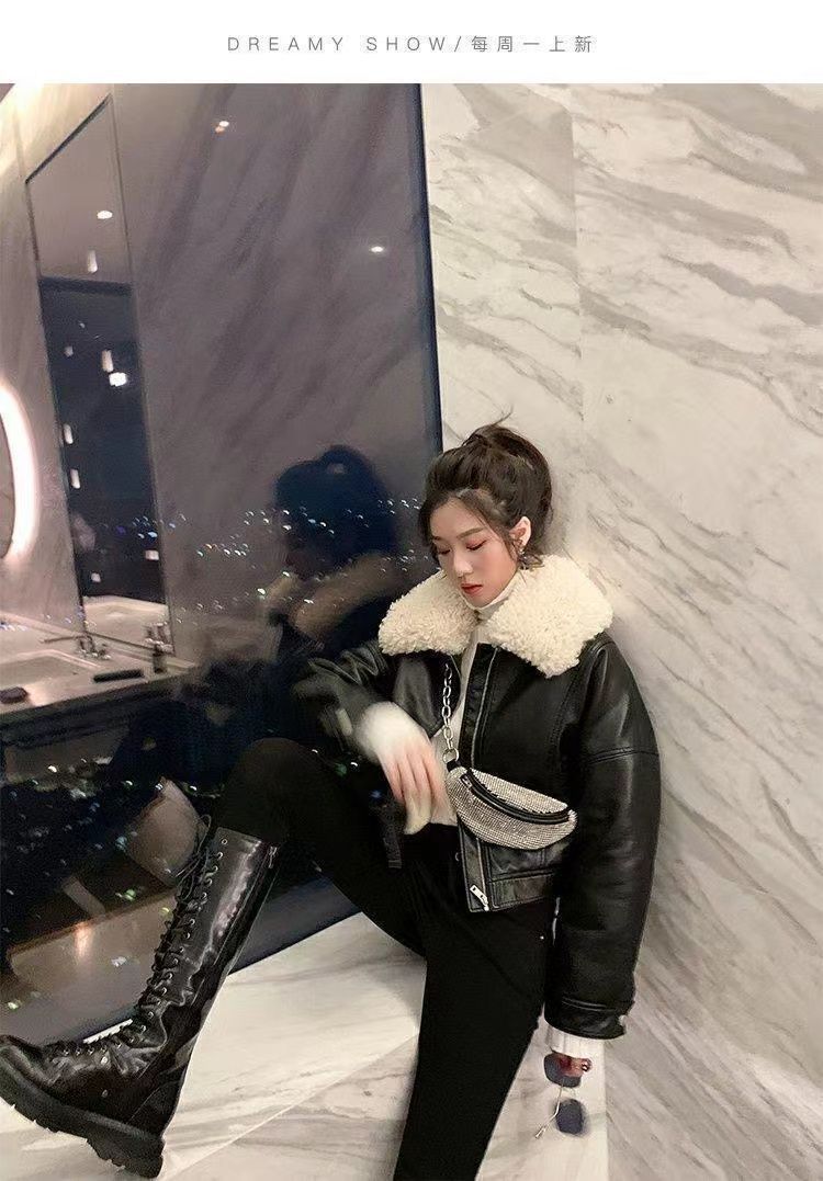 가죽 자켓 여성 2025 가을, 겨울 새로운 여성 의류 한국 스타일 오토바이 가죽 자켓 탑 짧은 하이 웨이스트 자켓 두꺼운 여성스토어 가기