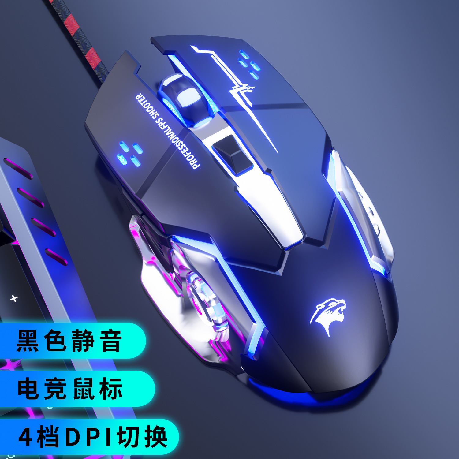 Fugui f5 철 바닥 꼰 와이어 유선 마우스 사무실 게임 마우스 데스크탑 노트북스토어 가기