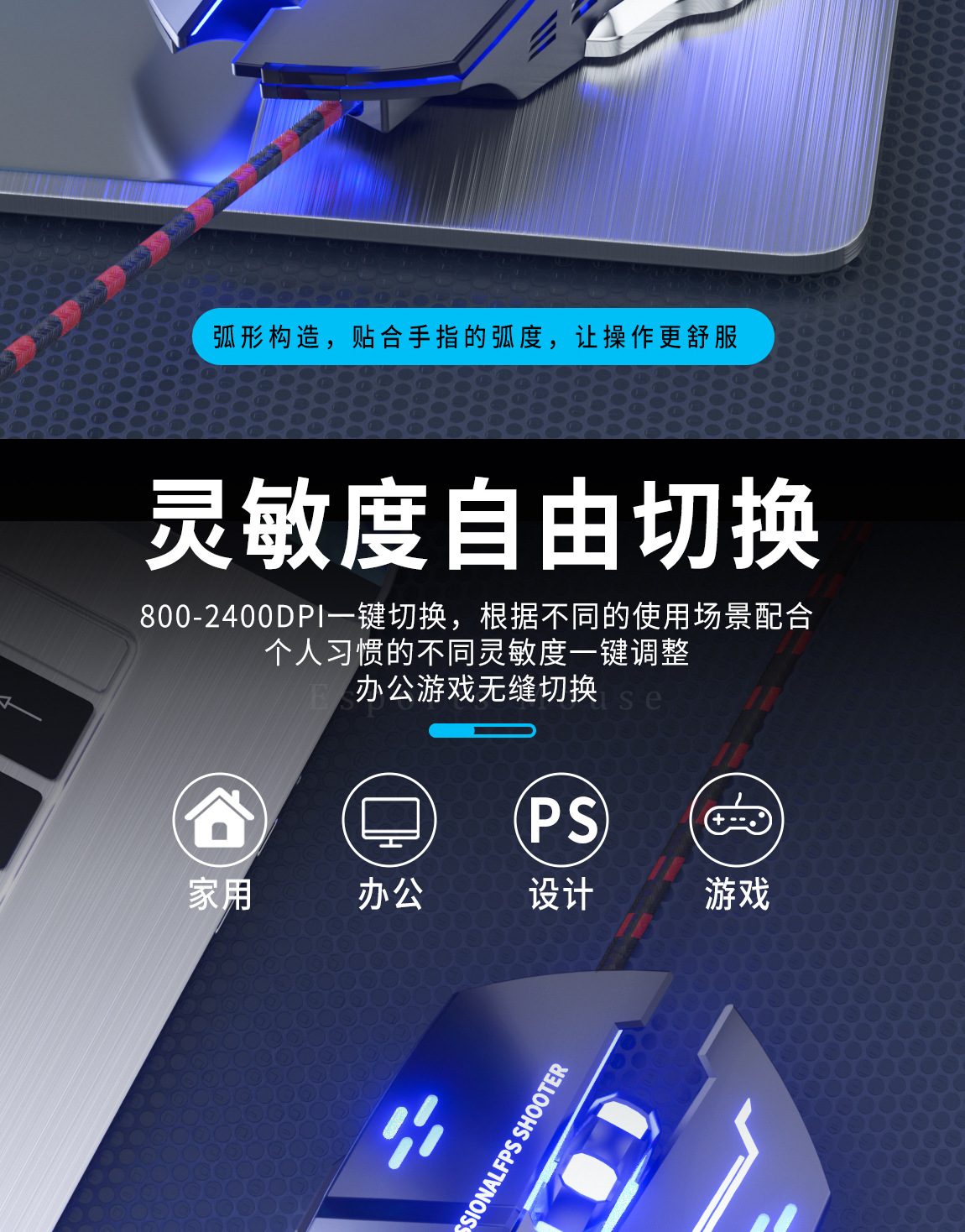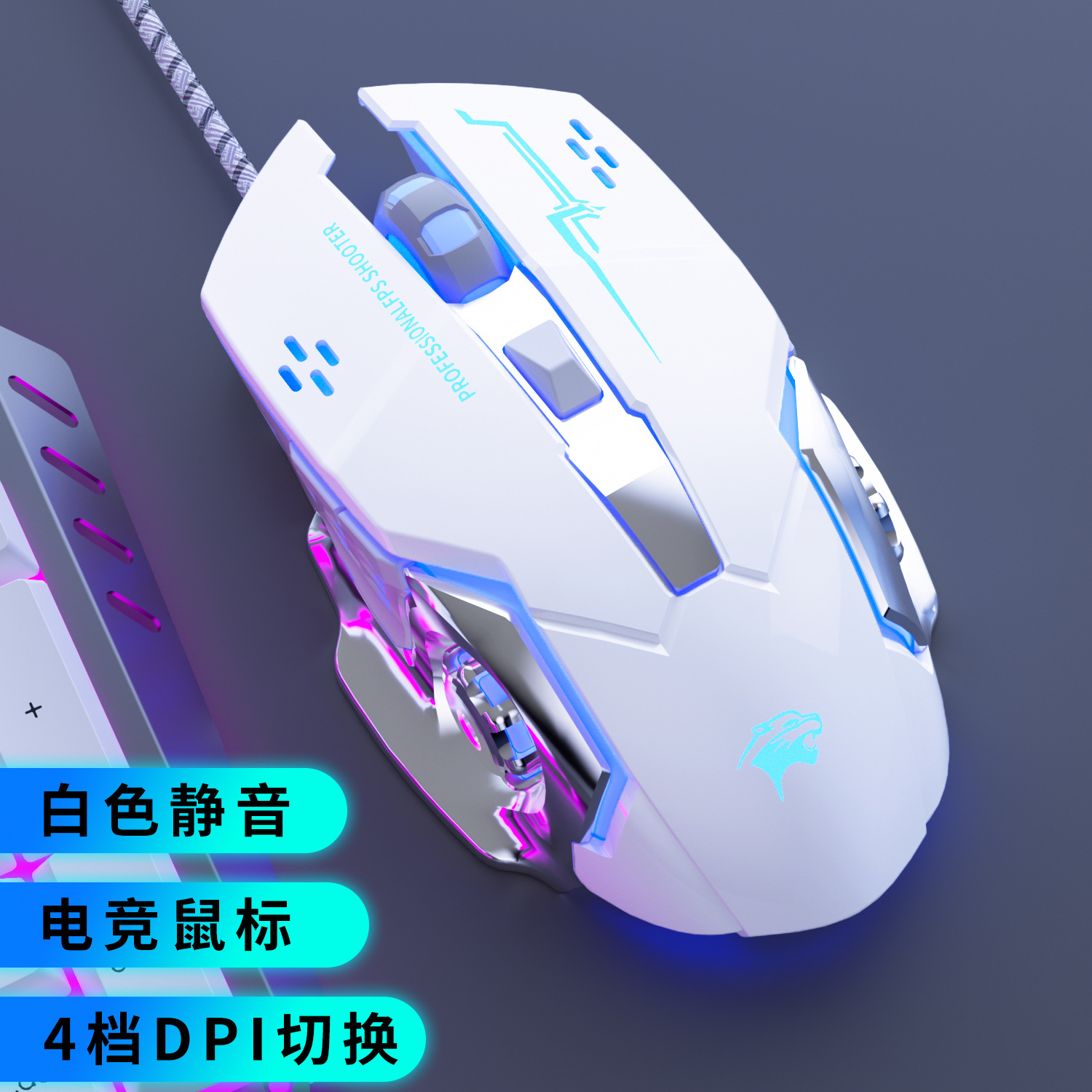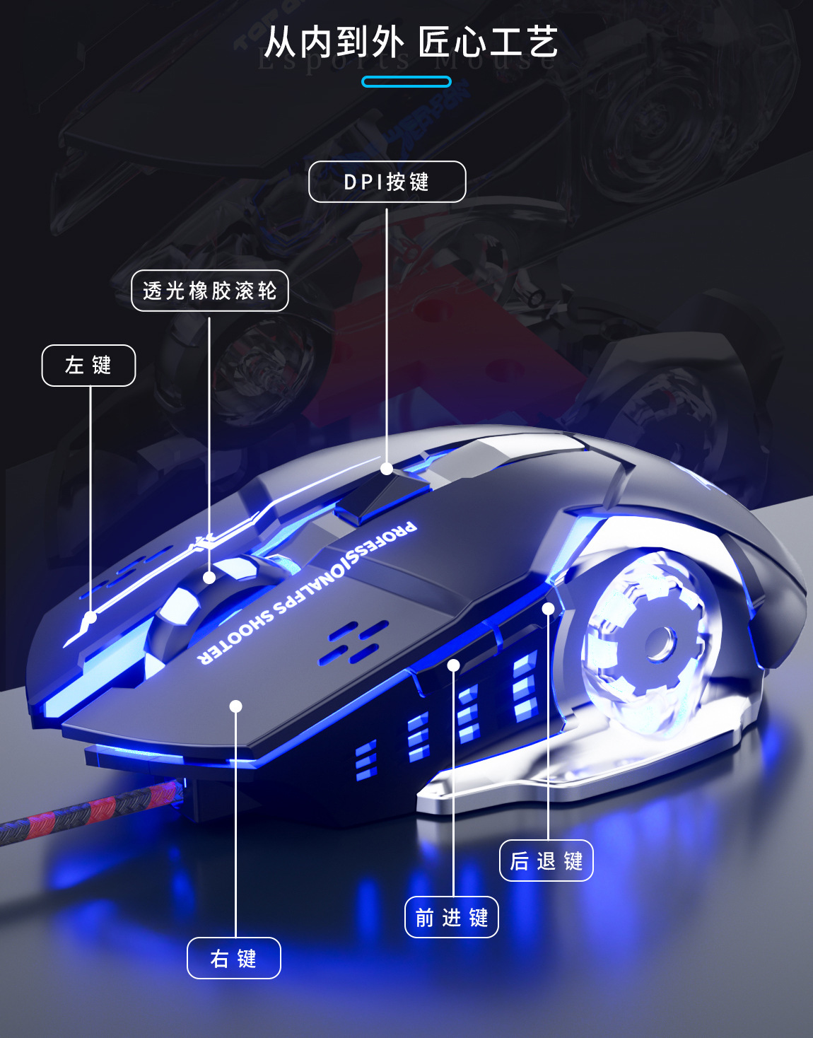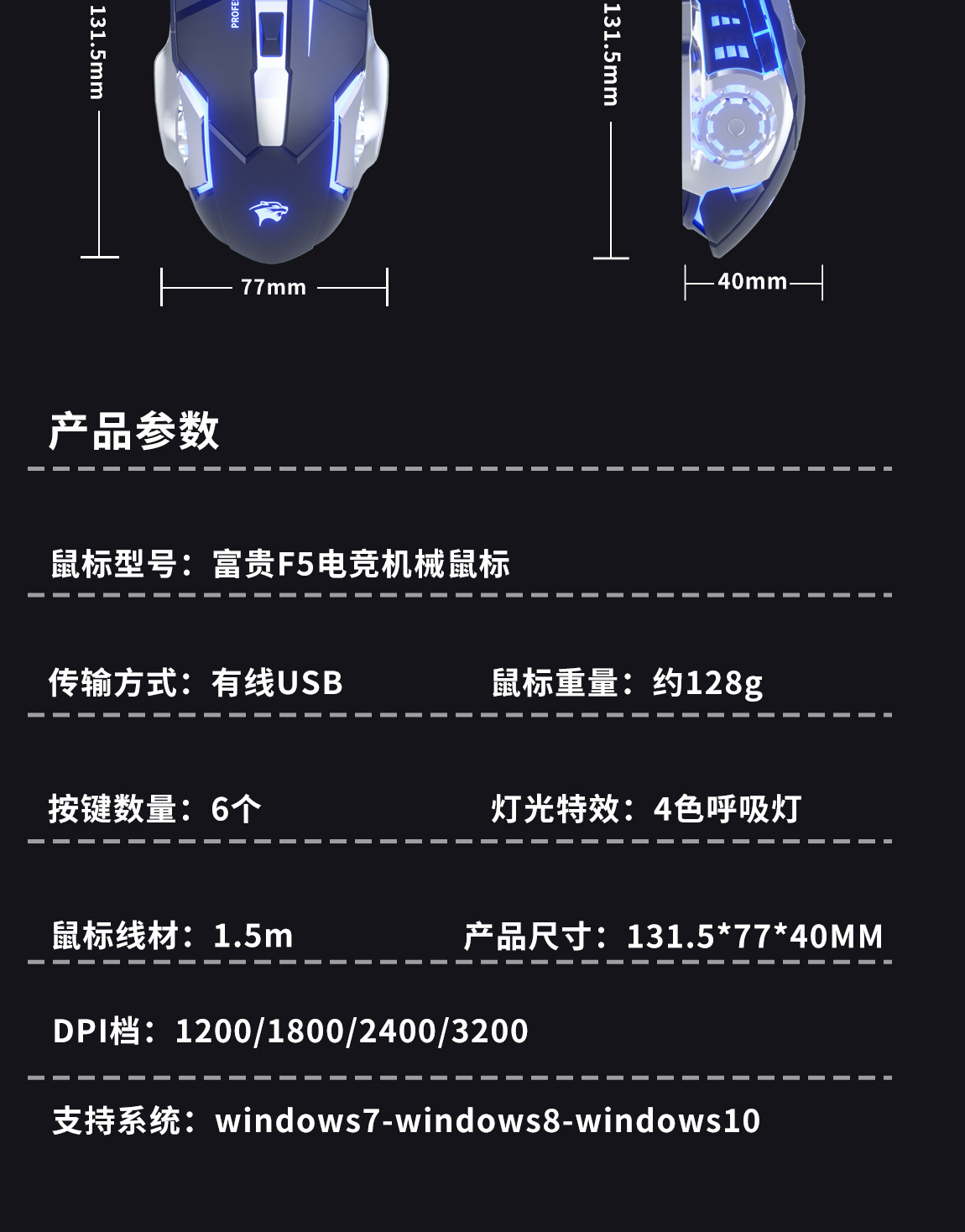 Fugui f5 철 바닥 꼰 와이어 유선 마우스 사무실 게임 마우스 데스크탑 노트북