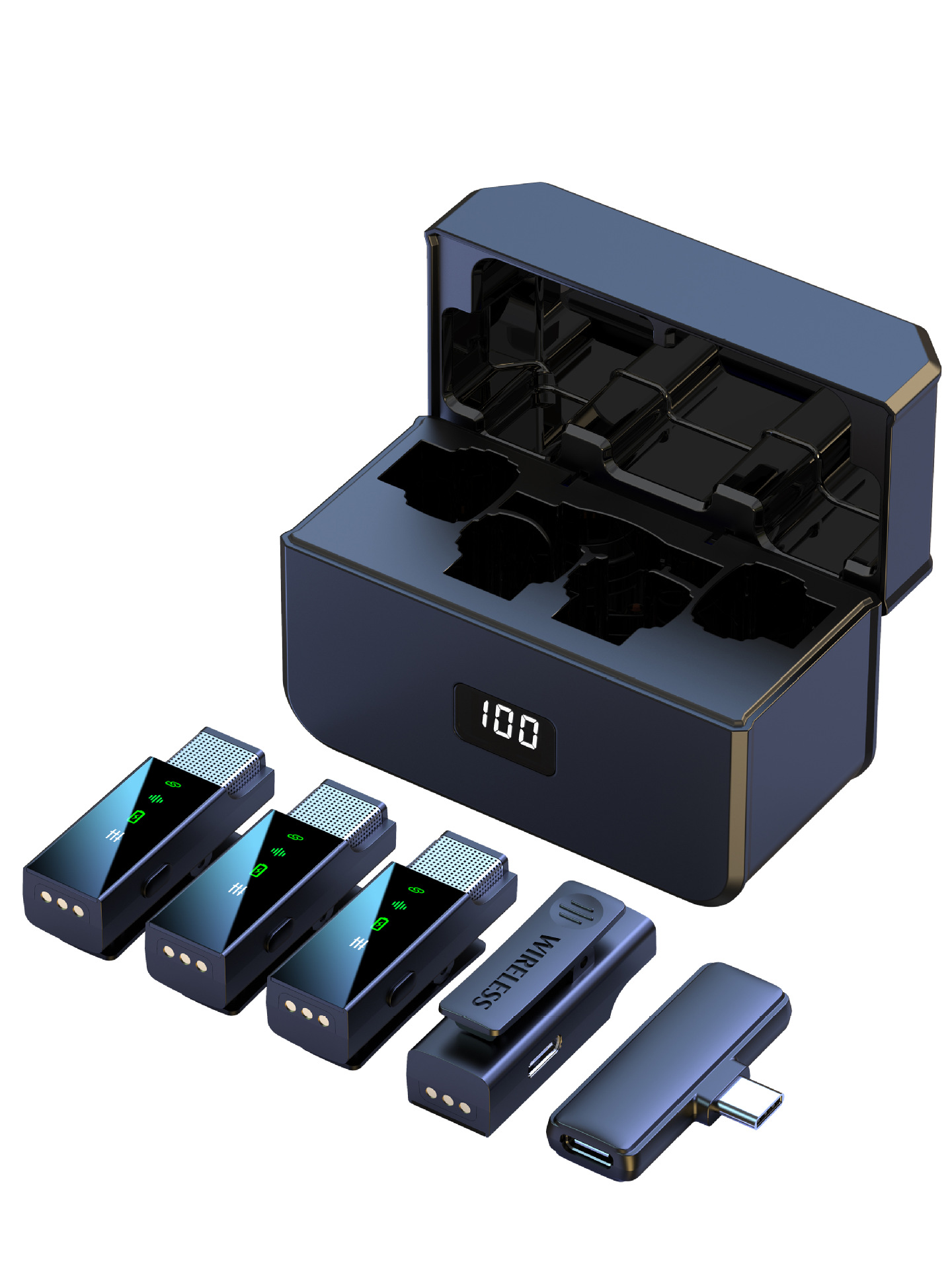 Shi Suo Yituo 4 무선 레이저 클립 마이크 휴대 전화 라이브 컨퍼런스 인터뷰 소음 감소 디지털 디스플레이 충전 창고가있는 마이크