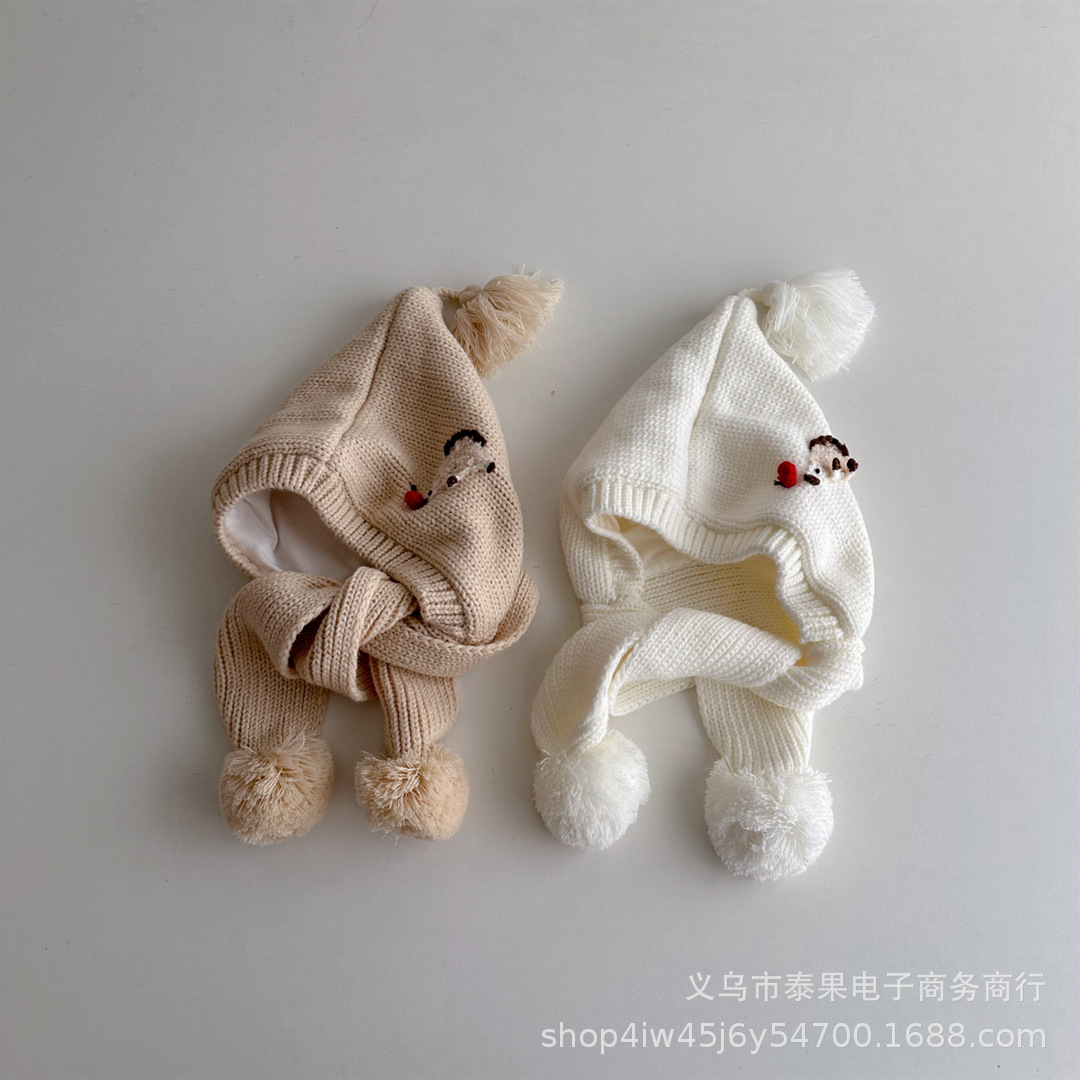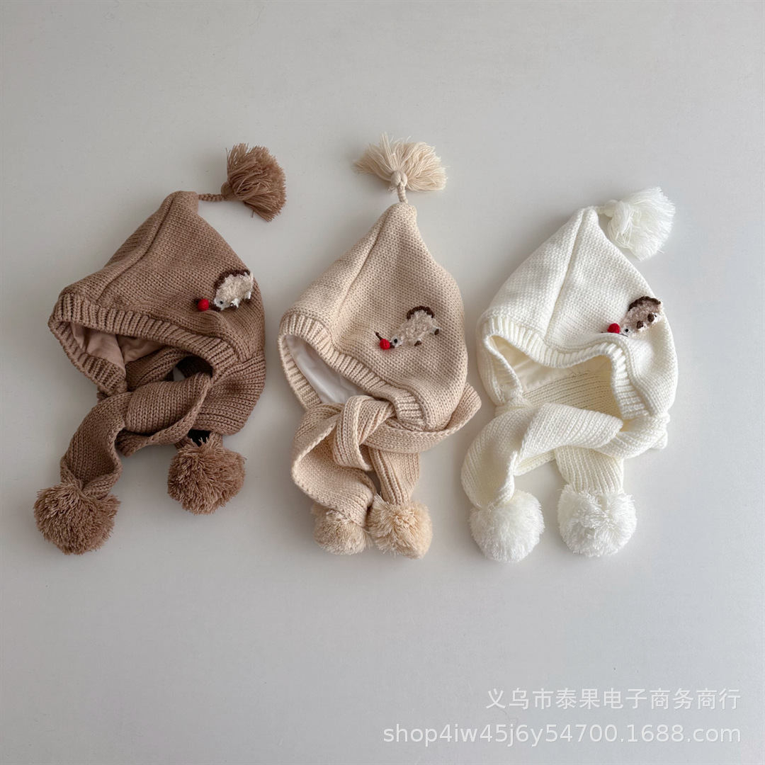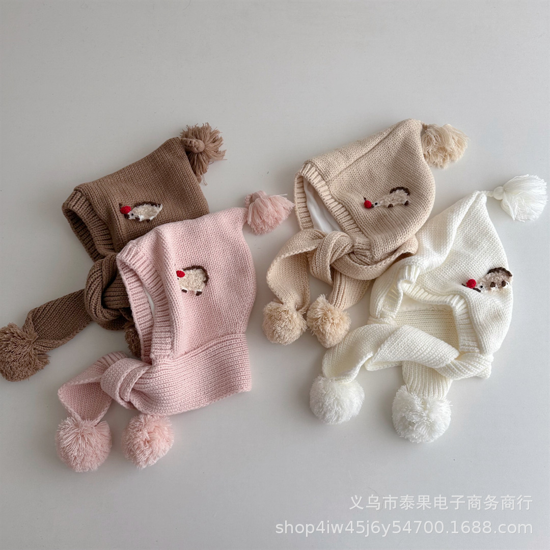 겨울 아이들의 새로운 두꺼운 따뜻한 스카프 모자 올인원 모자 아기 만화 고슴도치 자수 헤어 볼 니트 모자스토어 가기