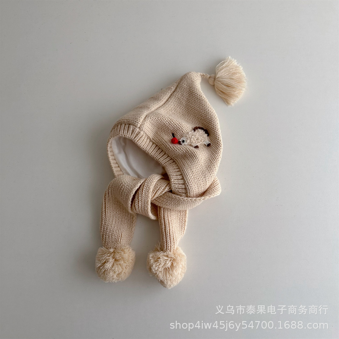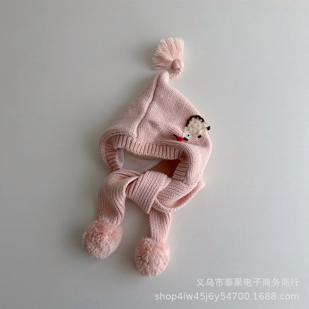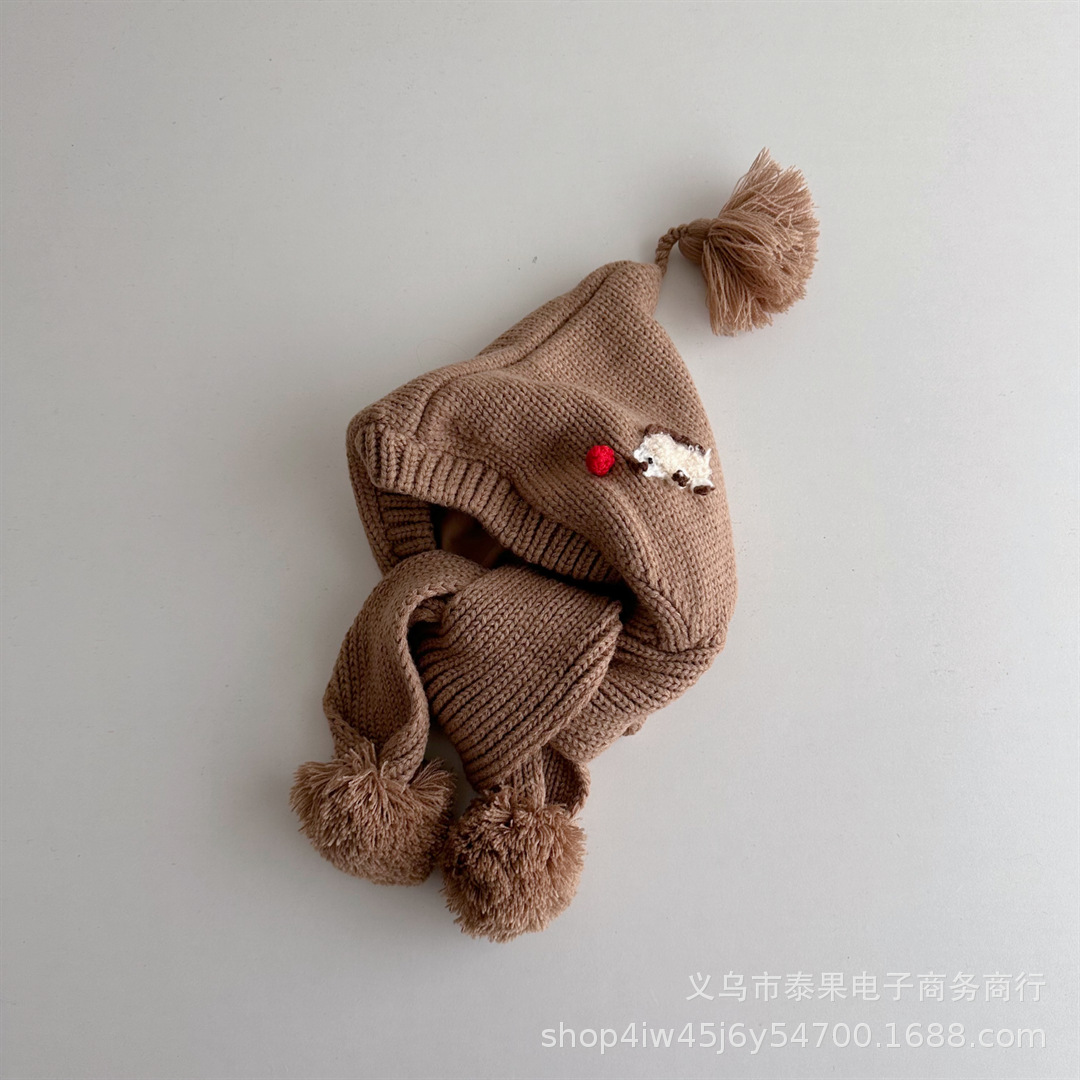 겨울 아이들의 새로운 두꺼운 따뜻한 스카프 모자 올인원 모자 아기 만화 고슴도치 자수 헤어 볼 니트 모자스토어 가기