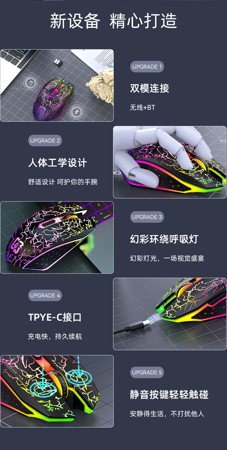 Senrani Wrangler 무선 듀얼 모드 마우스 Typec 충전식 다채로운 빛나는 게임 스포츠 마우스 도매스토어 가기