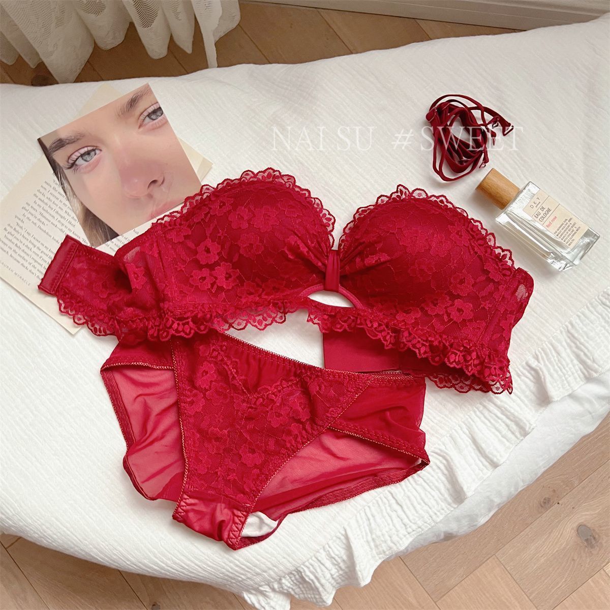신부 결혼식 해 빨간 속옷 여성 세트 섹시한 레이스 작은 가슴 푸시 업 스틸 링 어퍼 토븐 브라스토어 가기