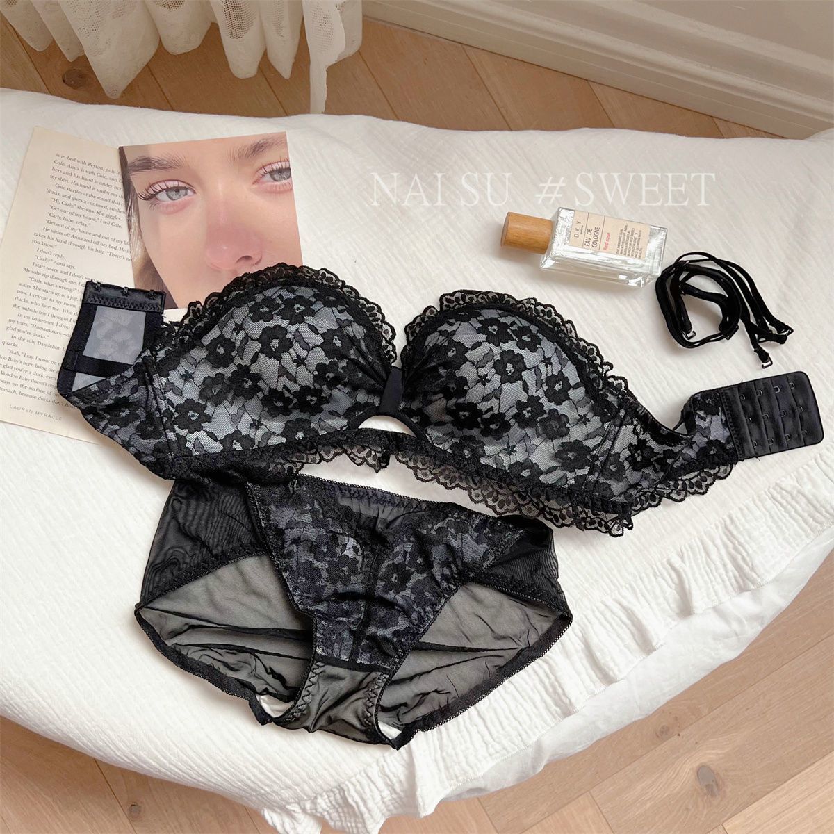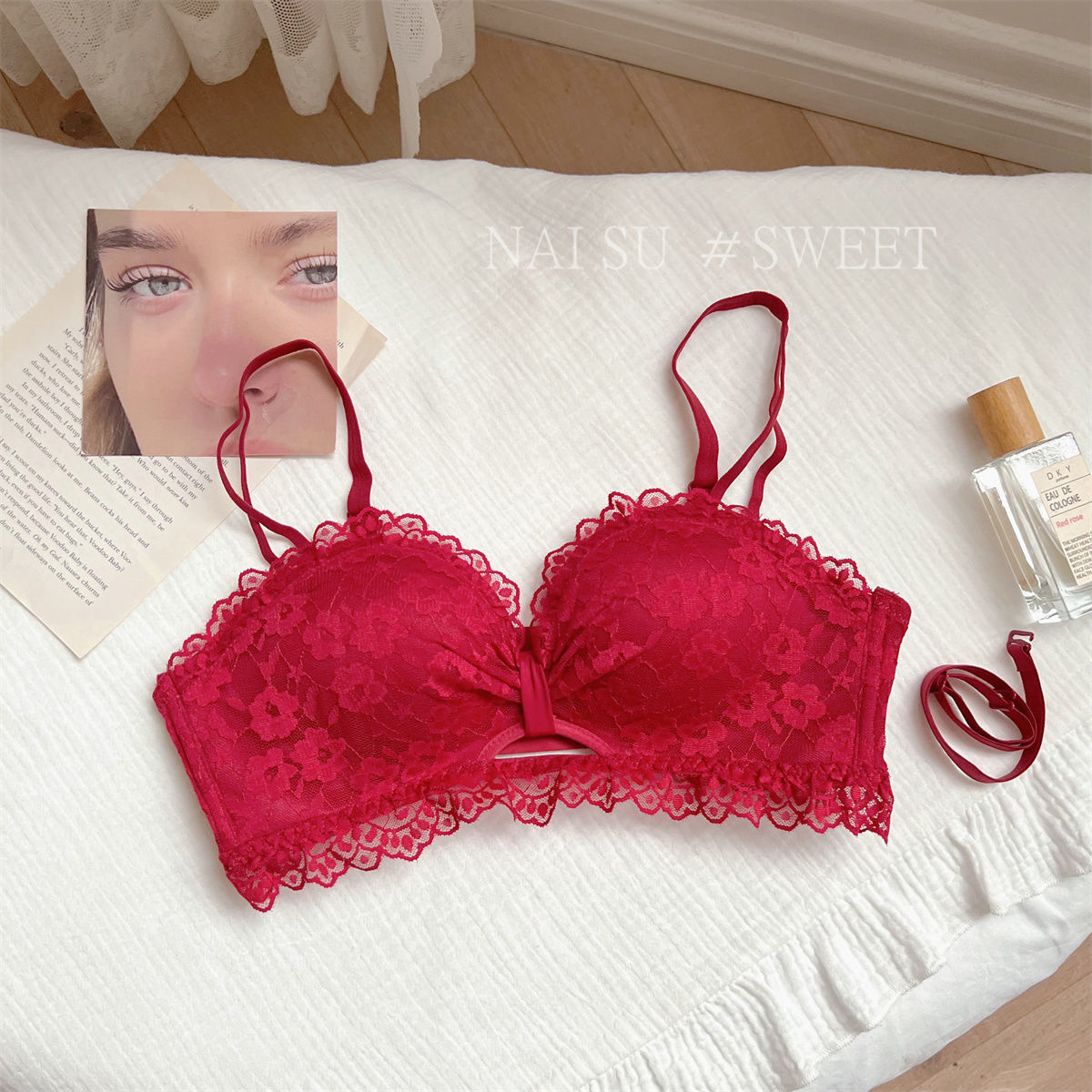 신부 결혼식 해 빨간 속옷 여성 세트 섹시한 레이스 작은 가슴 푸시 업 스틸 링 어퍼 토븐 브라