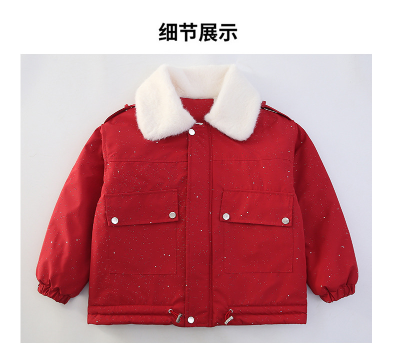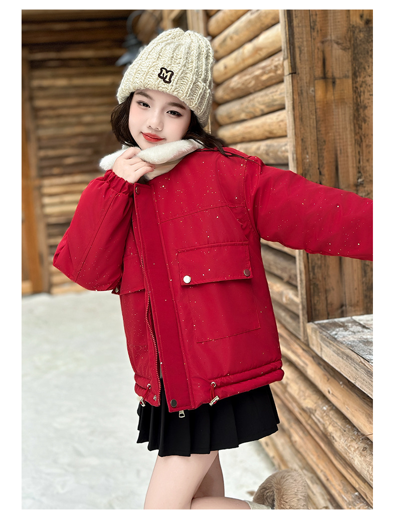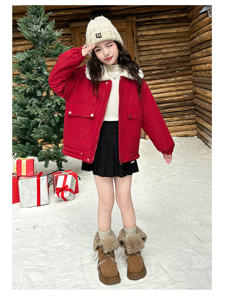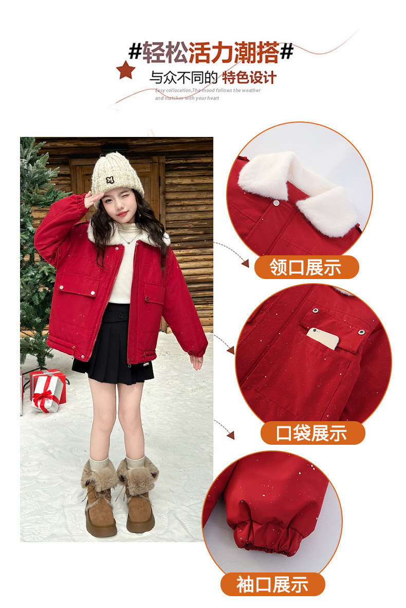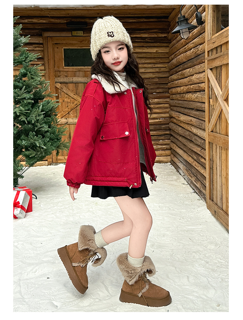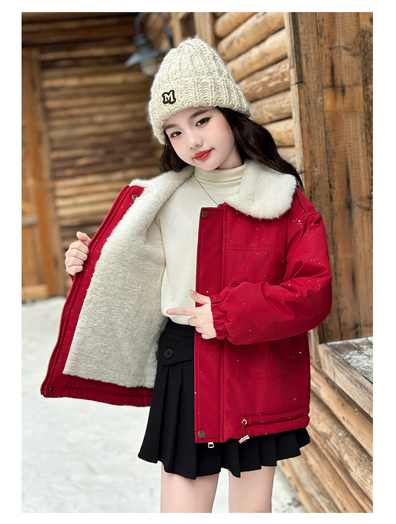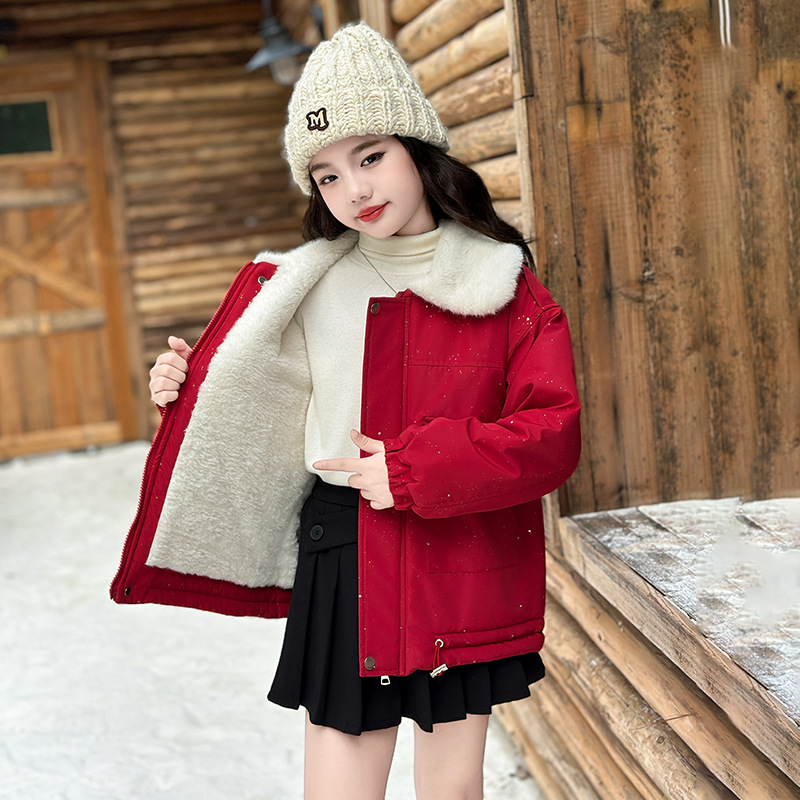 벨벳과 두꺼운 소재로 제작된 여아 겨울 코트 2025 새로운 스타일의 아동용 면 코트로 안코라 레드 면 코트를 대체합니다.스토어 가기