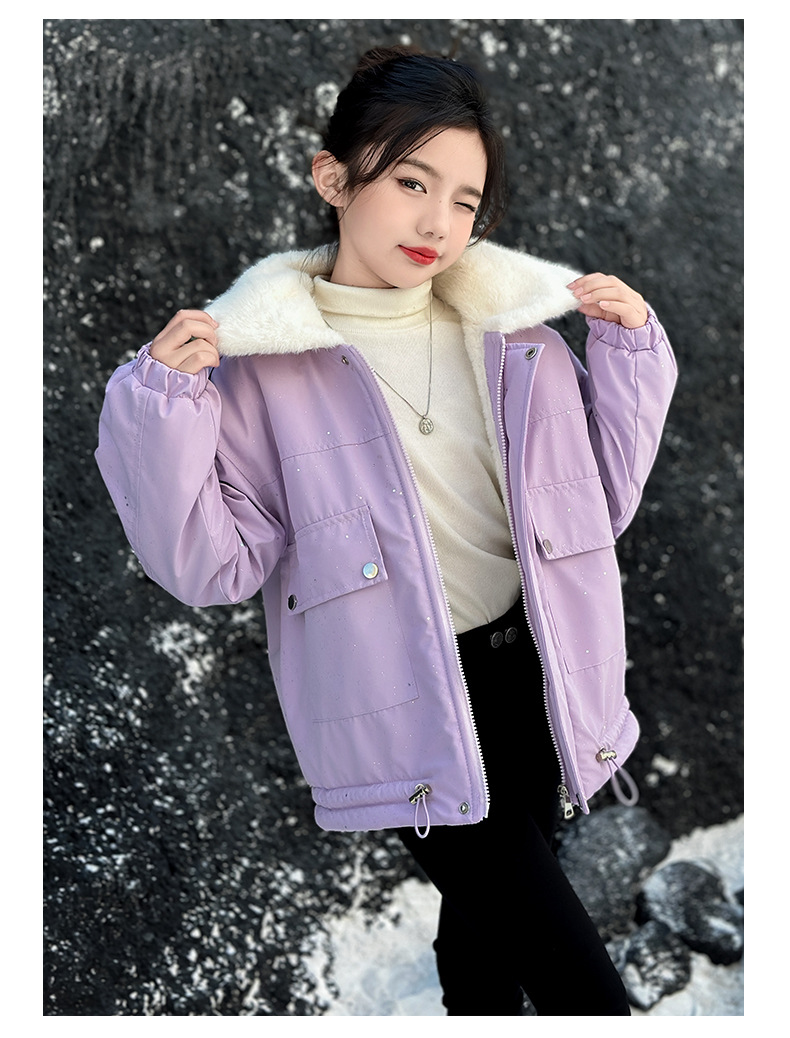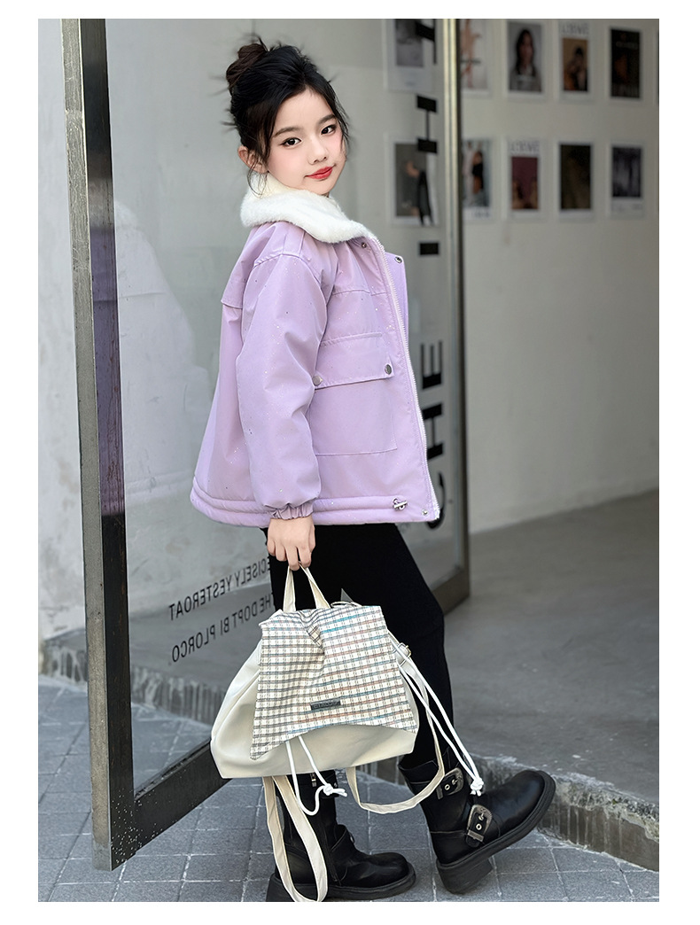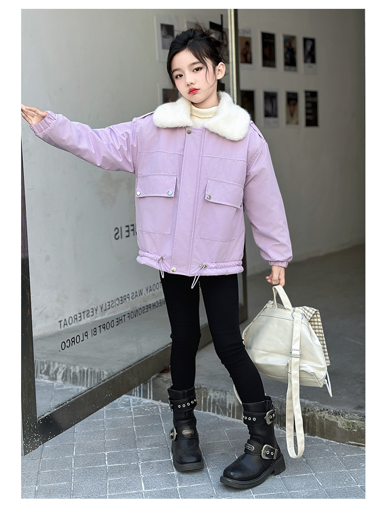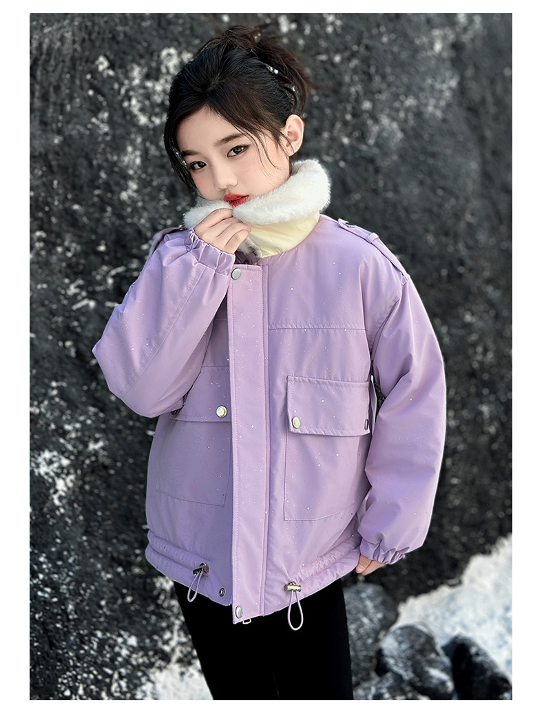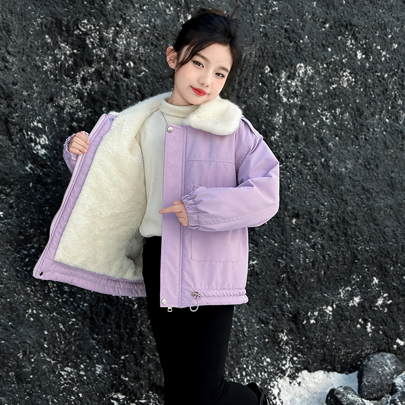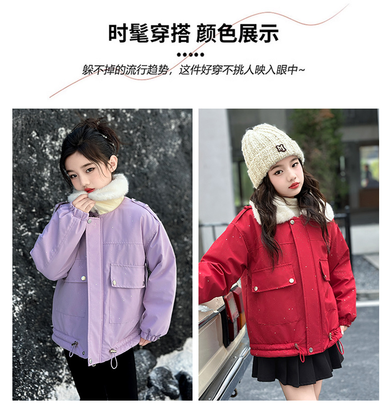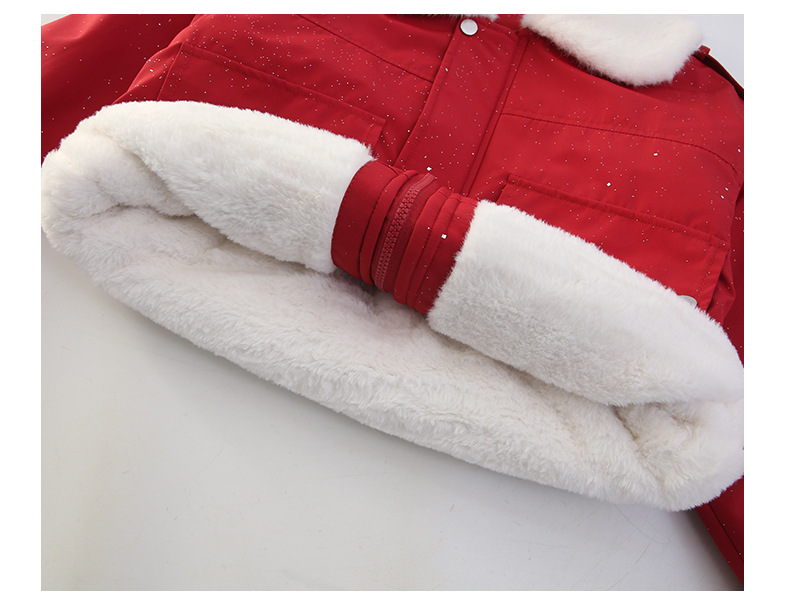 벨벳과 두꺼운 소재로 제작된 여아 겨울 코트 2025 새로운 스타일의 아동용 면 코트로 안코라 레드 면 코트를 대체합니다.스토어 가기