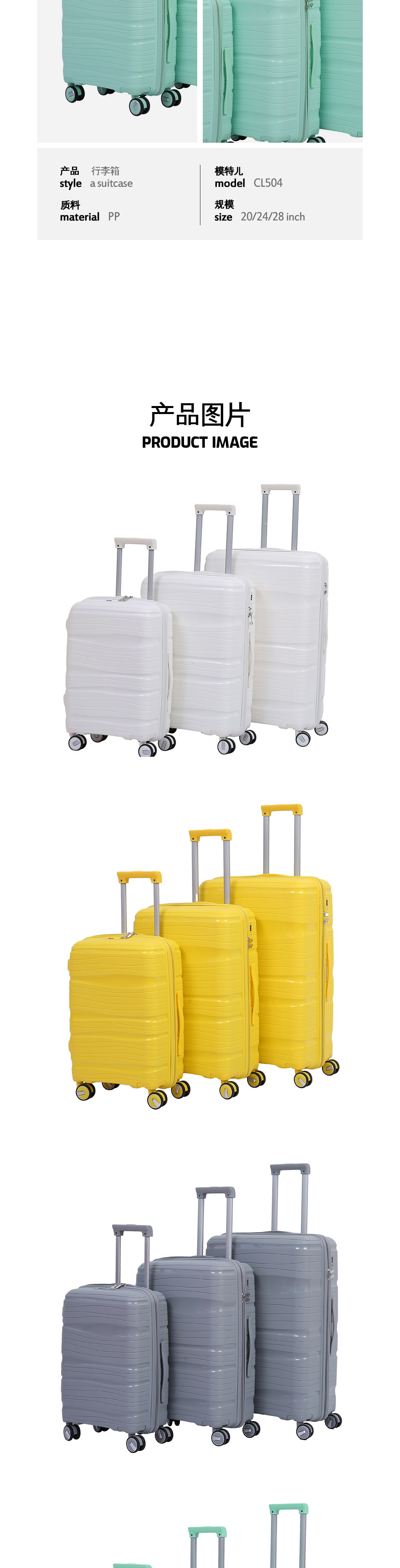 대외 무역 3종 세트 트롤리 캐리어, 해외 직구 낙하 방지 여행 가방, PP 휴대용 기내용 캐리어, 비밀번호 여행 가방, 휴대용스토어 가기