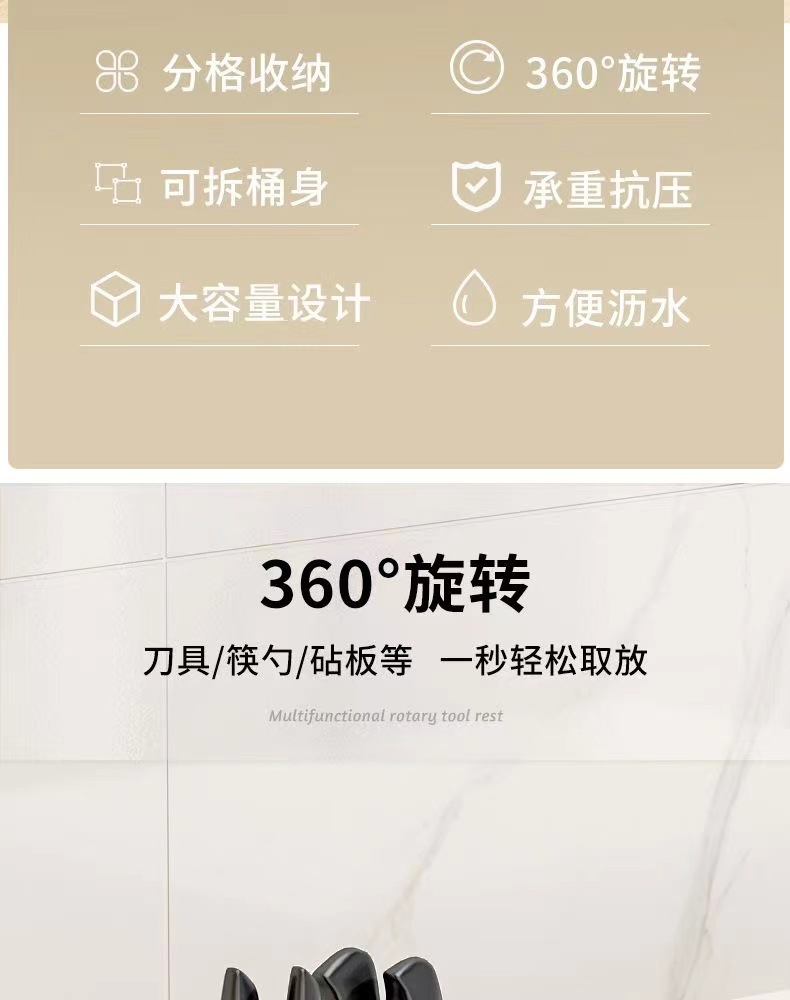 새로운 360 도 부엌 회전 칼 홀더 젓가락 홀더 랙 조리대 멀티 기능 통합 저장 상자 케이지 홈