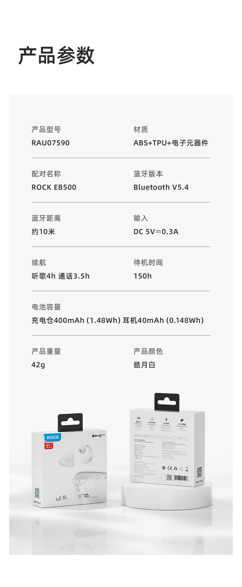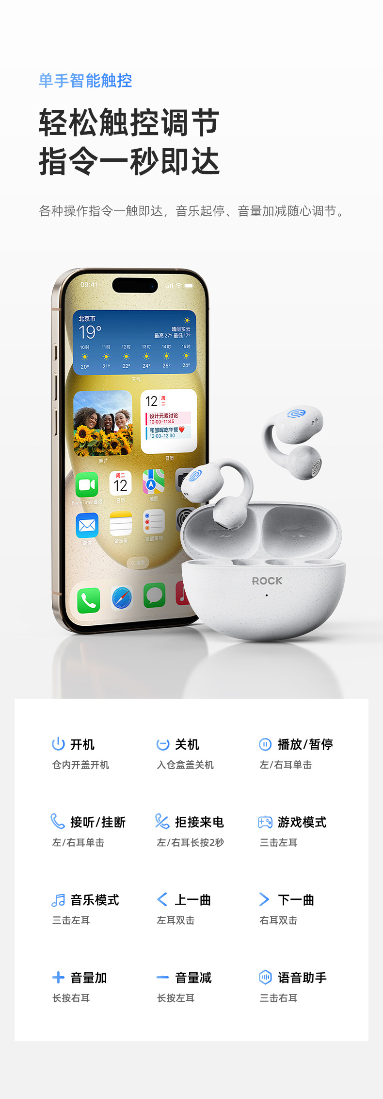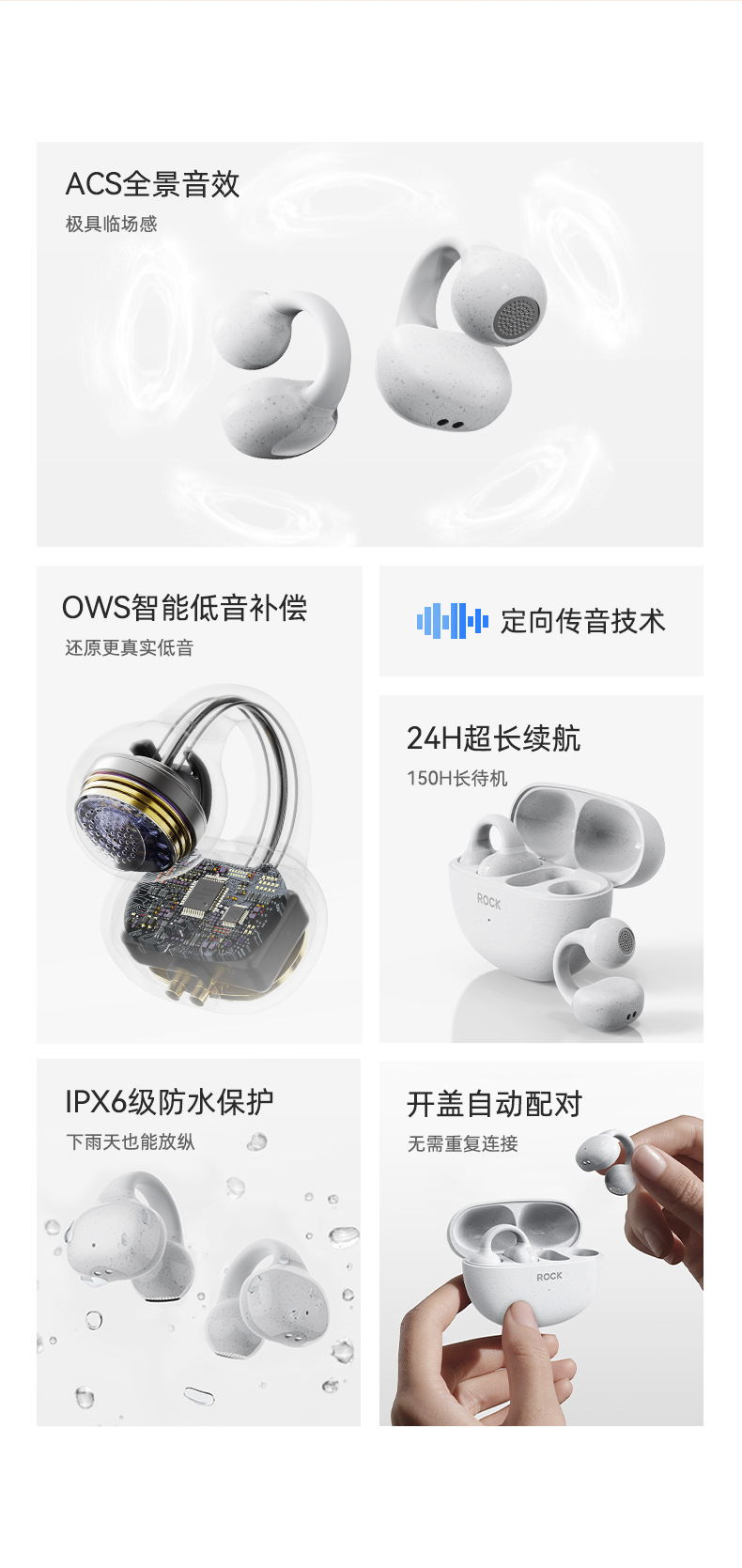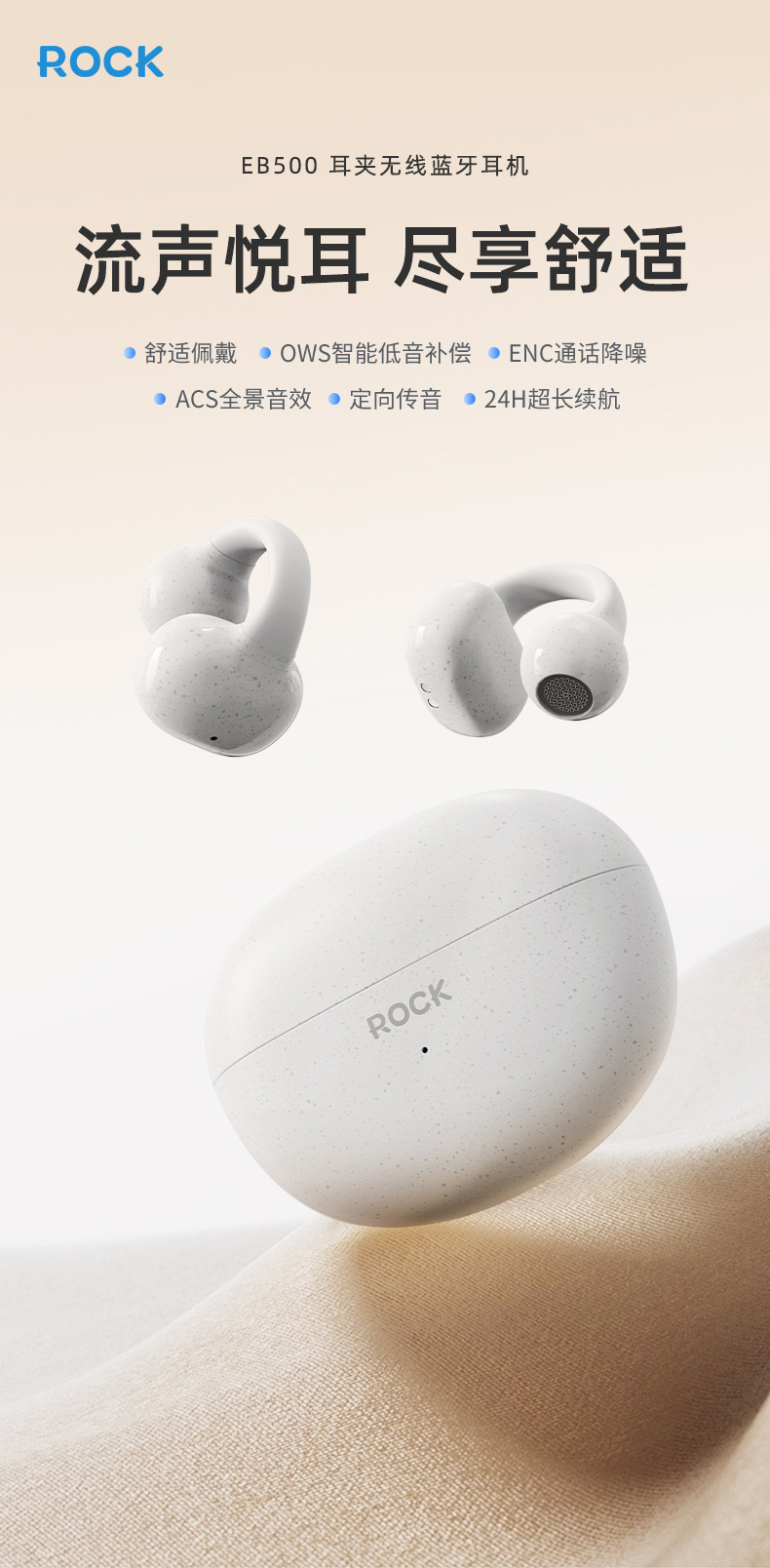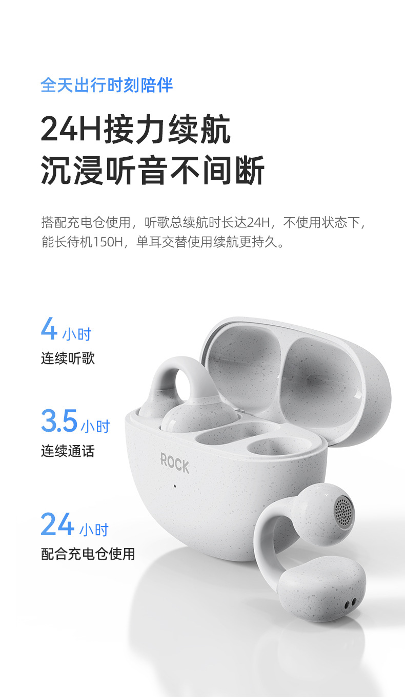 ROCK/ROCK 블루투스 5.4 귀 클립 귀 유형이 아닌 귀 EB500 스포츠 귀 클립 무선 블루투스 헤드셋