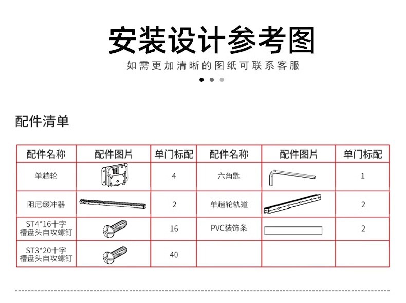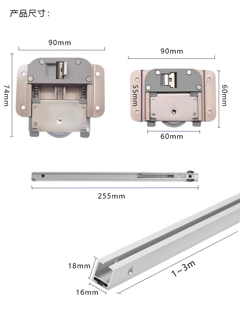 • 2m 트랙*2pcs+1 도어 슬라이드 액세서리