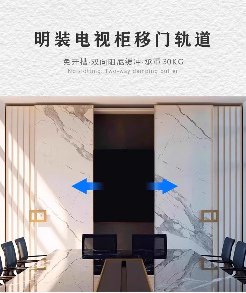 옷장 TV 캐비닛 슬라이딩 도어 슬라이드 레일 무타공 외부 장착 도어 디스플레이 캐비닛 슬라이드 휠 트랙 푸시풀 하드웨어 부품스토어 가기
