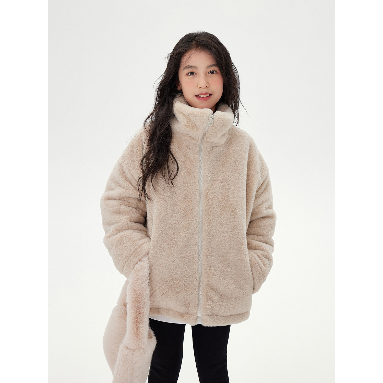 여자 스탠딩 칼라 모조 토끼 모피 봉제 코트 2024 겨울 새로운 큰 어린이 시즌 기모 두꺼운 외투스토어 가기